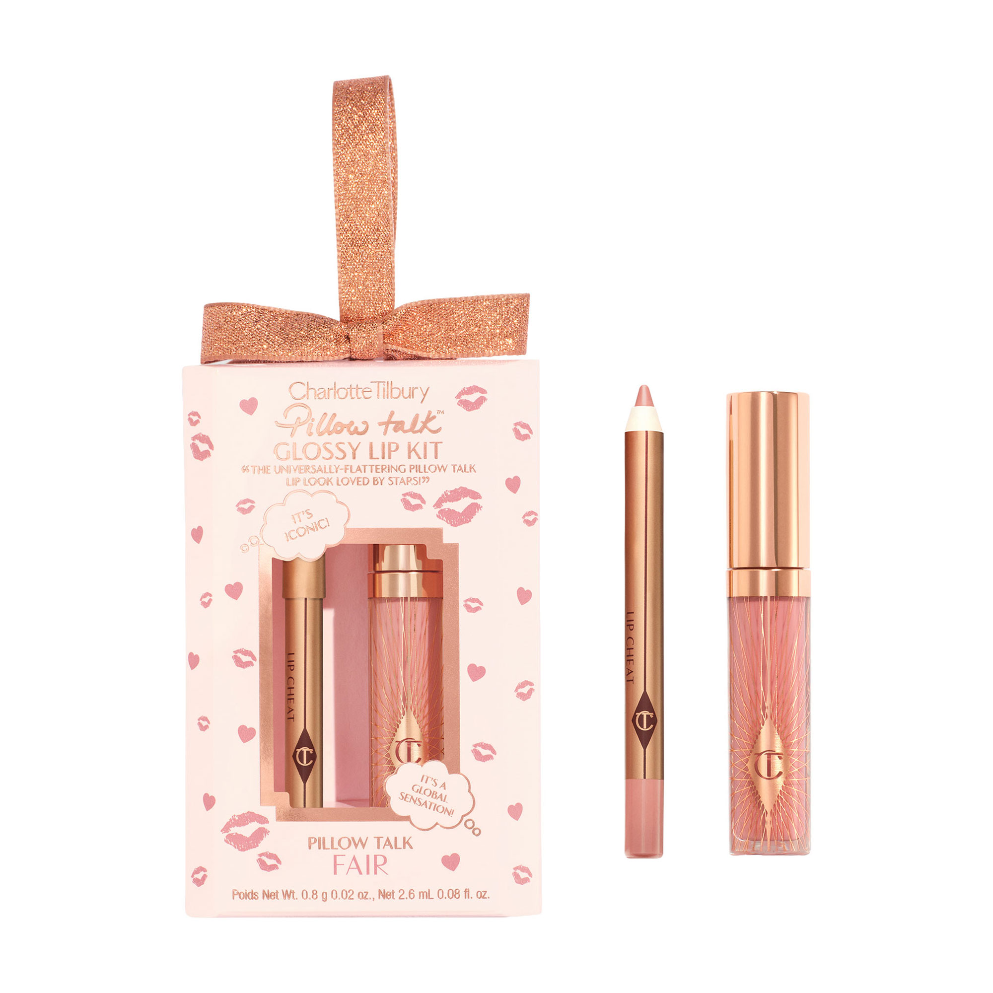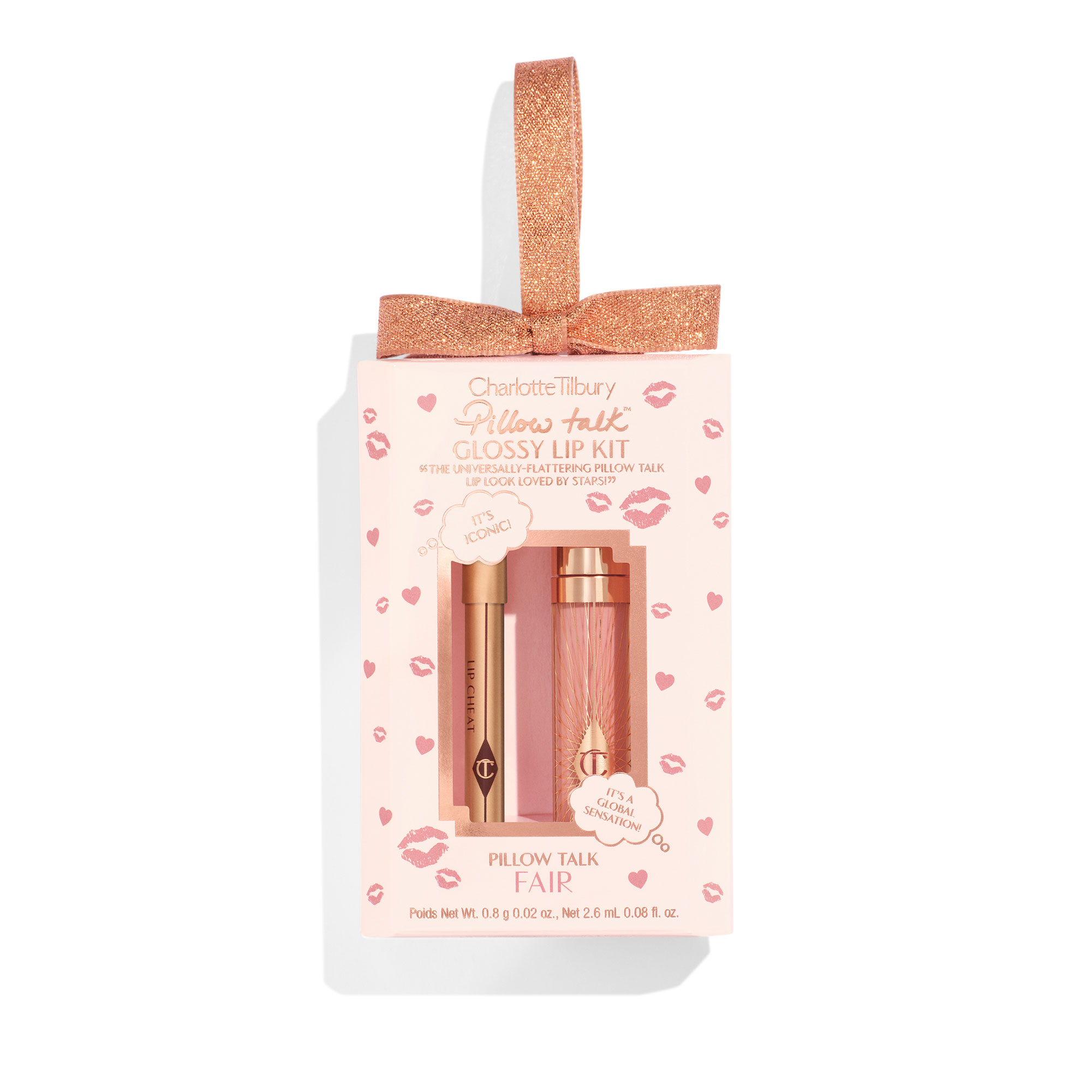 Description: Achieve the perfect pillowy nude-pink pout with Charlotte’s iconic Lip Cheat and skincare-infused Collagen Lip Bath. A beautiful duo that hydrates, shapes, and delivers mirror-like shine — all wrapped in a festive ribbon-loop bauble, the perfect gift to hang on every tree.