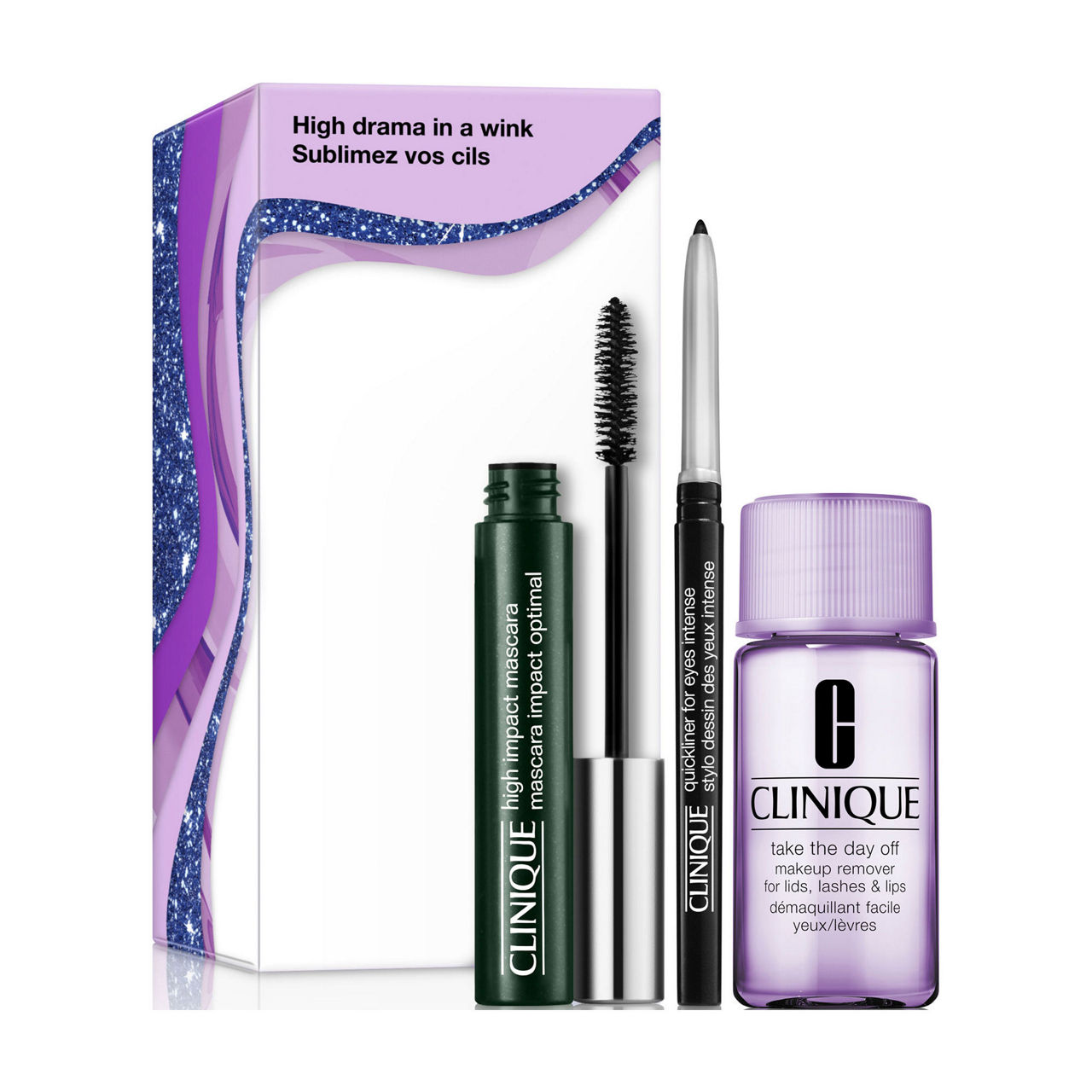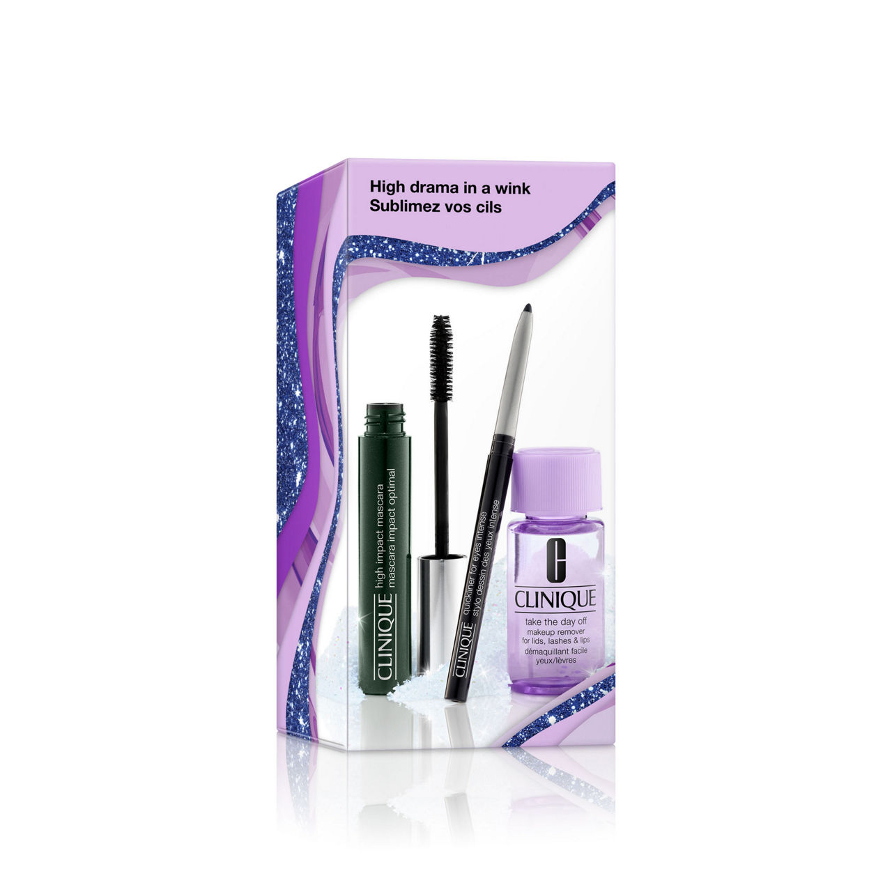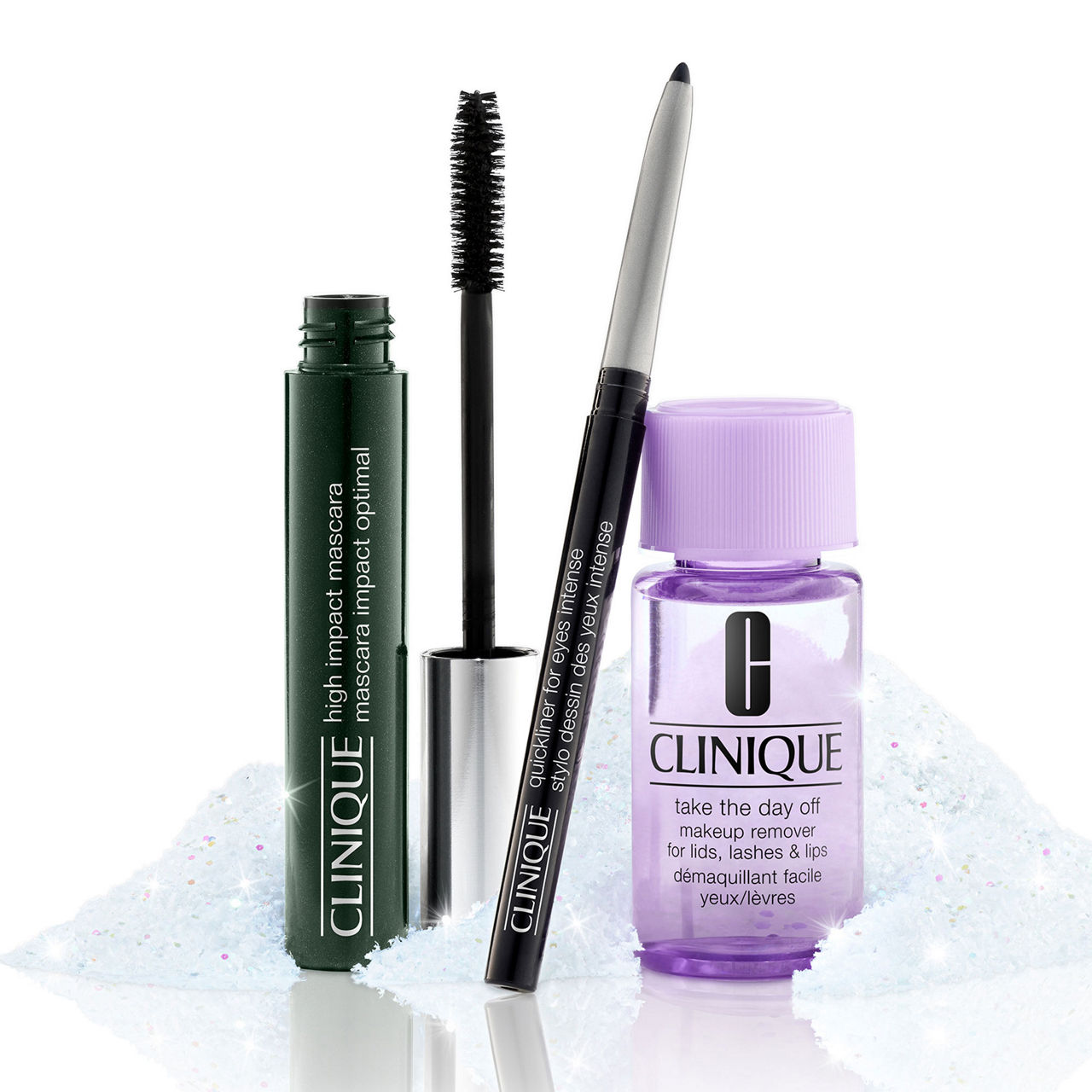 - Set Includes Full-size High Impact™ Mascara in Black, 7ml (RRP €29.50) Quickliner For Eyes™ Intense eyeliner in Intense Black, 0.14g Take The Day Off™ Makeup Remover For Lids, Lashes & Lips, 30ml