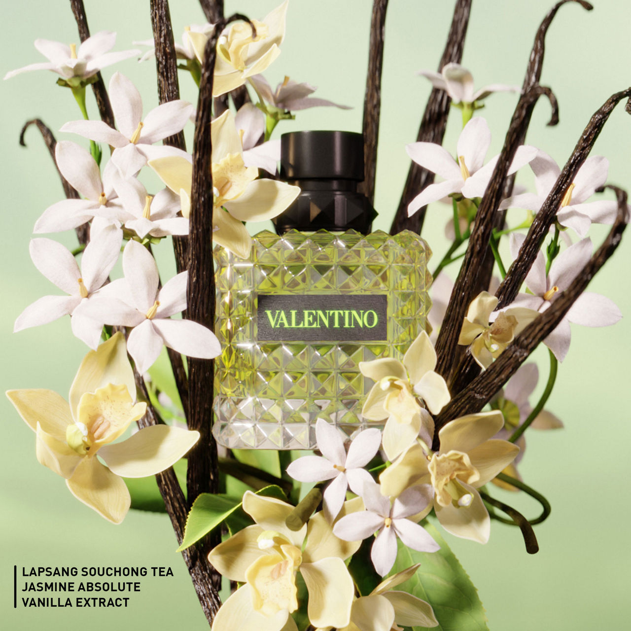 - Base Notes: Sweet yet smoky drops of vanilla extract add a bewitching touch to this sensual journey, pushing the extravagance to extremes. The vanilla extract is sustainably sourced and crafted for the brand according to Valentino Beauty engagement.