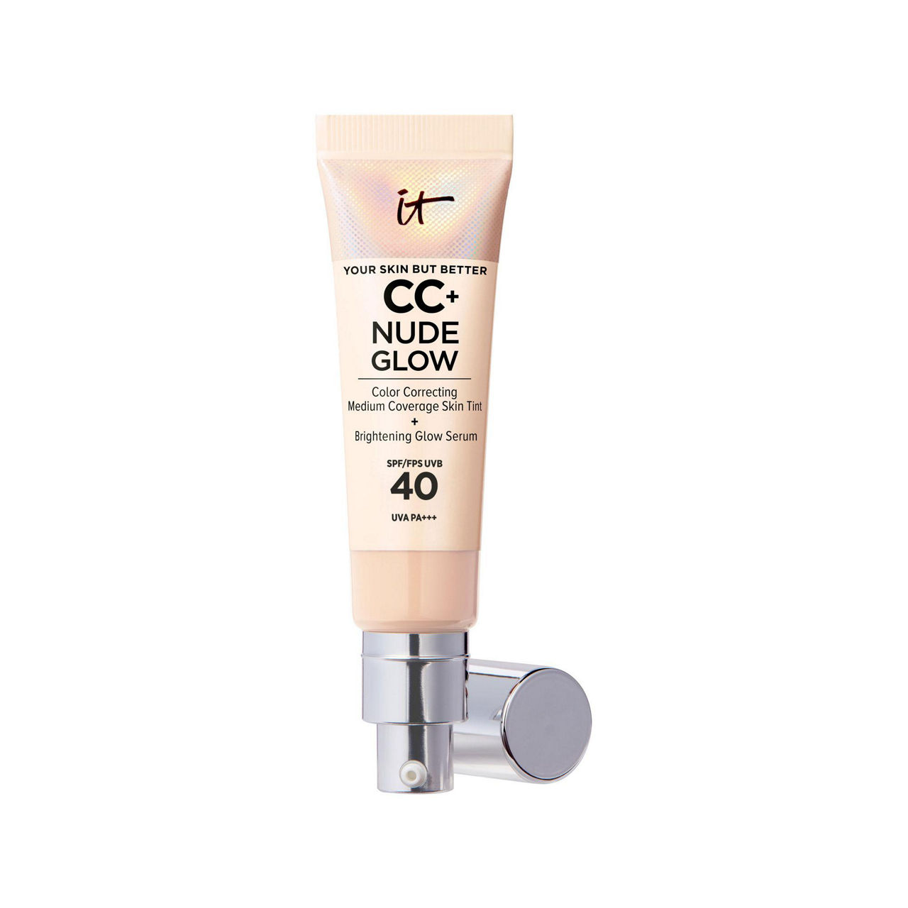 Discover IT® Get glowing with brighter, hydrated skin instantly and over time with CC+ Nude Glow SPF 40—a lightweight medium coverage skin tint with a healthy glow finish in your shade of nude. Featuring 90% skincare, our patent-pending formula is infused with a Brightening Glow Skincare base with 2% niacinamide, hyaluronic acid, green tea extract and SPF 40.