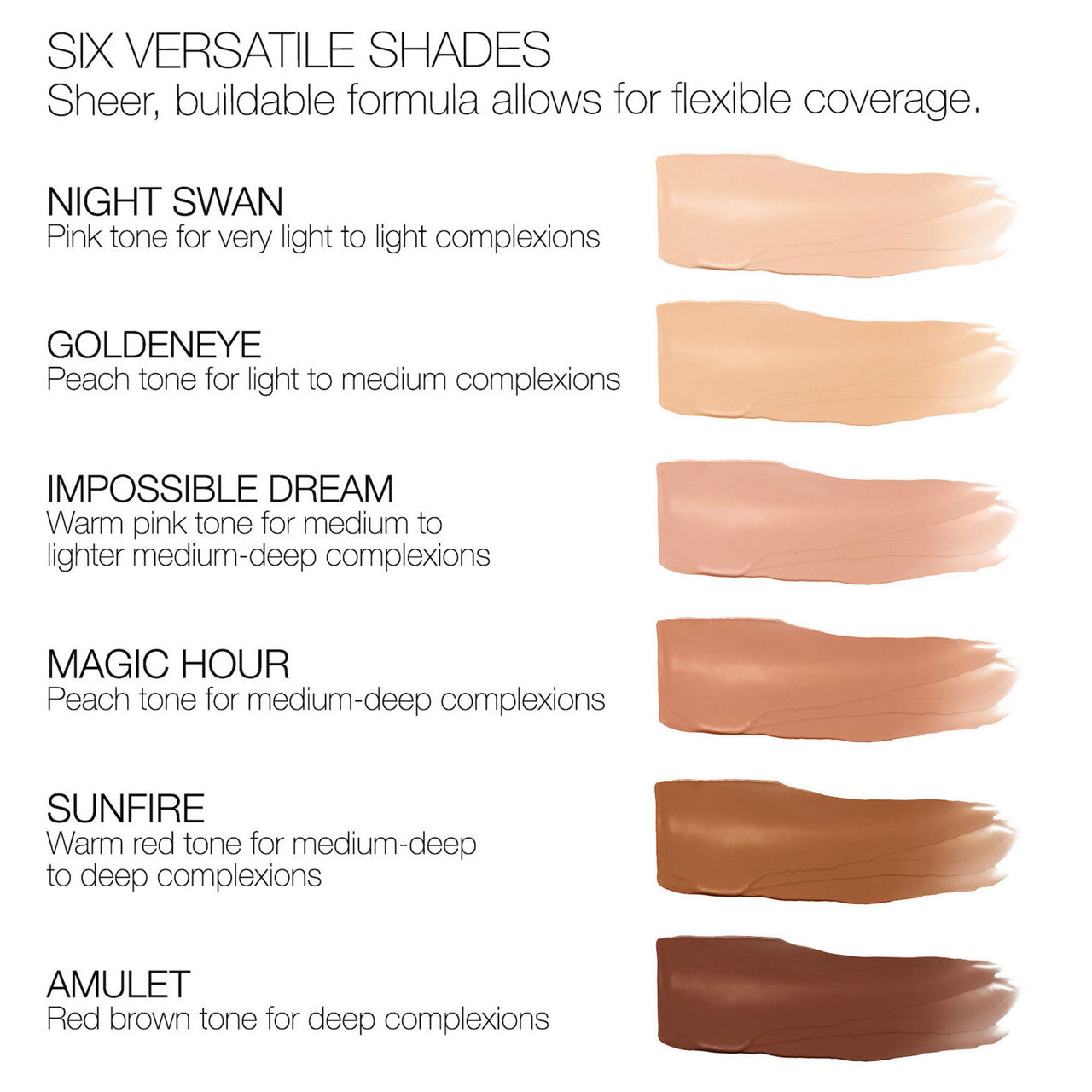 - Creamy, crease-resistant texture glides on sheer, buildable coverage