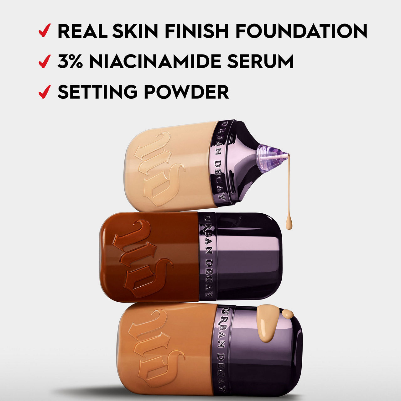 Description: The one that does it all: a foundation, meets serum, meets setting powder. This buildable, medium coverage foundation is not only packed with 3% niacinamide to benefit your skin instantly and over time, but also includes self-setting powder to absorb sweat and sebum for a natural-looking finish that won’t smudge or transfer for up to 24 hours.