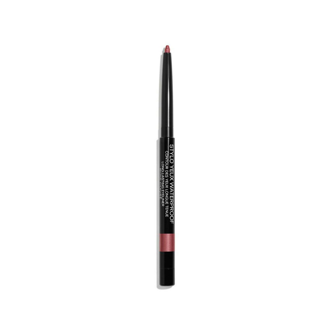 Description: A waterproof eye pencil that traces intense eyes. Its very long-lasting line resists water, humidity and sebum. Its retractable tip and integrated pencil sharpener facilitate application.