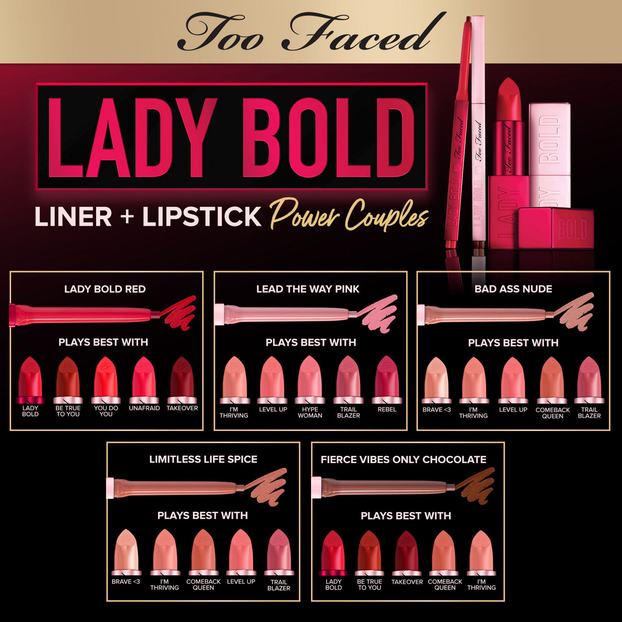 TOO FACED The Sustainable Edit Lady Bold Demi-Matte Long-Wear Lip Liner