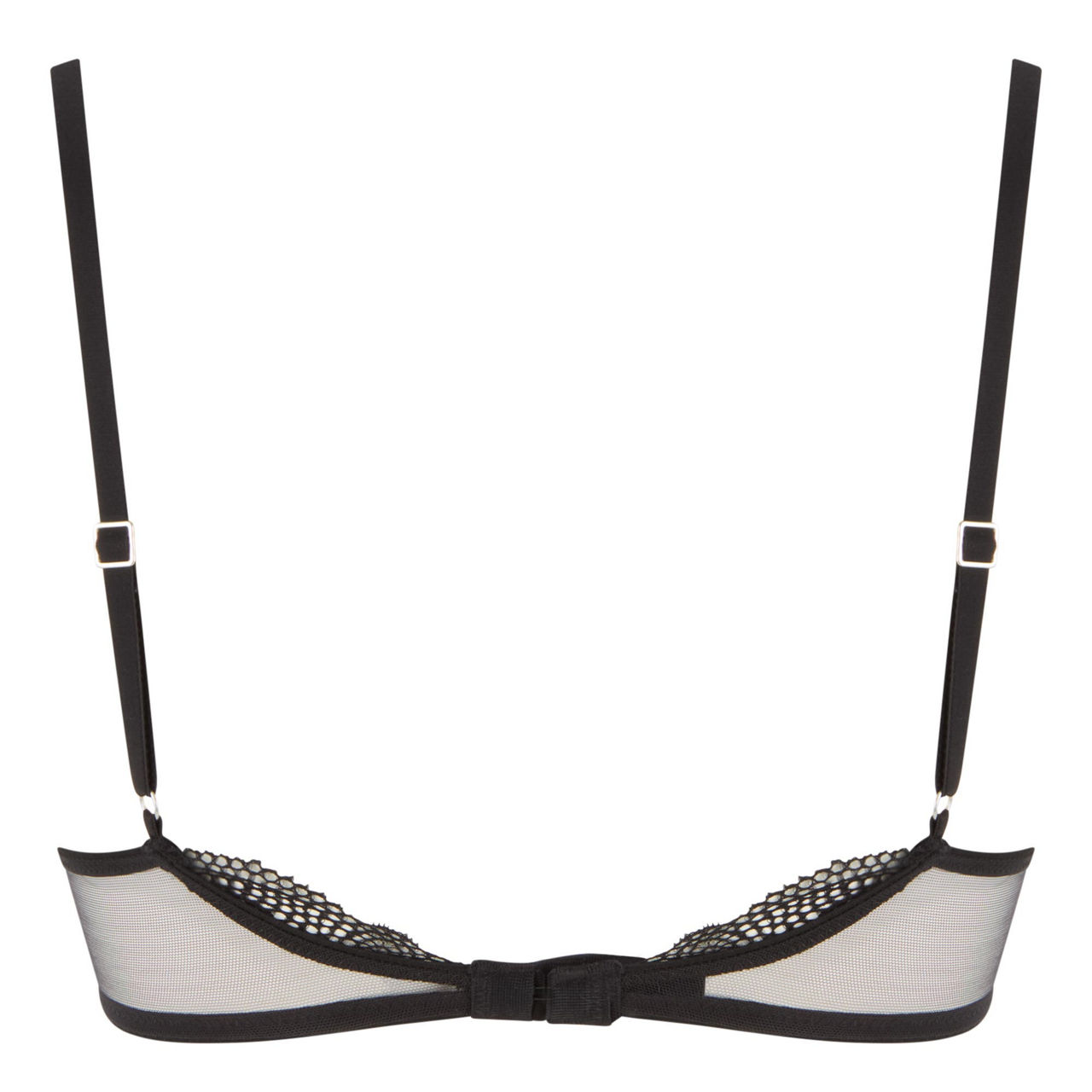 - Adjustable straps, underwired support, geometric lace design, back mesh panels, hook and eye fastening, clasp closure