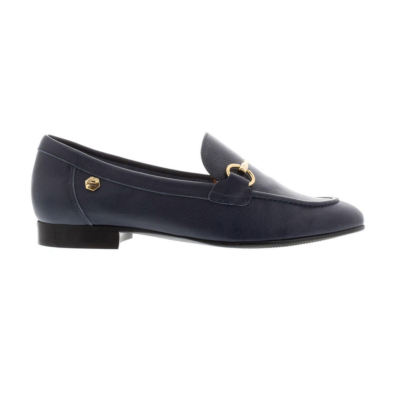 • Product Details: Almond Toe Loafer, Snaffle Detail, Raised Apron Detailing, Leather Upper, Cushioned Sole, Low Block Heel, Slip On, Carl Scarpa Signature Emblem