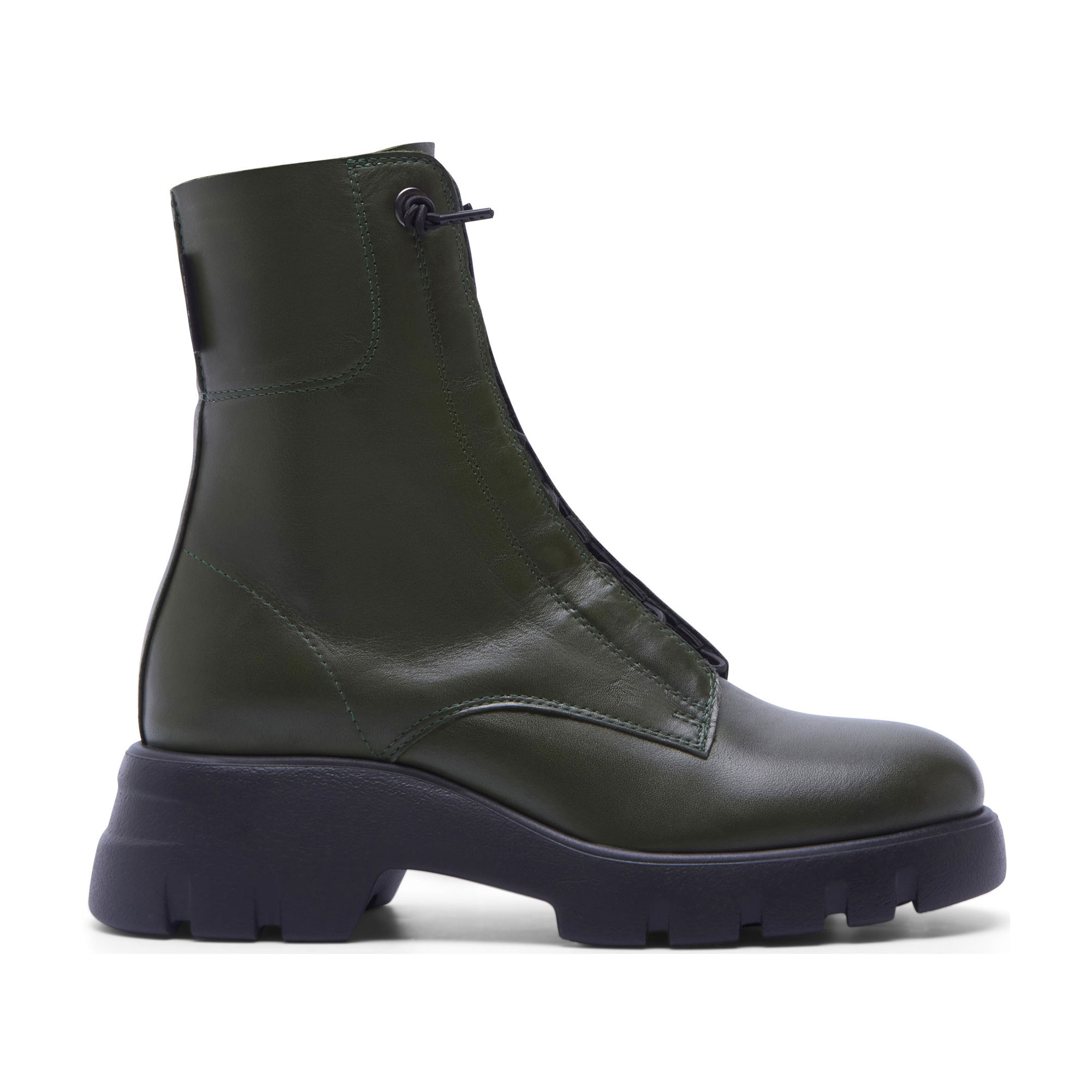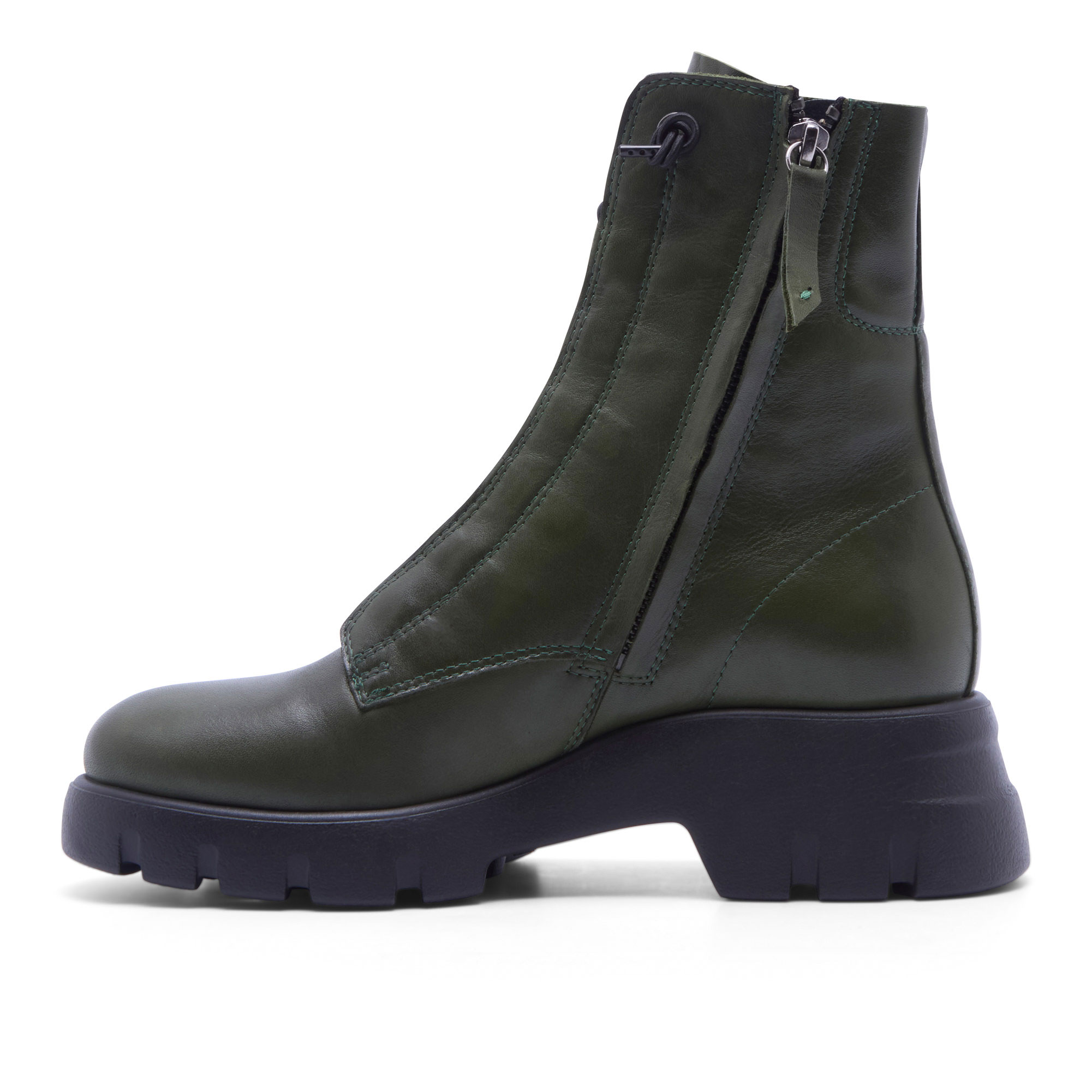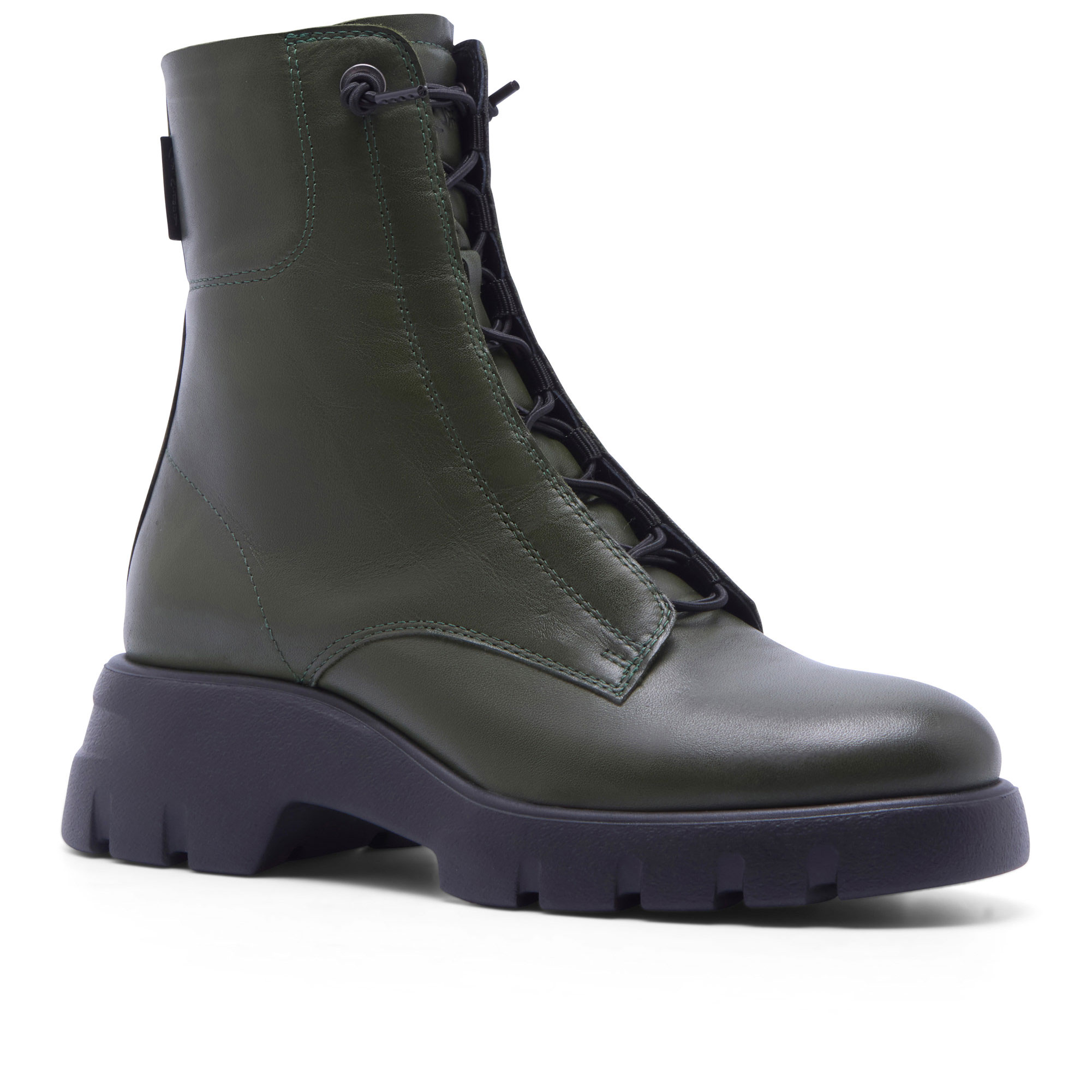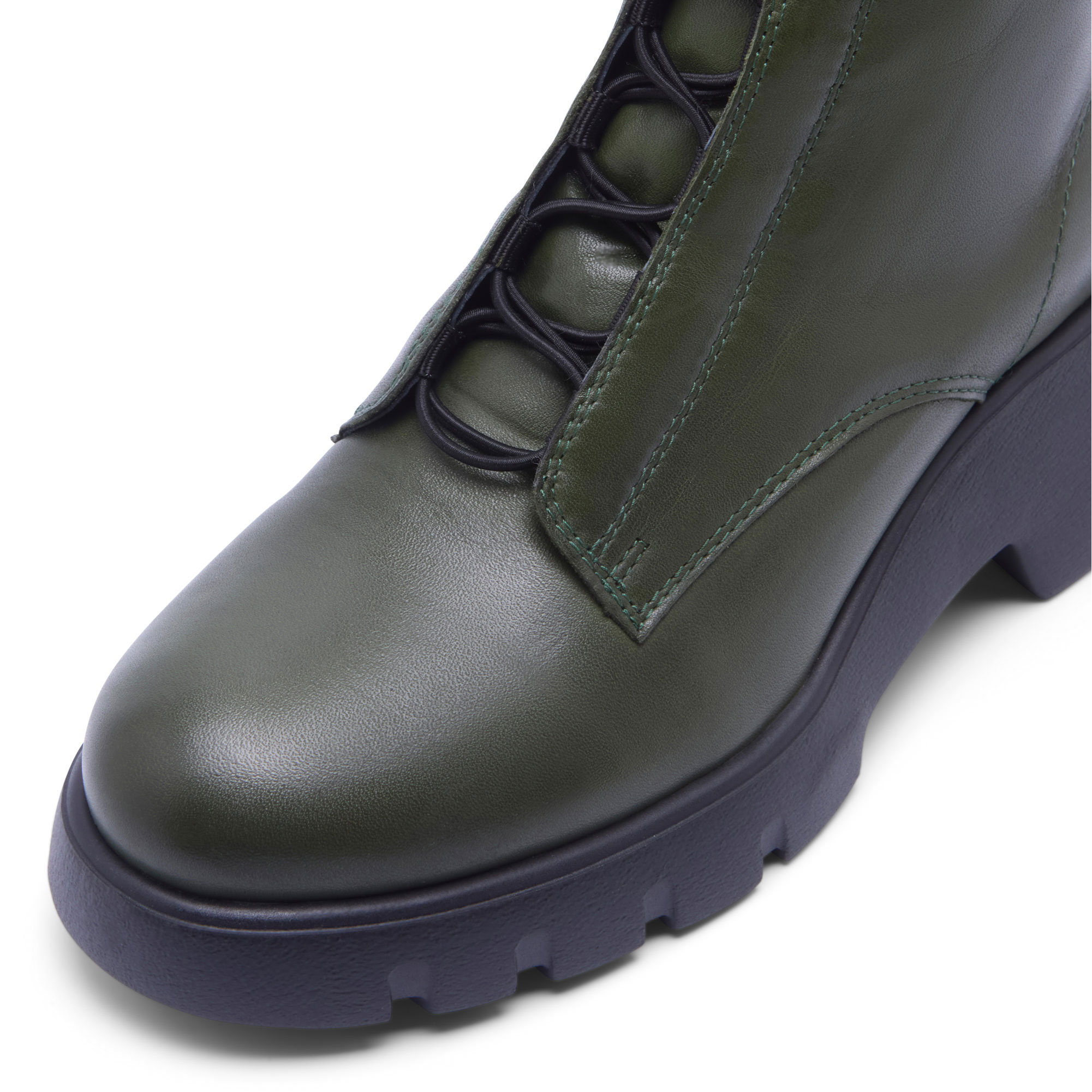 - Almond toe, chunky mid heel, taller leg, elastic laces, inside zip, leather lined, cushioned insole, logo detail