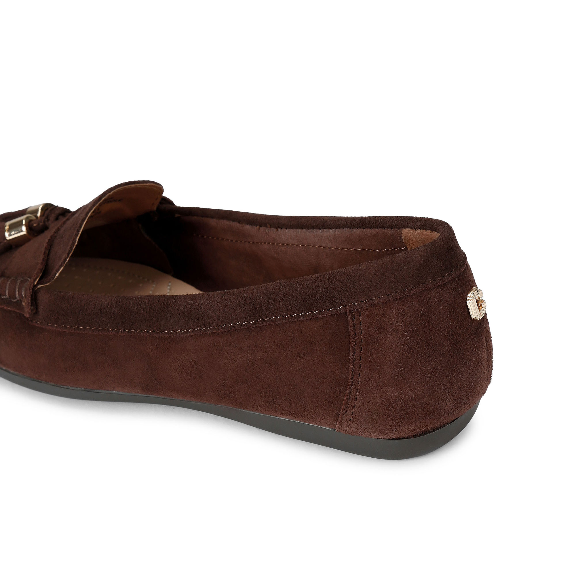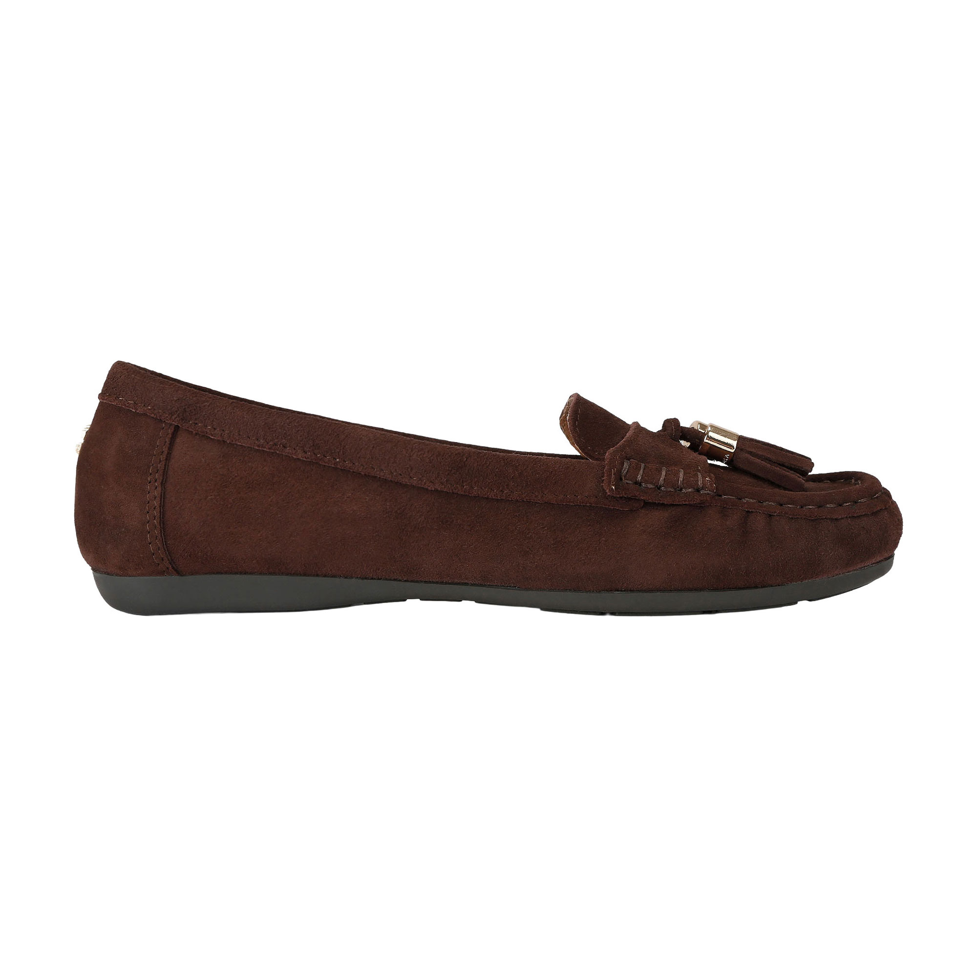 - Flat sole, loafer style, leather, two tassel details