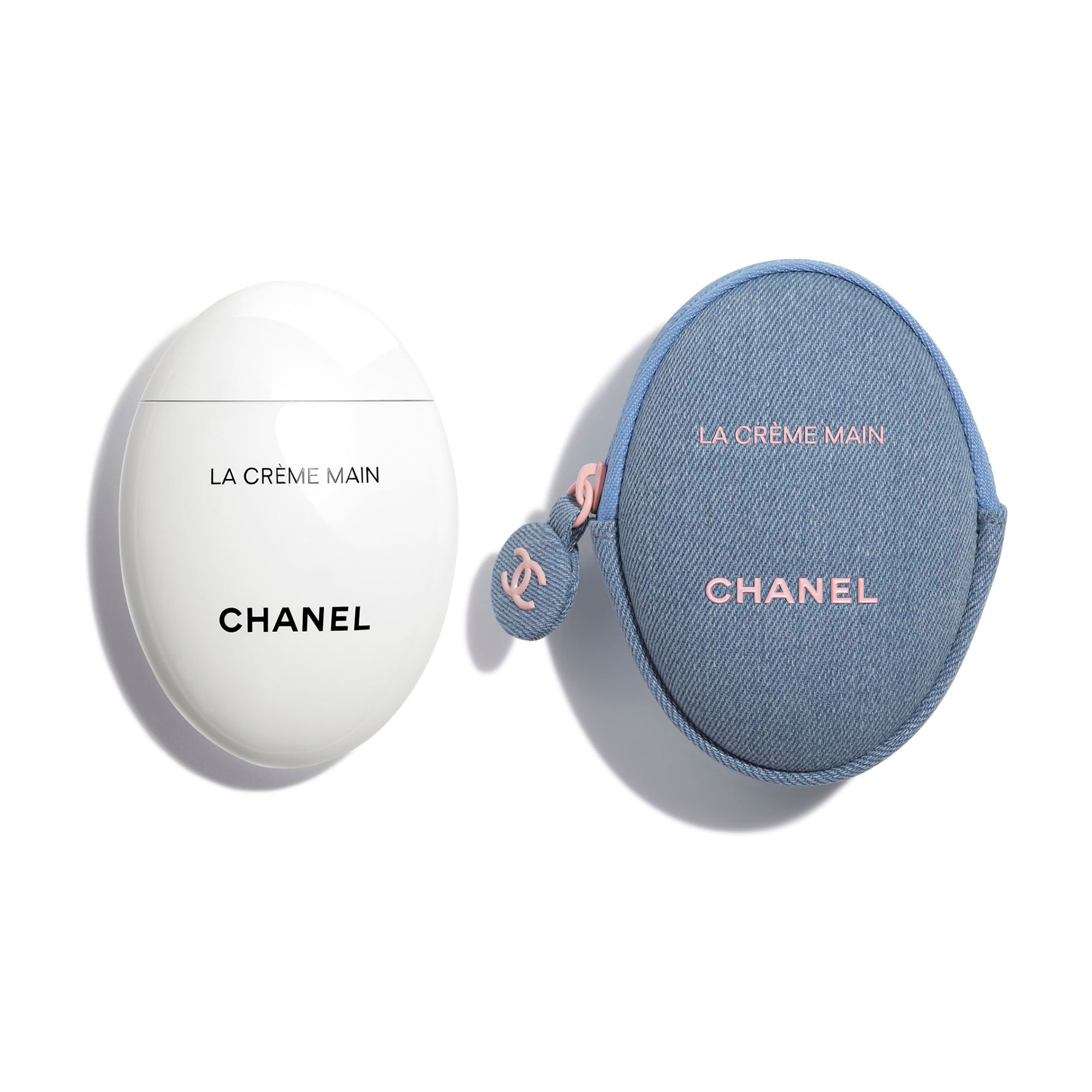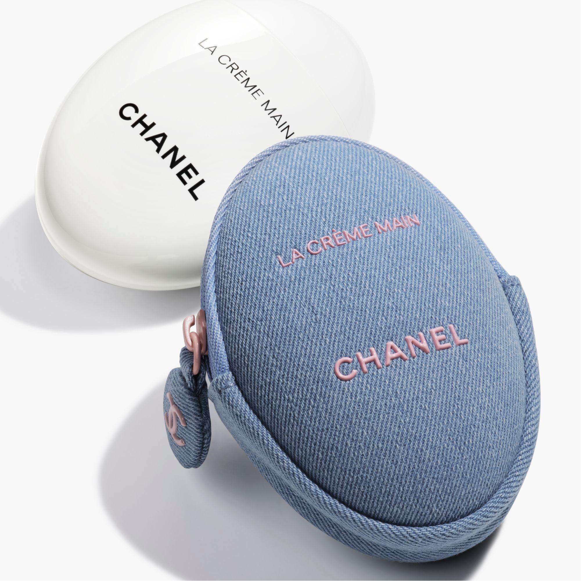Description: For the DENIM makeup collection, the CHANEL Makeup Creation Studio and COMÈTES COLLECTIVE member Valentina Li present a new way to wear denim as makeup. For the first time, the iconic LA CRÈME MAIN by CHANEL is outfitted in an exclusive jean pouch and placed in the spotlight as part of this limited-edition collection.