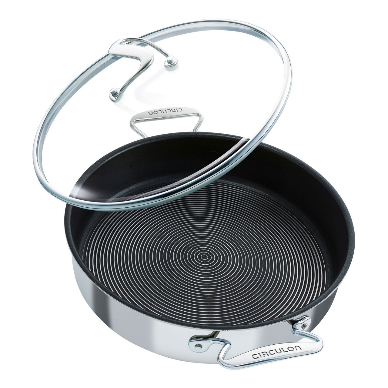 Circulon Steel Shield - welcome to fearless cooking in your kitchen! With over 35 years of experience Circulon have created the next generation of pans - cooks like steel but cleans like nonstick! The strength and beauty of Stainless Steel with the ease of nonstick - simply the best of both worlds. Triply stainless bodies for fast even heating and suitable for all hobs. Steel peaks protect the nonstick from even the toughest of cooks. No need to worry about scratches - metal utensils bring it on! Steel peaks encourage searing to maximise the flavour of your foods and make your dishes taste great! What an investment - this 30cm Sauteuse is built for a lifetime of use and perfect for a variety of kitchen recipes. Easy clean , food tastes better this sauteuse has got to be my favourite piece in the collection !