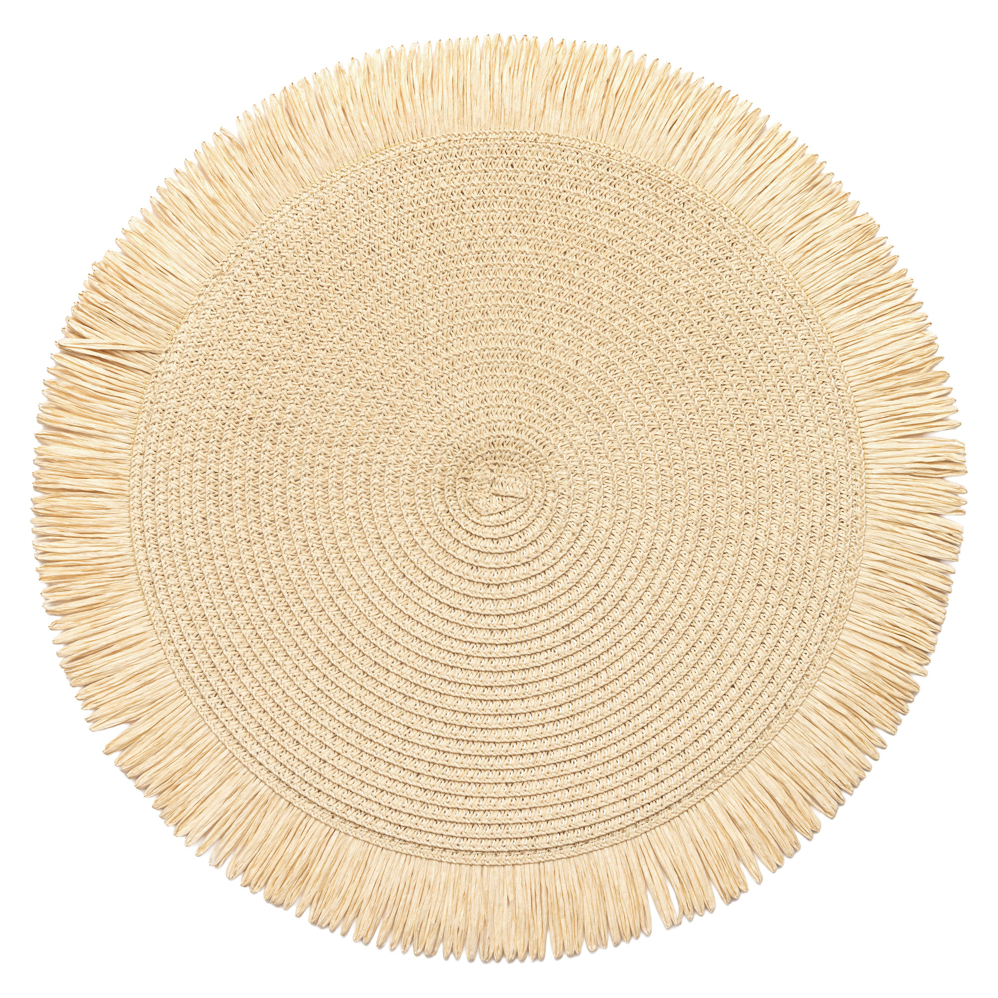 • Woven paper with fringed edge, complements ceramic collections, contemporary standalone design