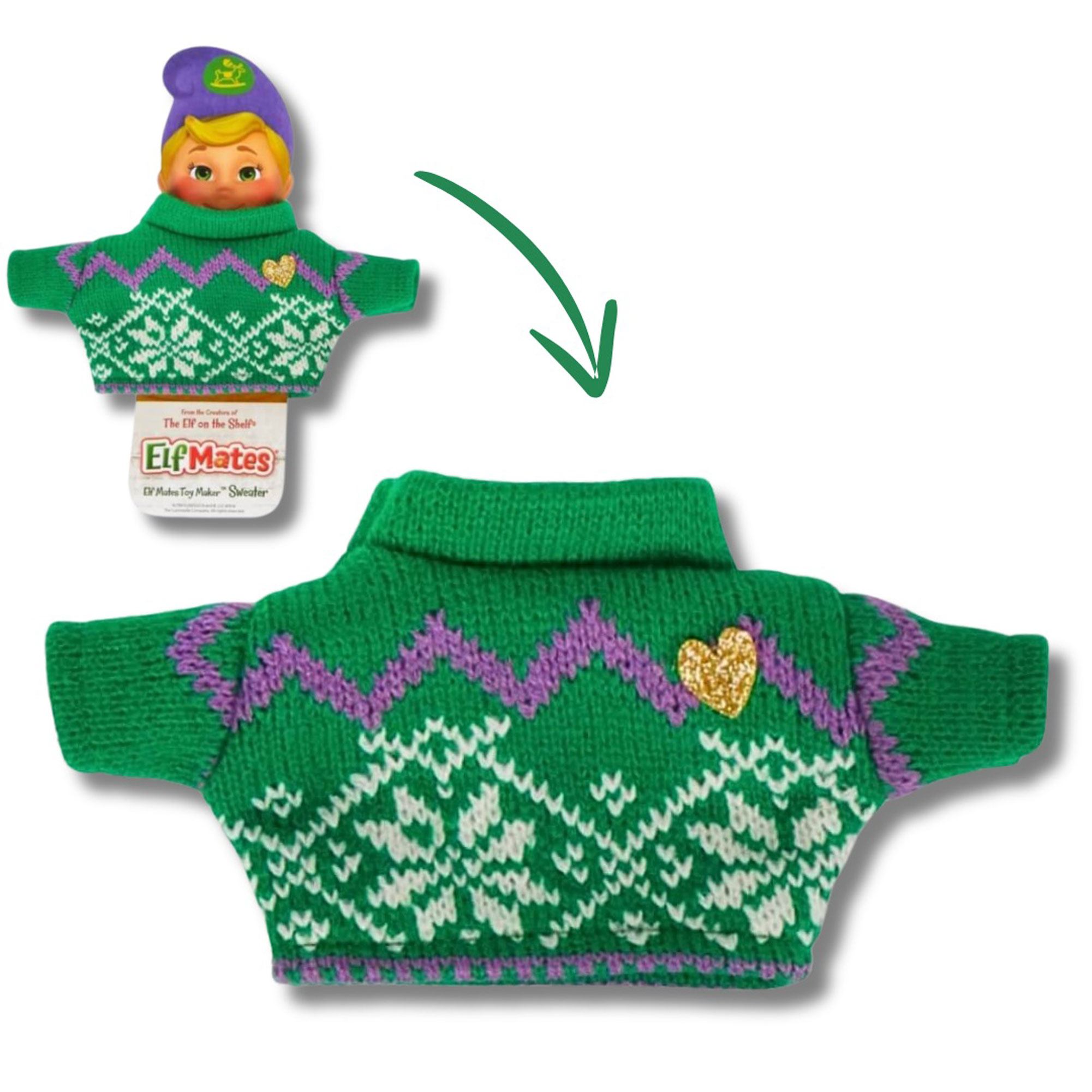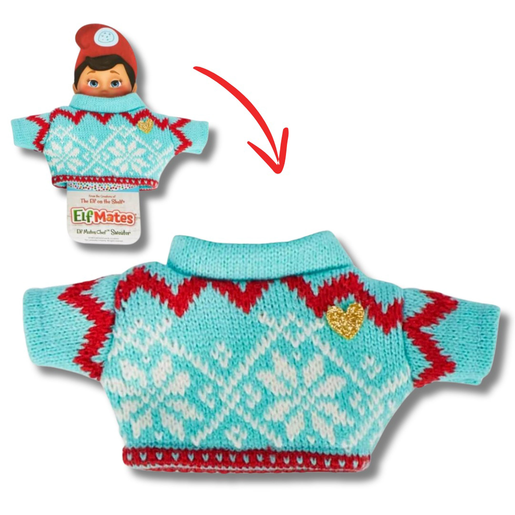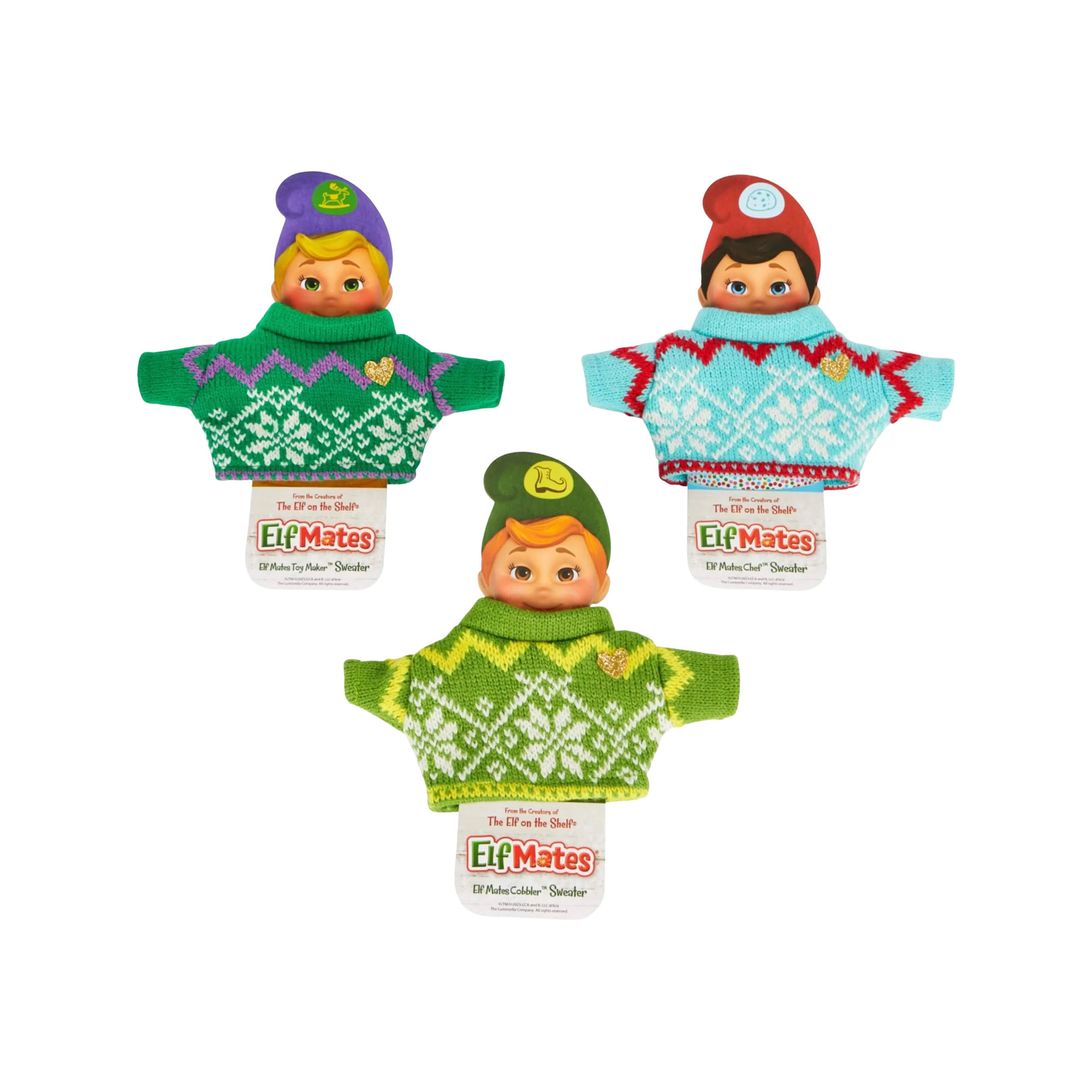 These playful sweaters showcase the Elf Mates with clever style! (Elf Mates dolls not included)