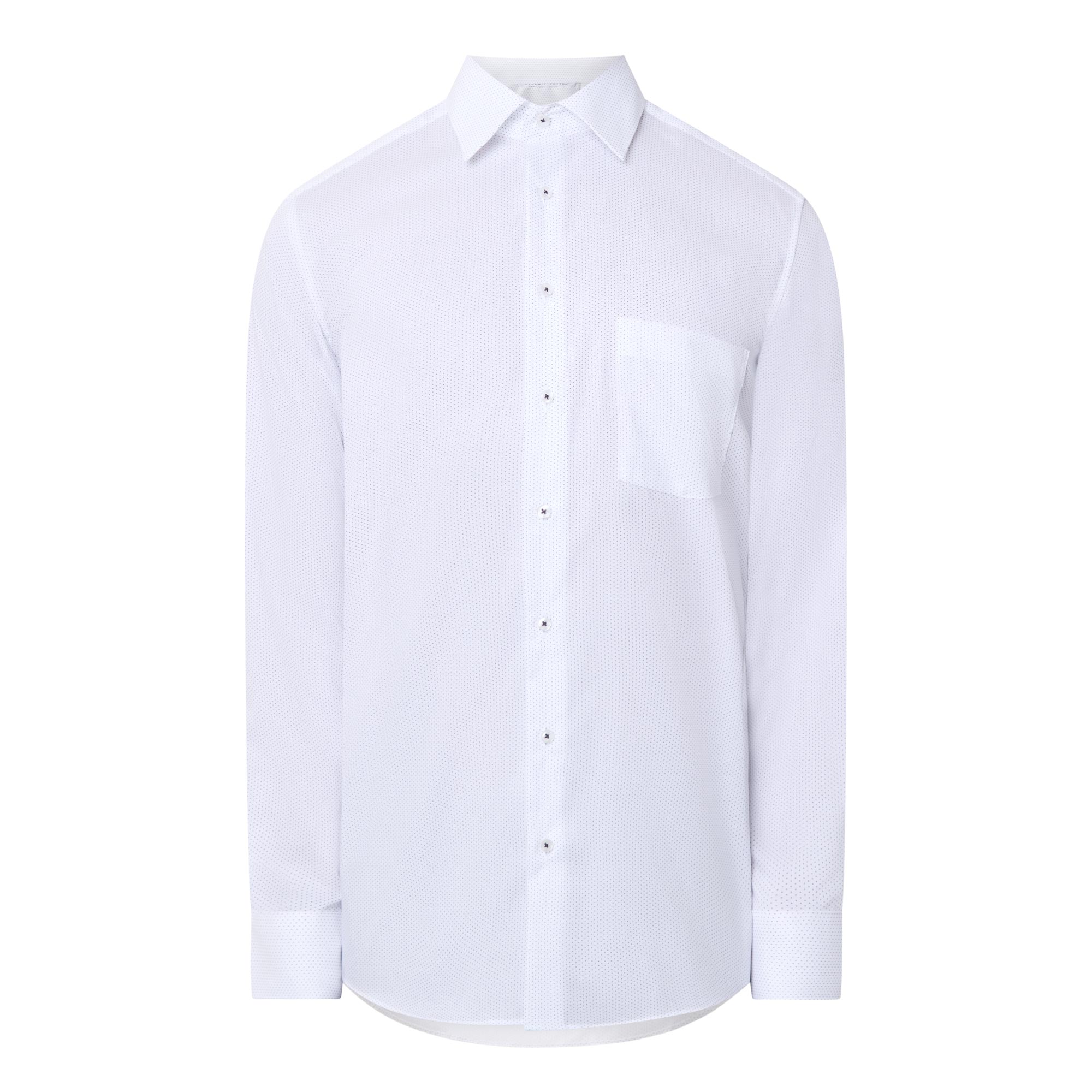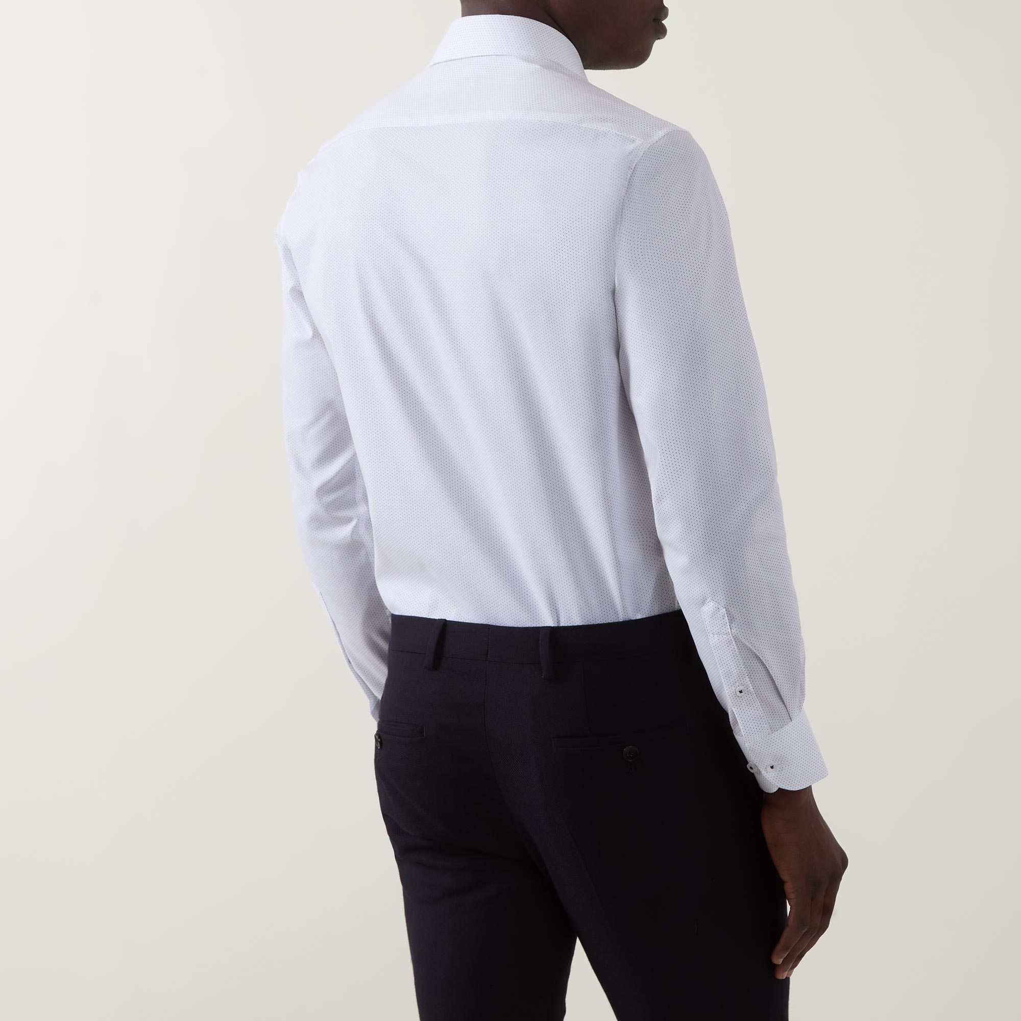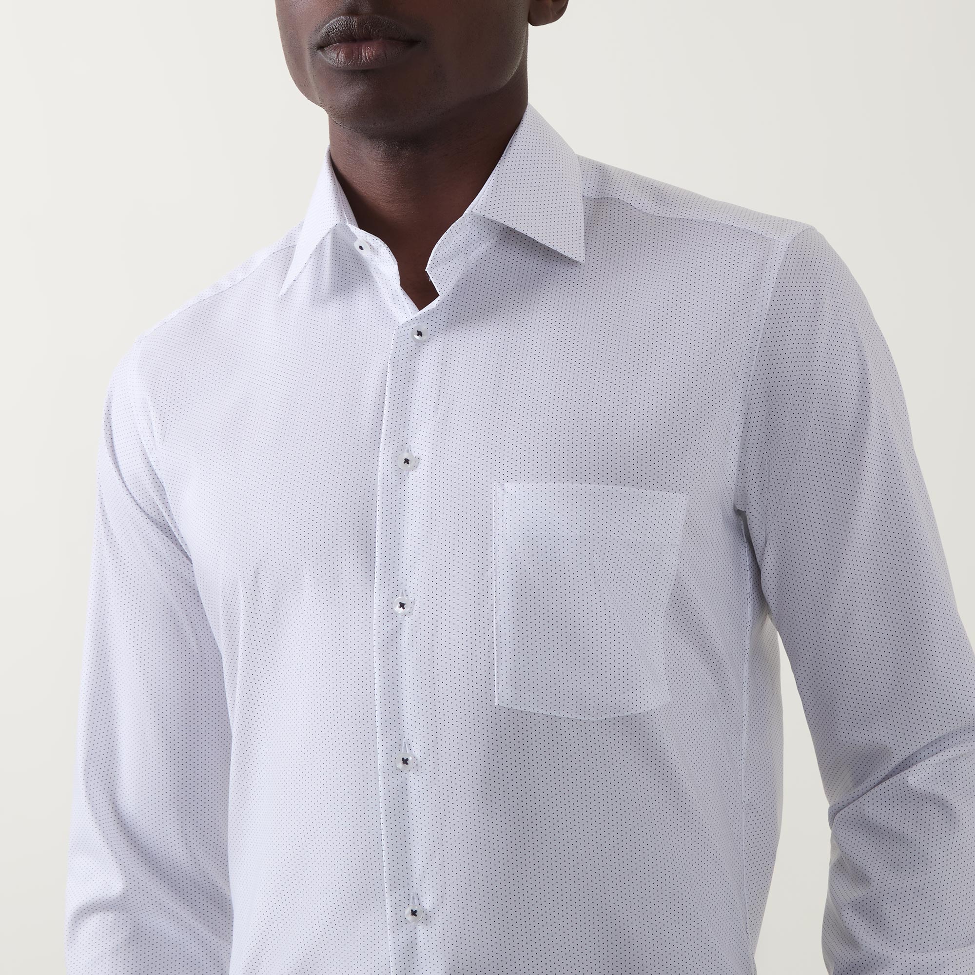 • Cut-away collar, long sleeves, single-cuff, button fastening, curved hemline, chest pocket, dot pattern
