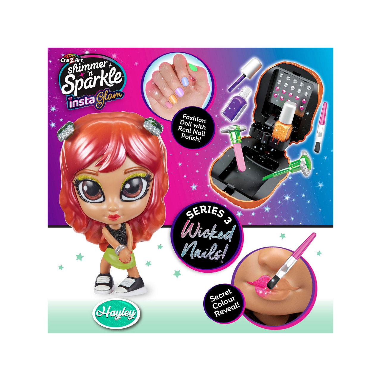 - Hayley doll, two nail varnishes, gem sheet, nail file, mini cuticle shaper, colour change brush.