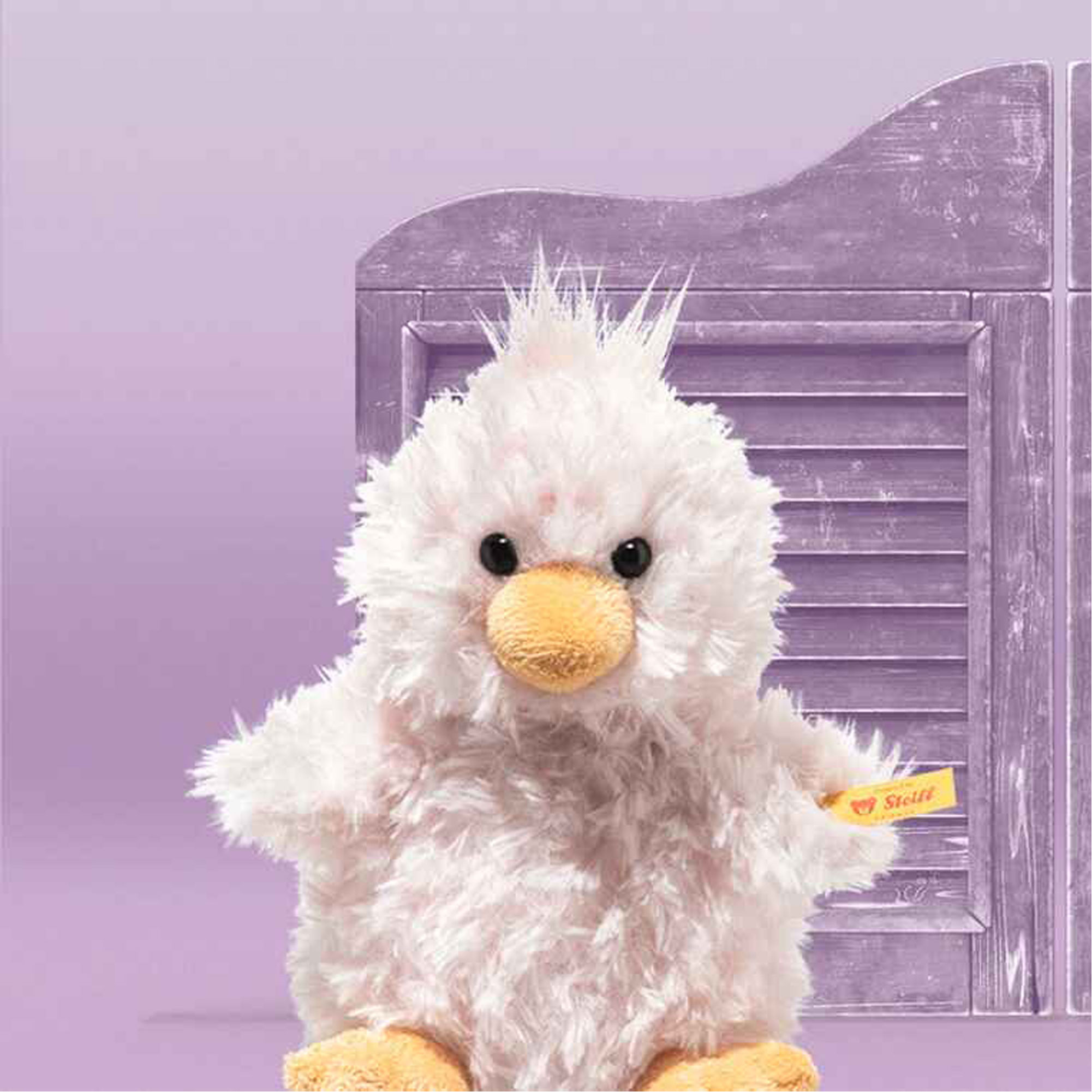 Pipsy chick steps out of her warm nest, ready to greet the day with curiosity. Made from cuddly soft plush in a gentle shade of pink, she looks out at the world with loving eyes and a friendly expression. Little bean bags in her bottom and feet give her a pleasant weight and a steady stance. Measuring 14 cm and wearing the iconic Steiff “Button in Ear“, Pipsy is a loyal little friend who brings comfort – and turns every day into a gentle adventure.