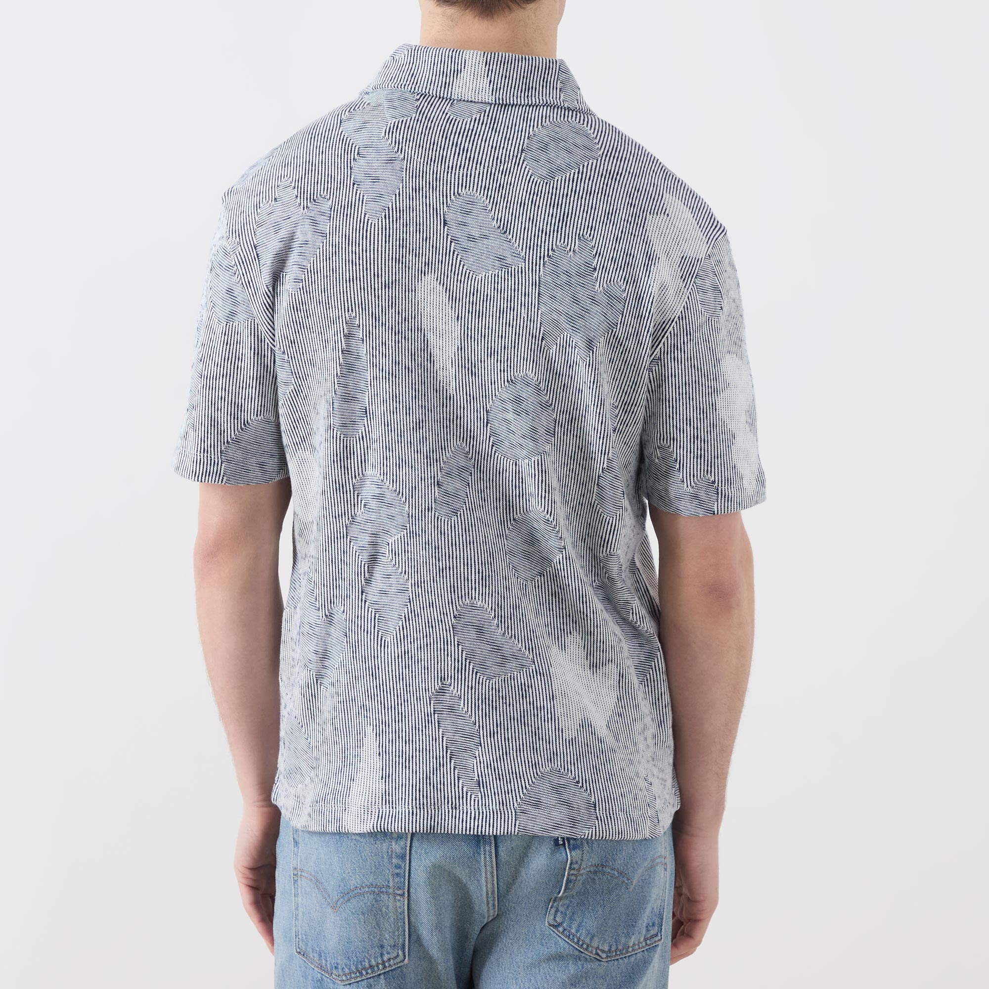 - Jacquard design, short sleeves, pointed collar, button fastenings