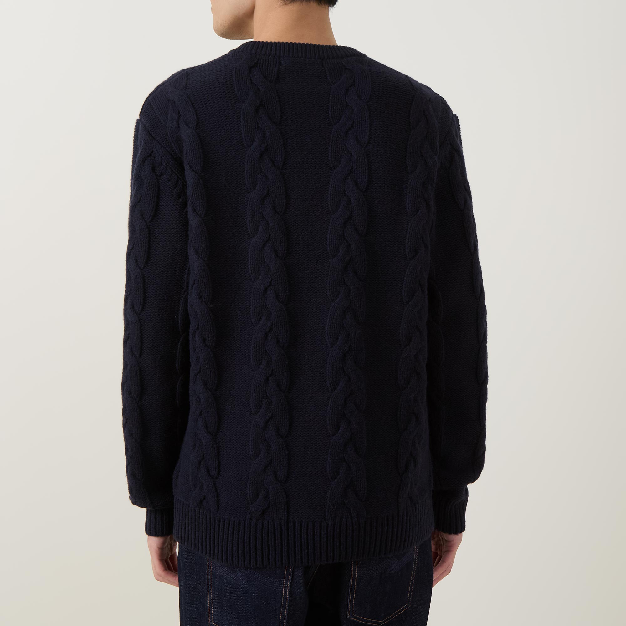 - Crew neckline, long sleeves, ribbed trims, dropped shoulders, cable knit structure, laurel wreath logo detail