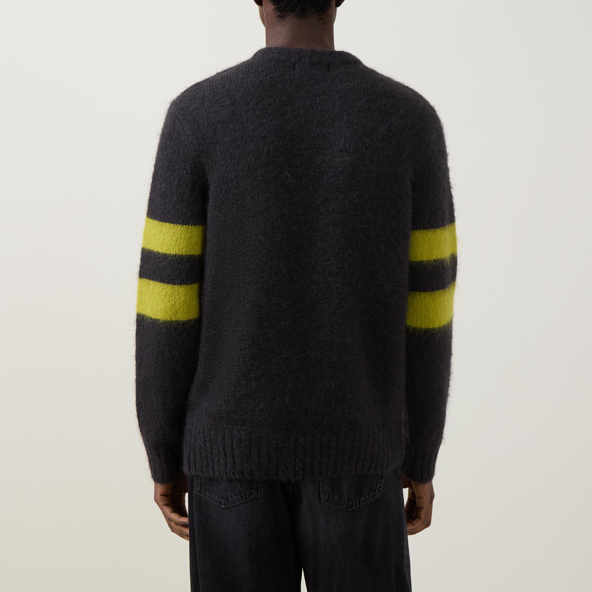 - Crew neckline, long sleeves, dropped shoulders, ribbed trims, knit structure, tipped details at sleeves, embroidered laurel wreath logo at chest