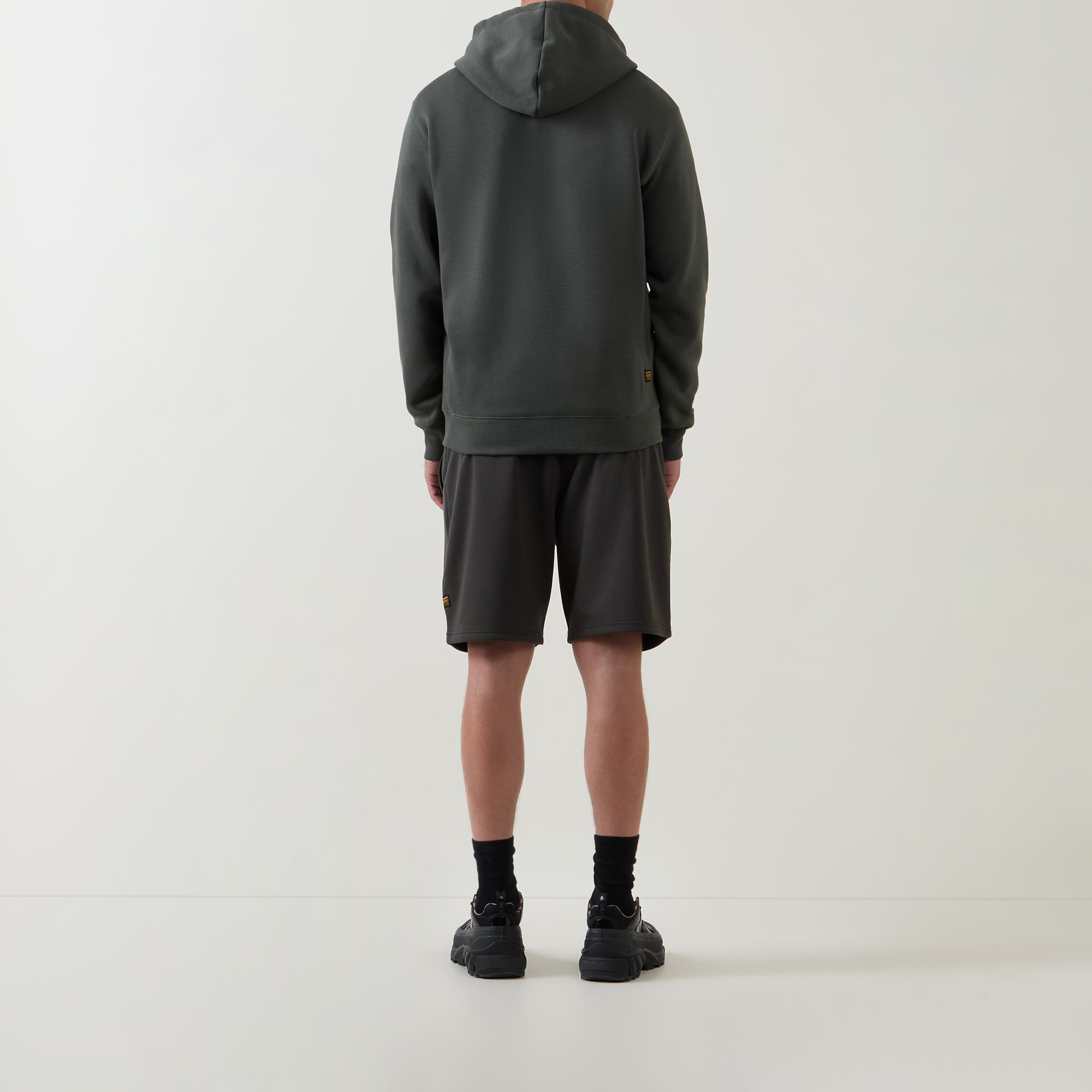 - Fixed hood with adjustable drawstring fastening, V-insert, dropped shoulders, long sleeves, kangaroo pocket, straight hem, ribbed trims, tonal logo detail on the chest, soft finish