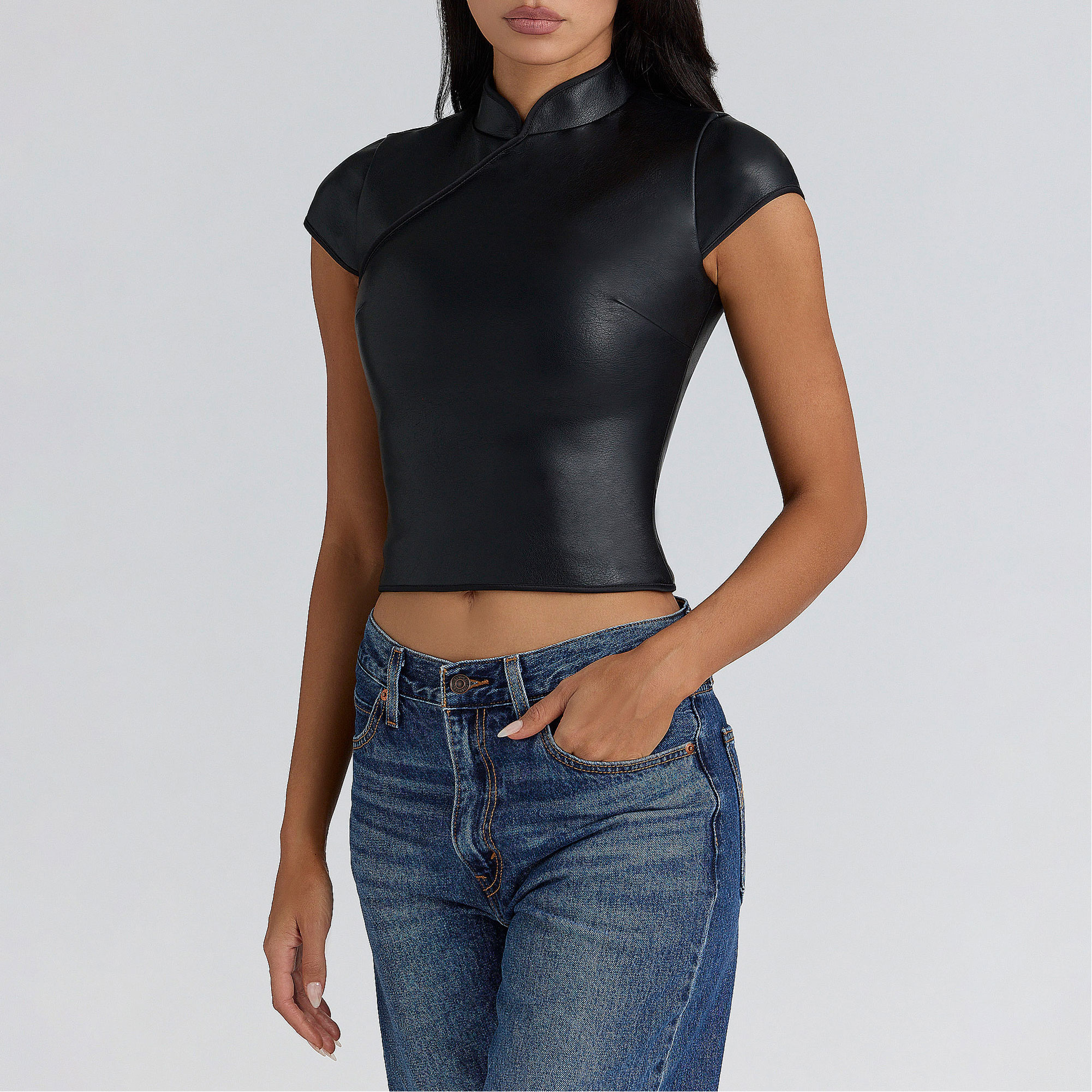 HOUSE OF CB Bobbi Mandarin Collar Top