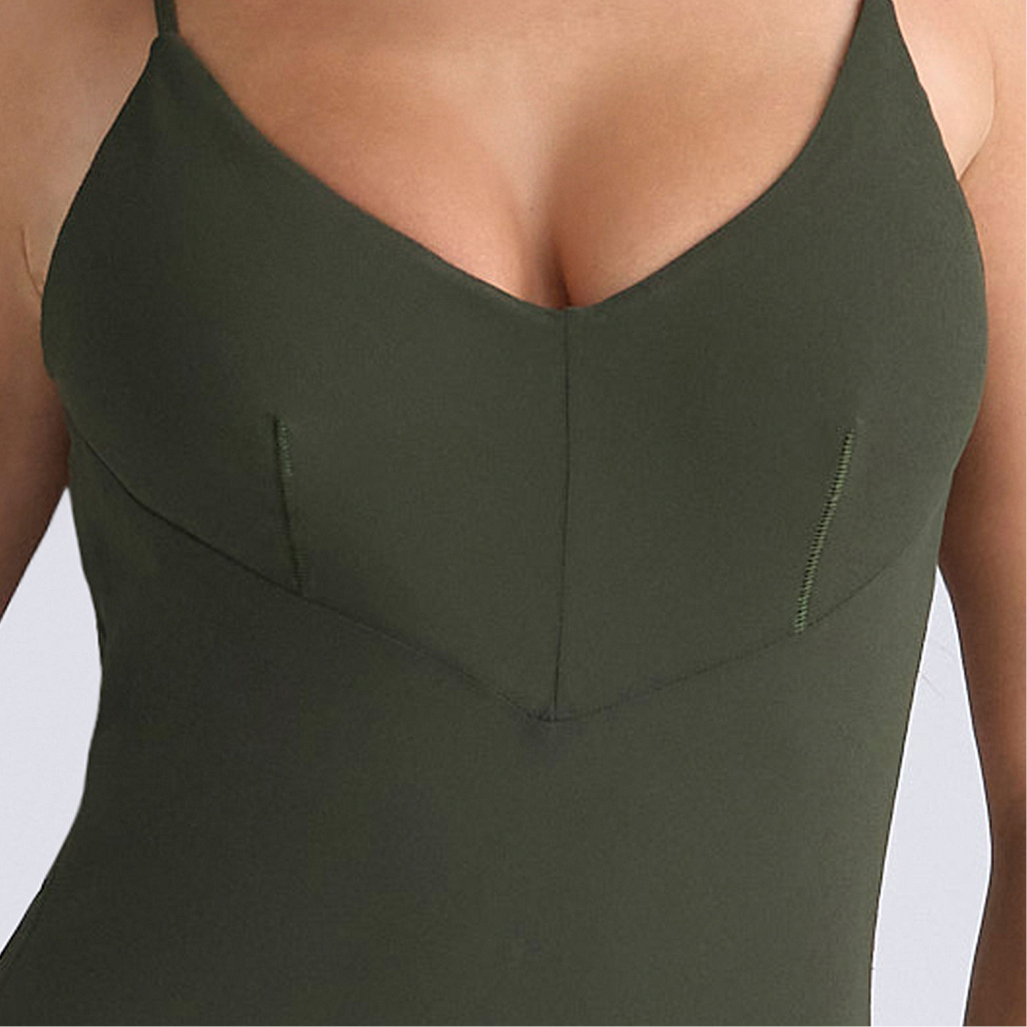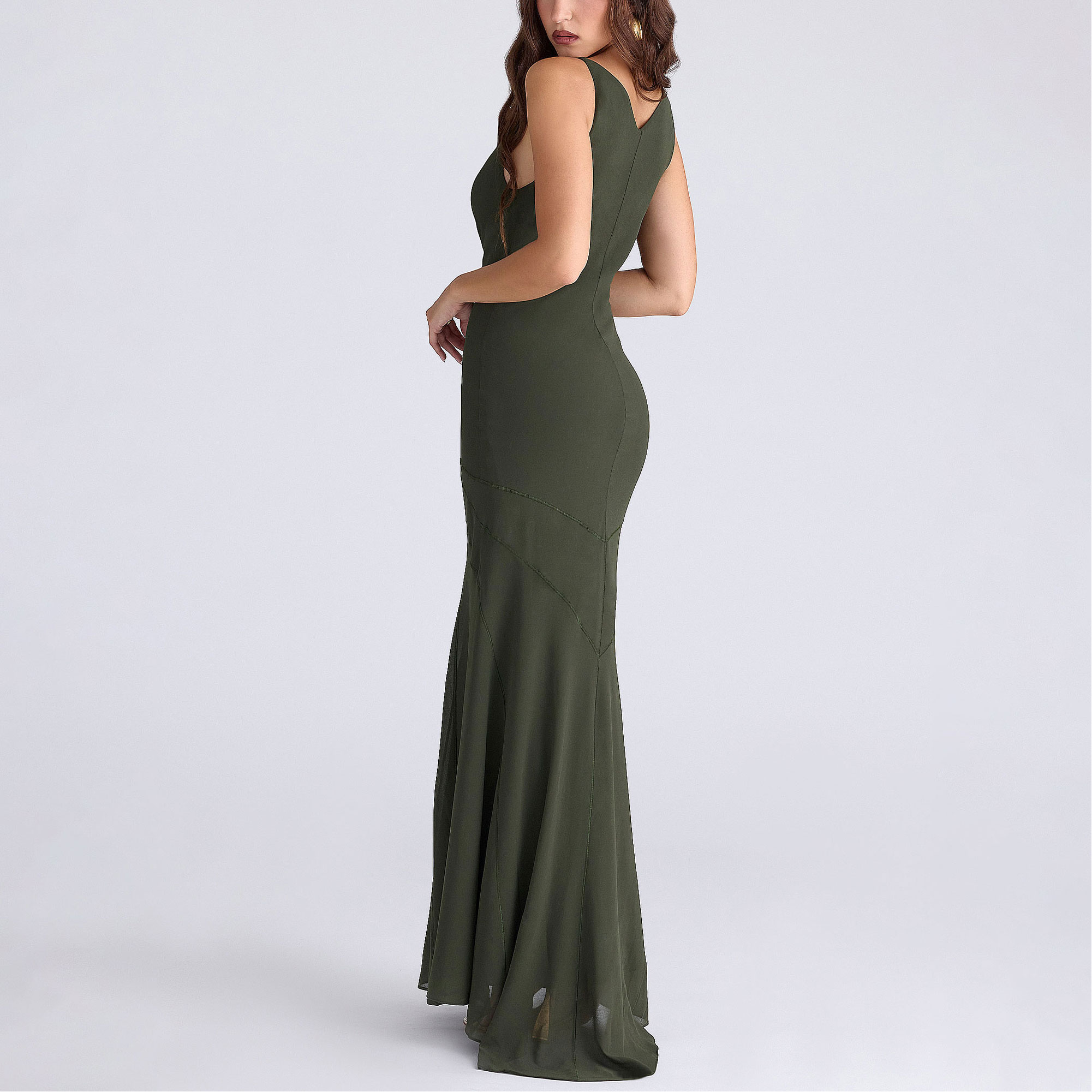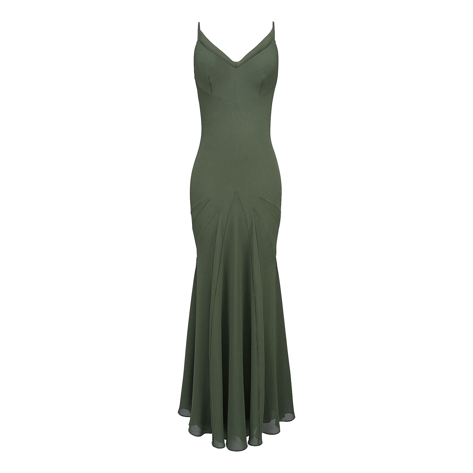 • Georgette fabric, lined, slip-on style, cut on the bias, V-neckline, internal elastic, decorative stitches