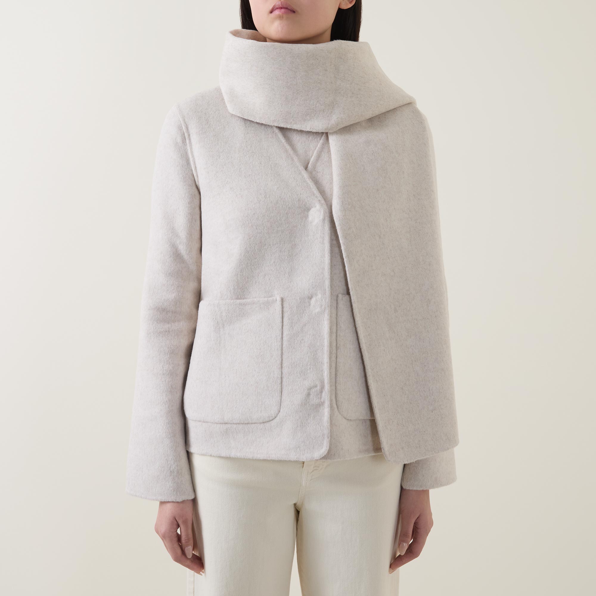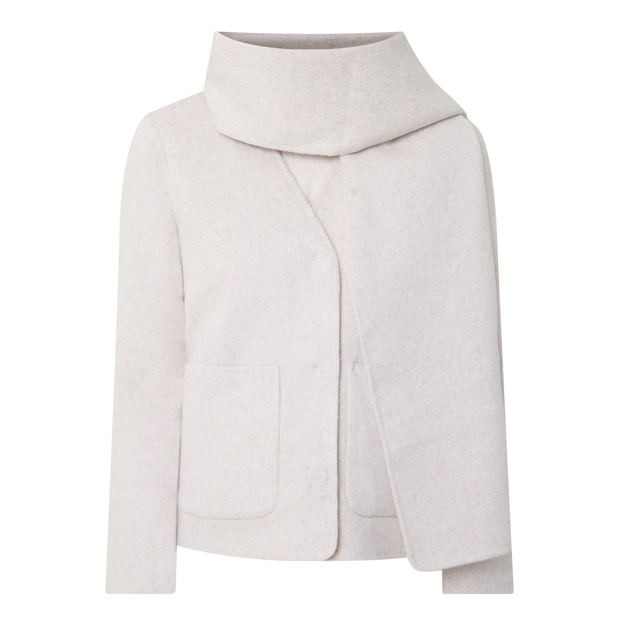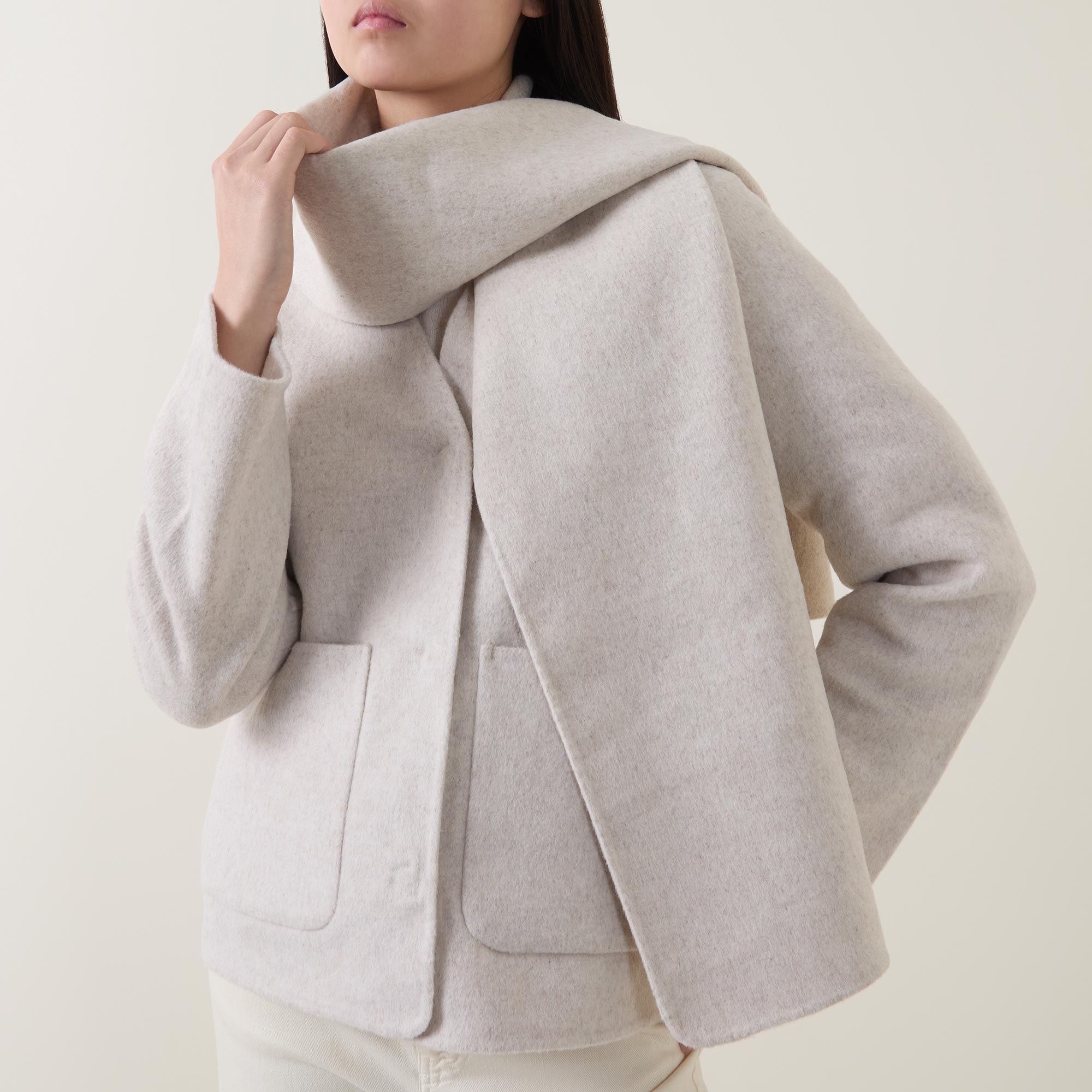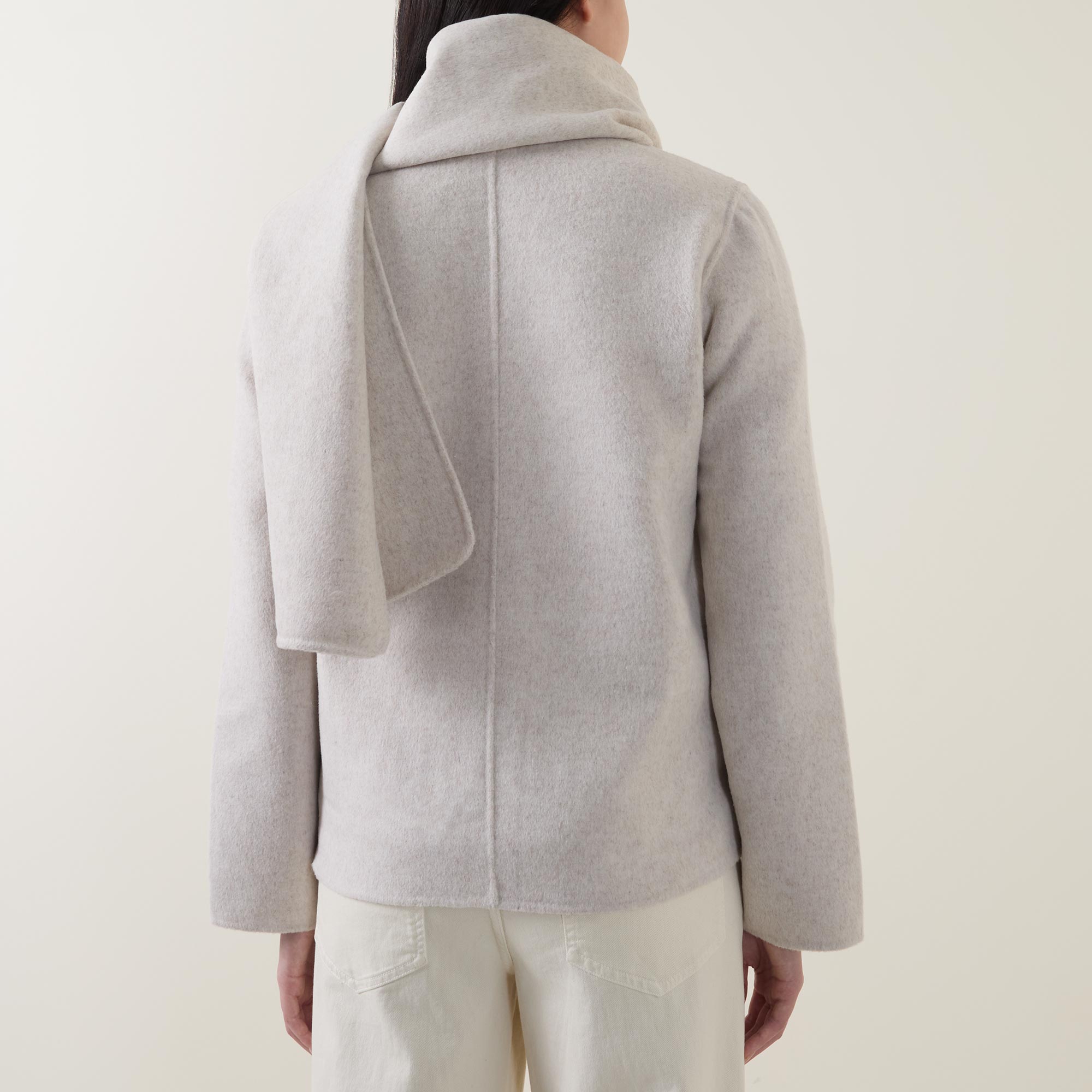 • V-neckline, concealed button fastening, patch pockets, raised seams, detachable scarf detail