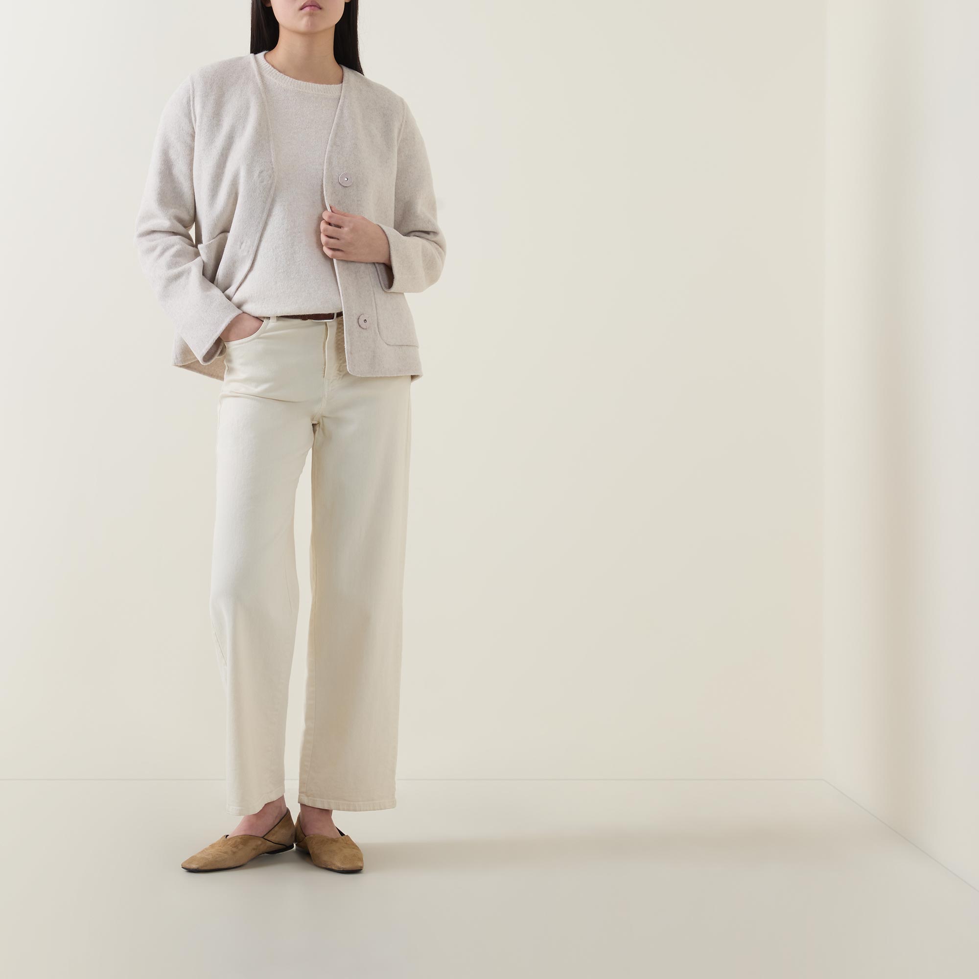 • Composition and Care: 50% wool, 48% polyester, 1% acrylic, 1% polyamide. Dry clean
