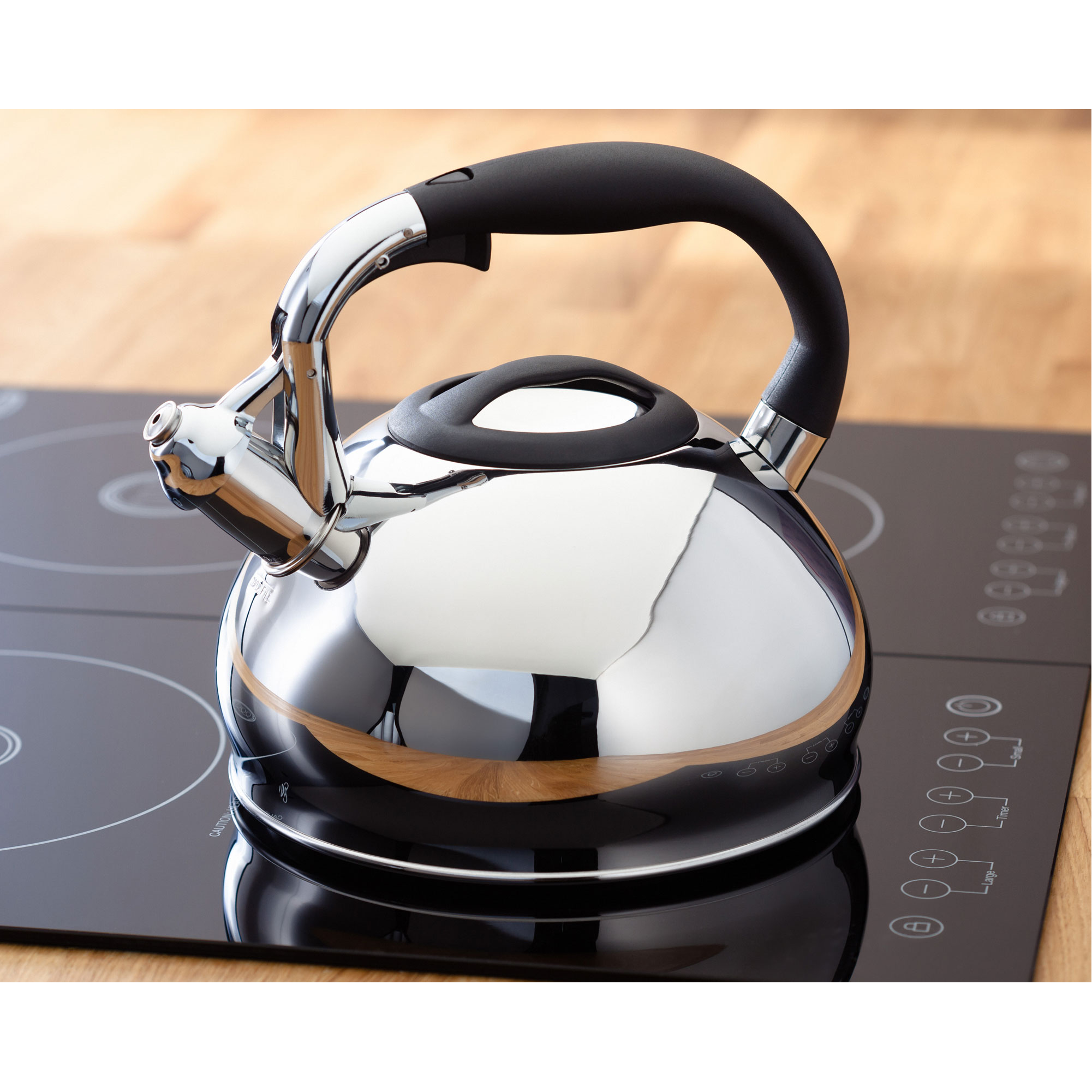 - Retro style, whistles when reaches boiling, stove top design, stainless steel
