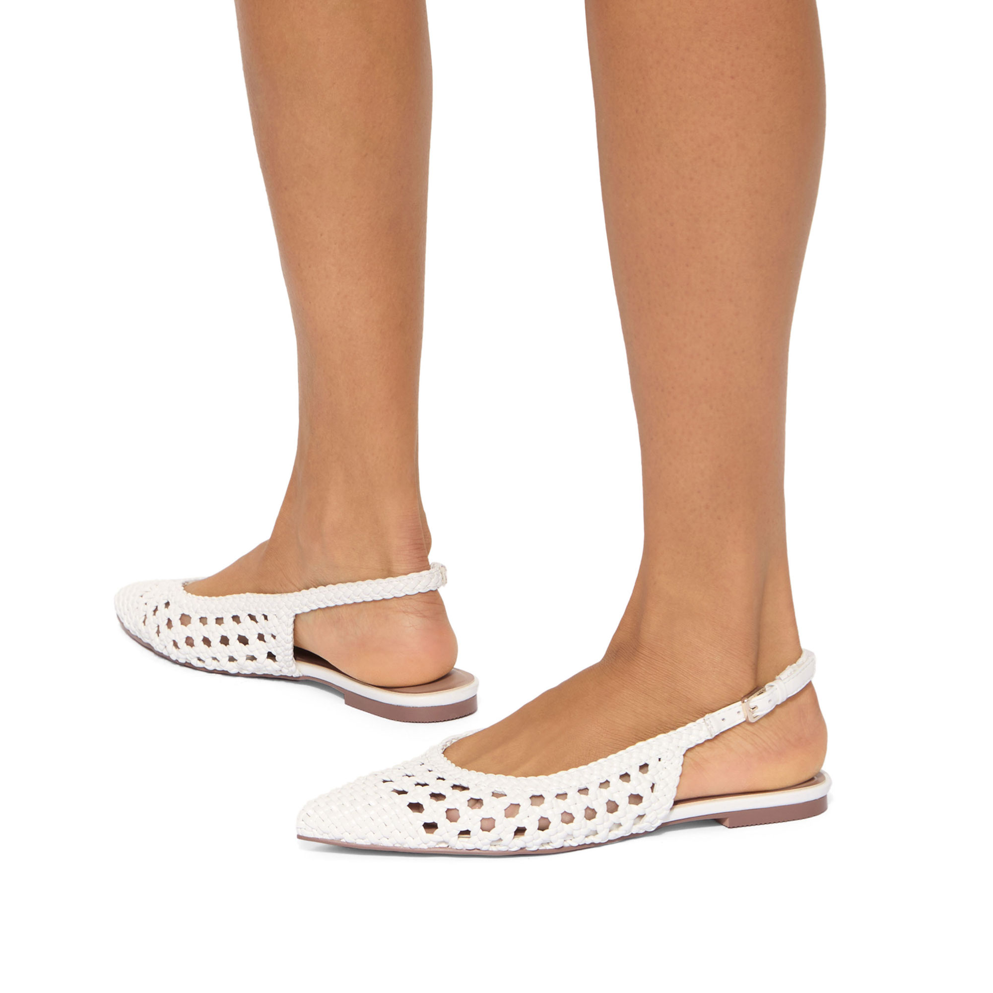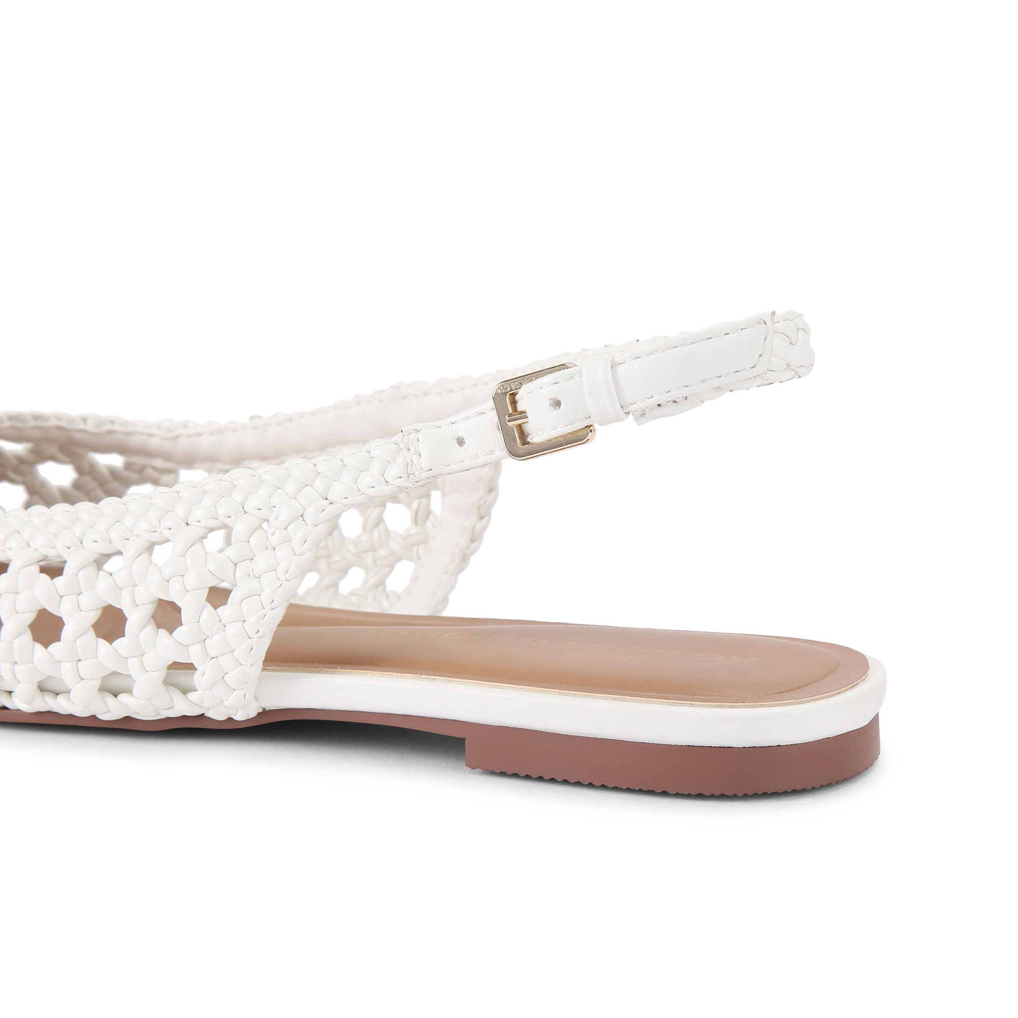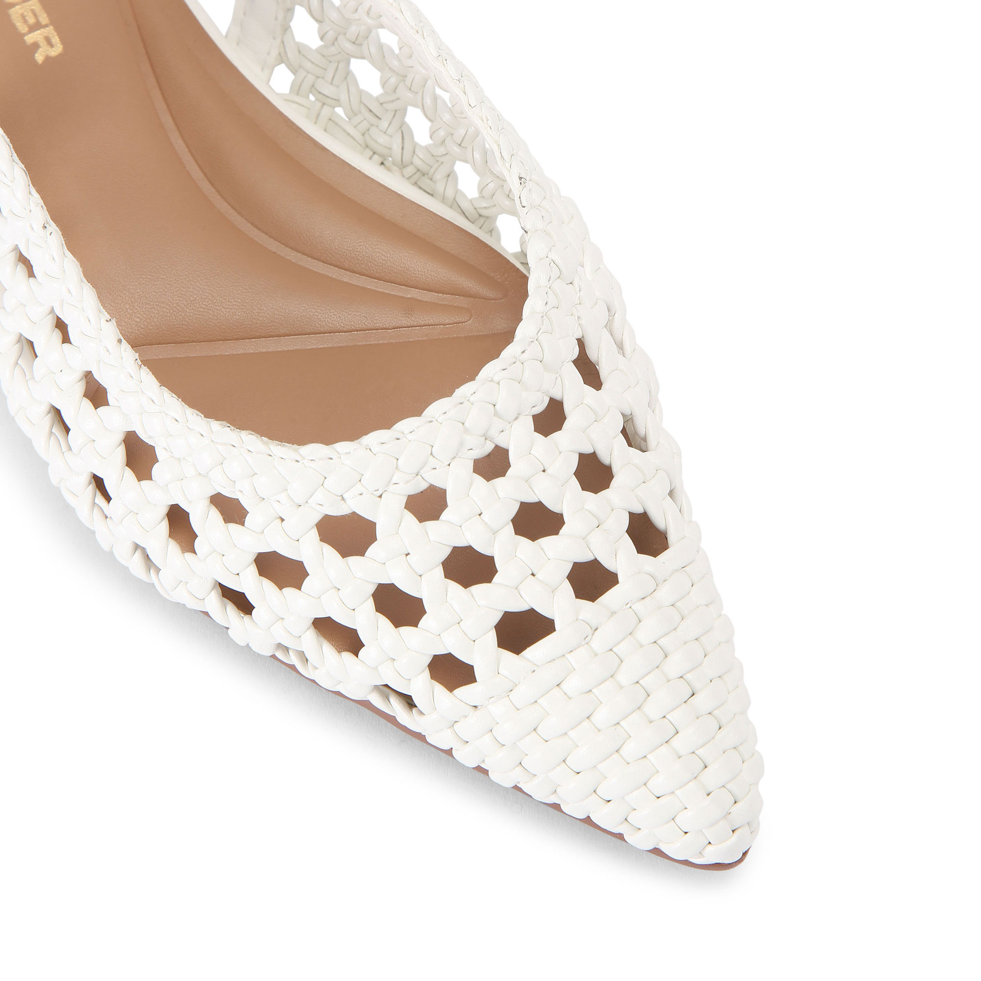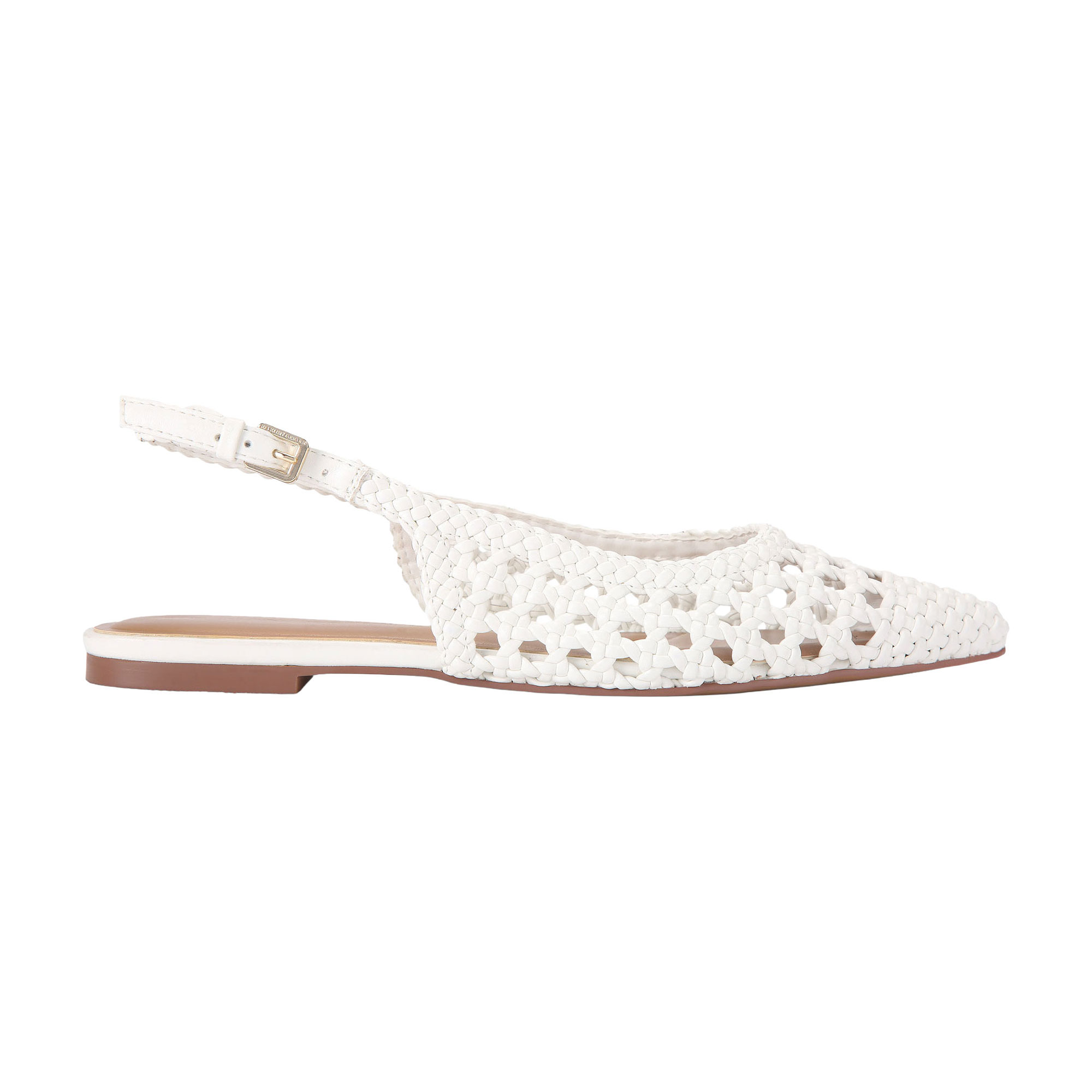 • Braided upper, pointed toe, ankle strap, gold buckle