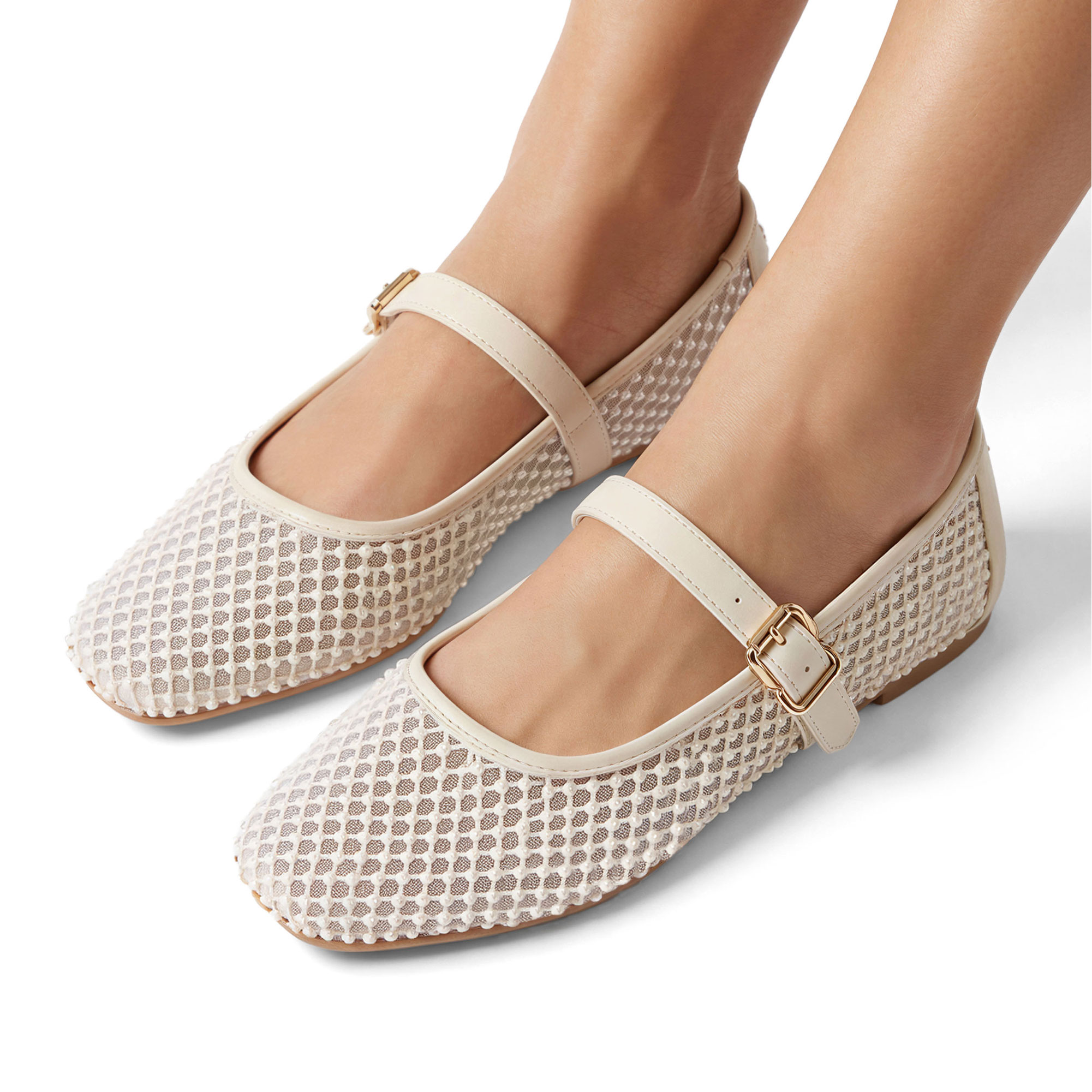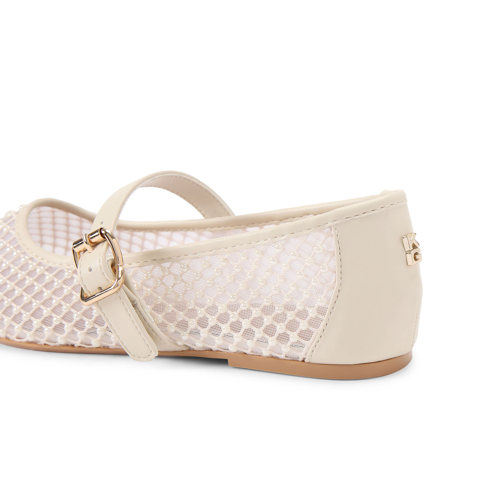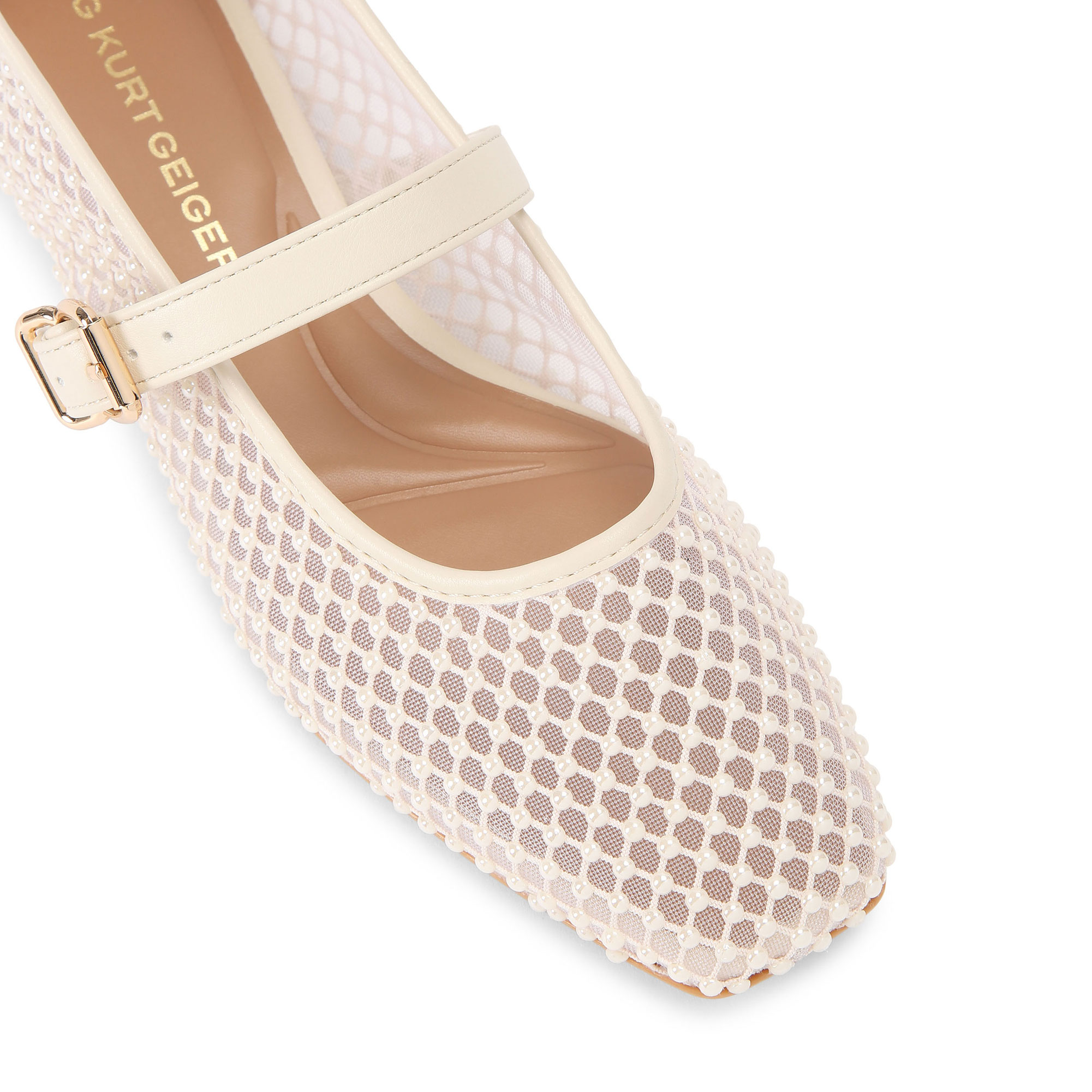 - Sheer mesh, faux pearl embellishment, gold buckle detail on foot strap
