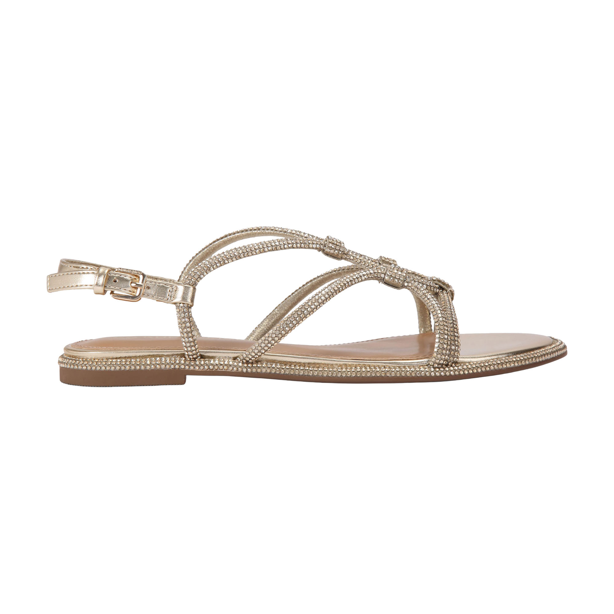• Crystal embellishment across upper, logo buckle on ankle strap