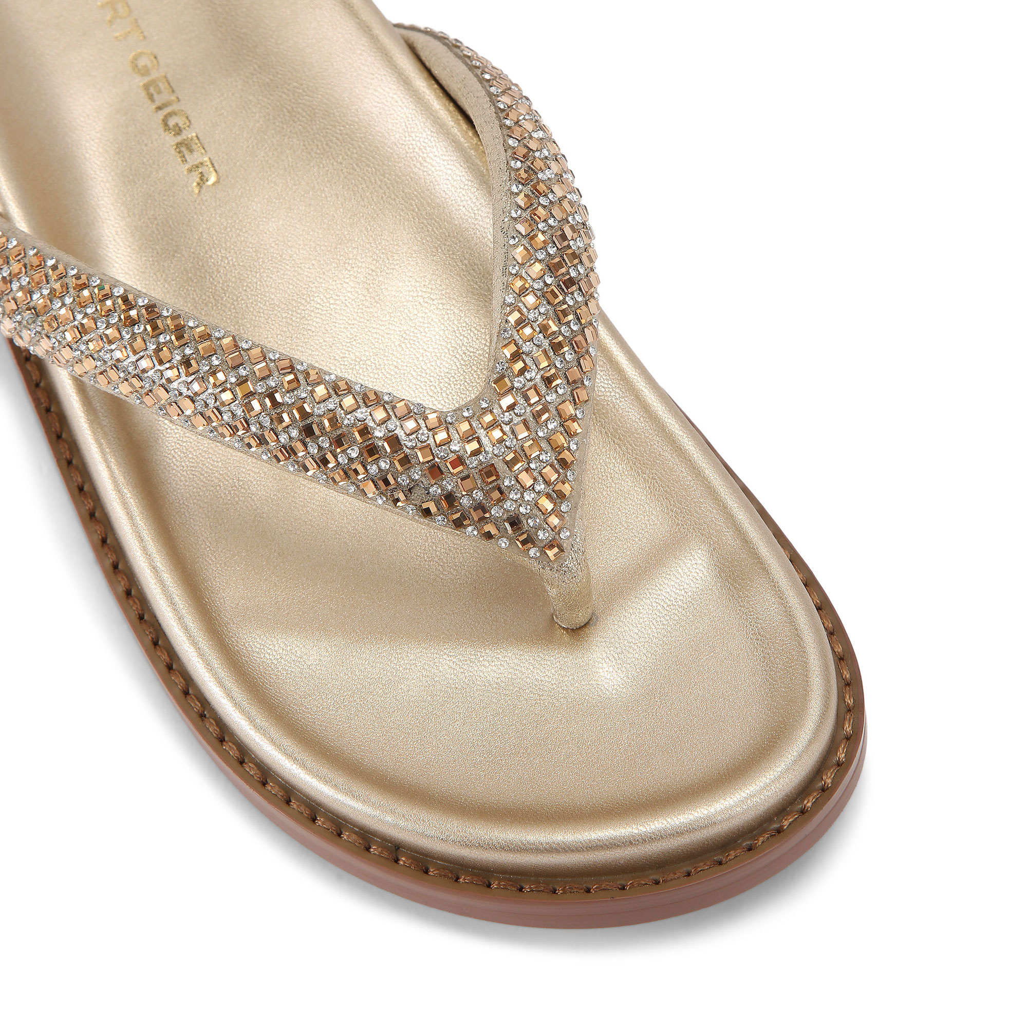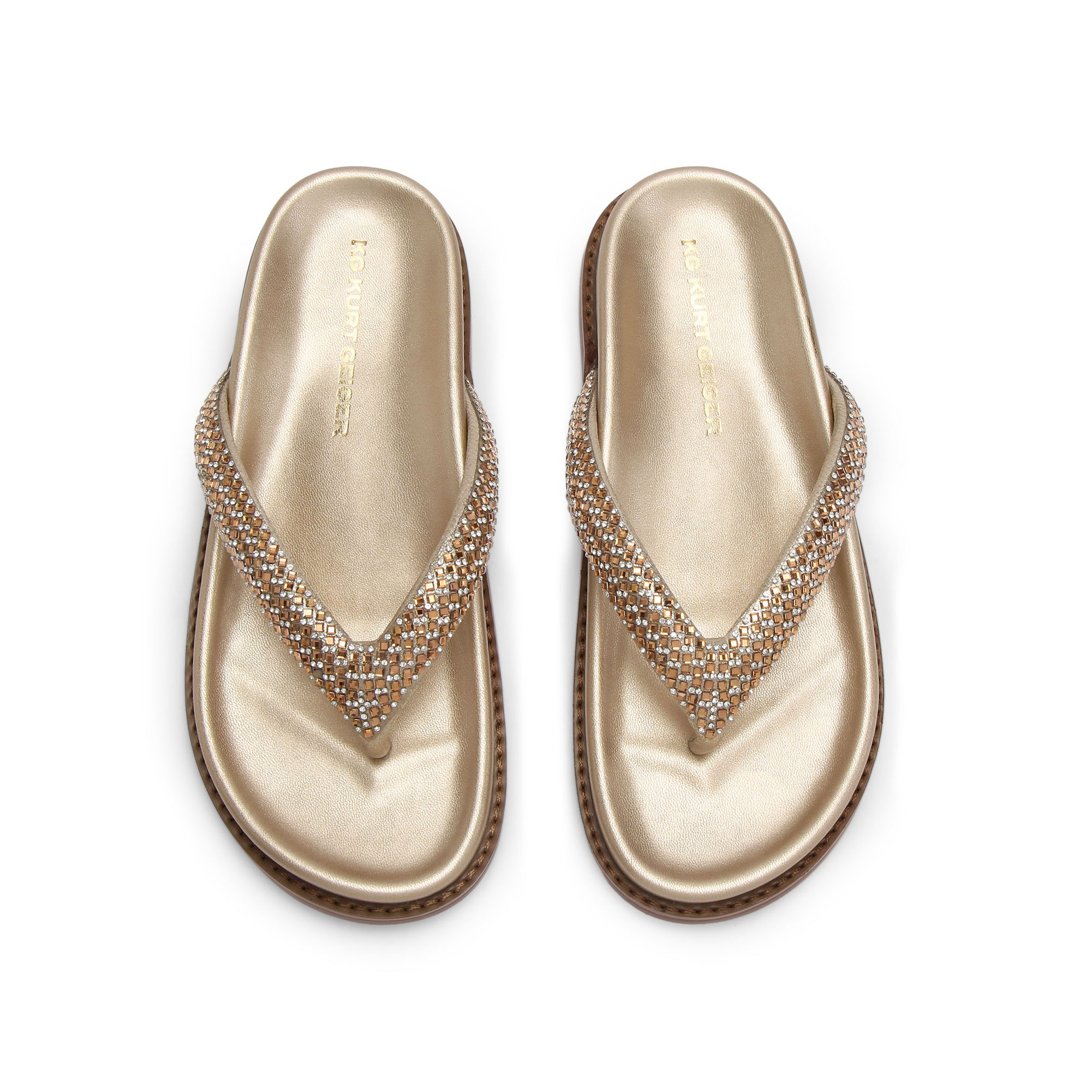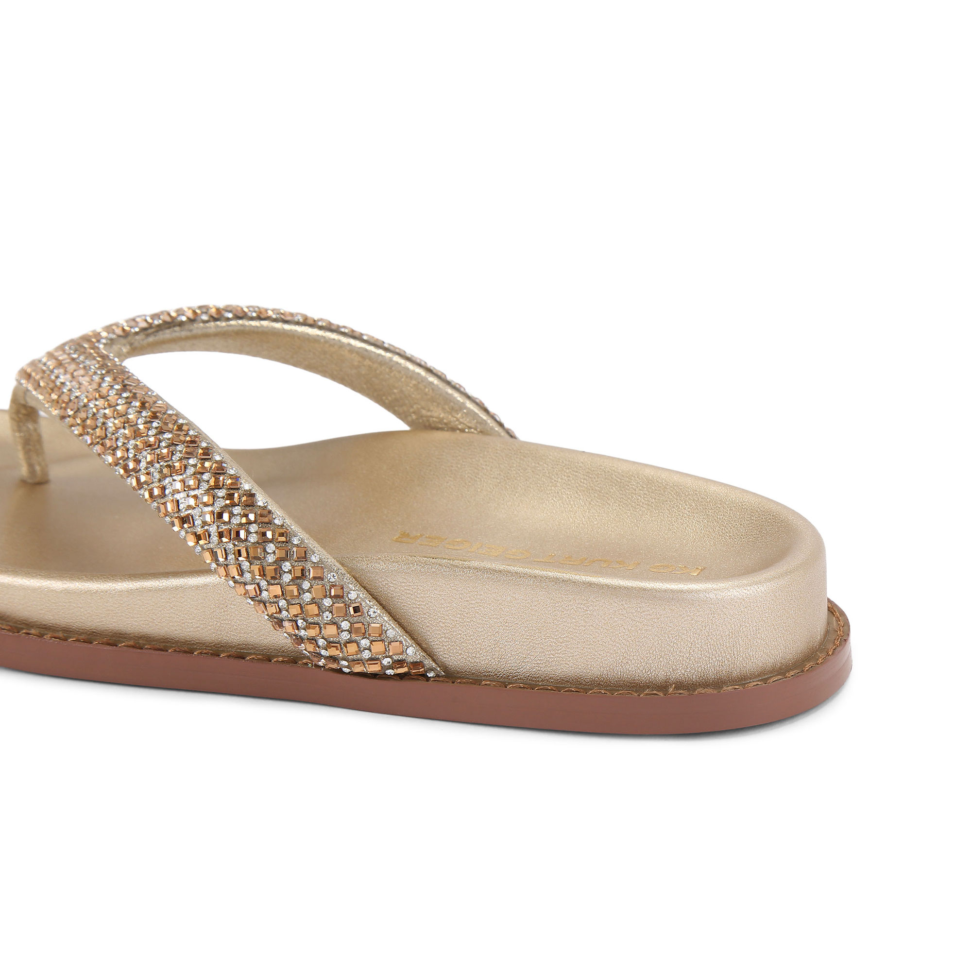 - Bronze crystal embellishment on toe post strap, moulded footbed