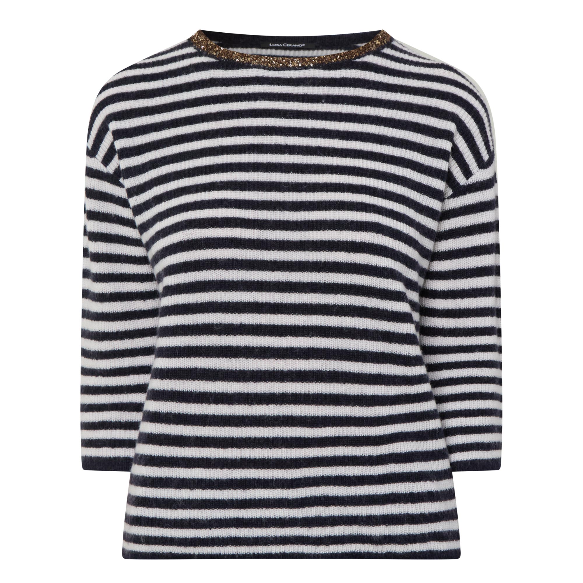 LUISA CERANO Embellished Striped Knitted Sweater