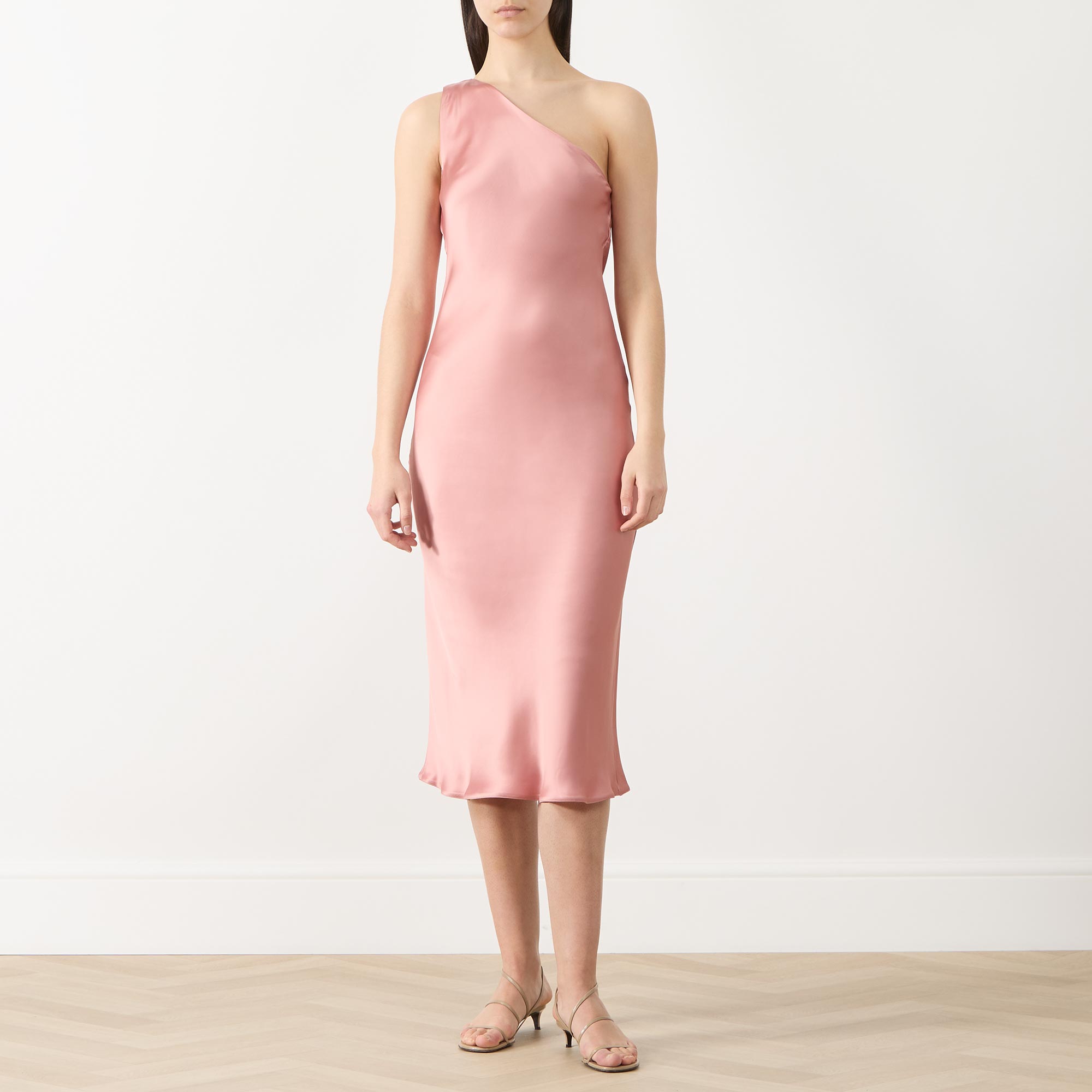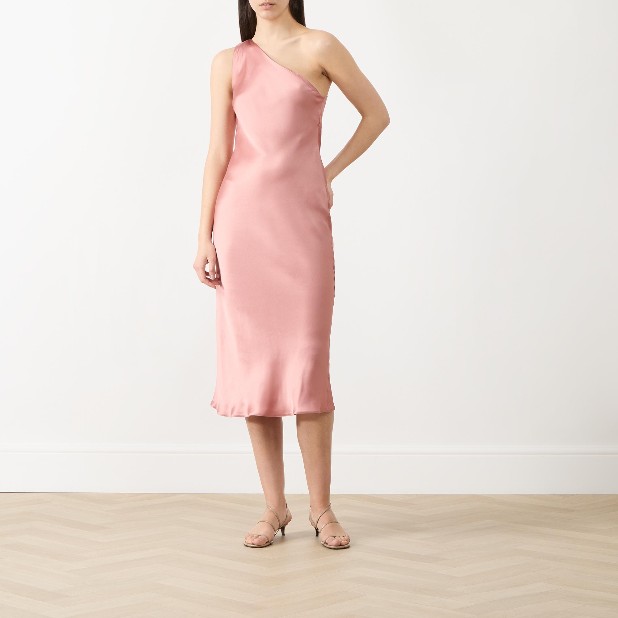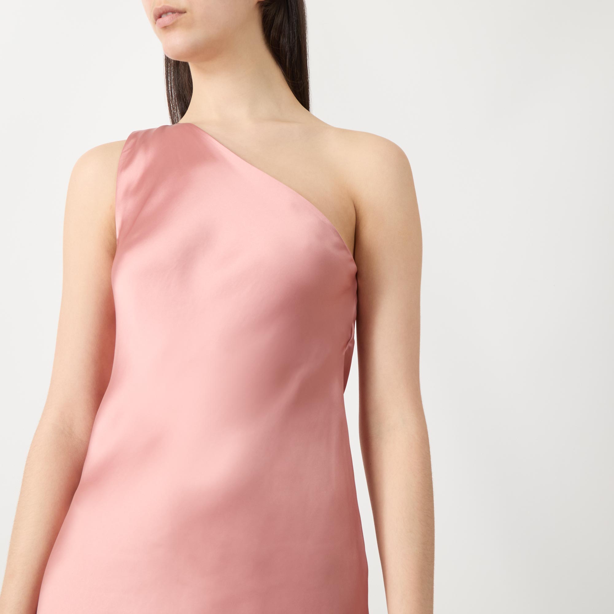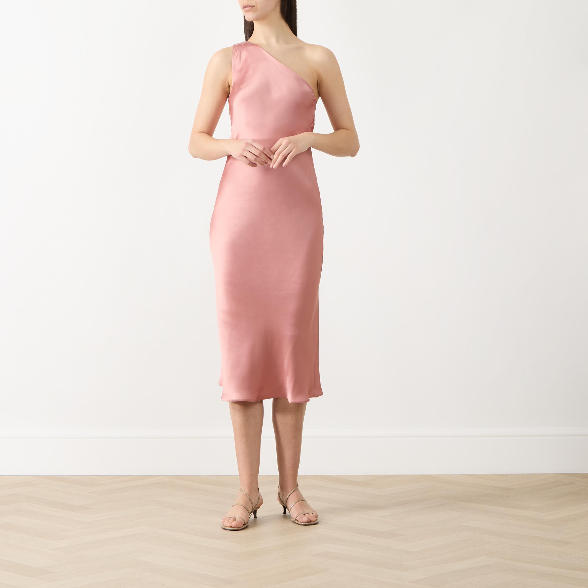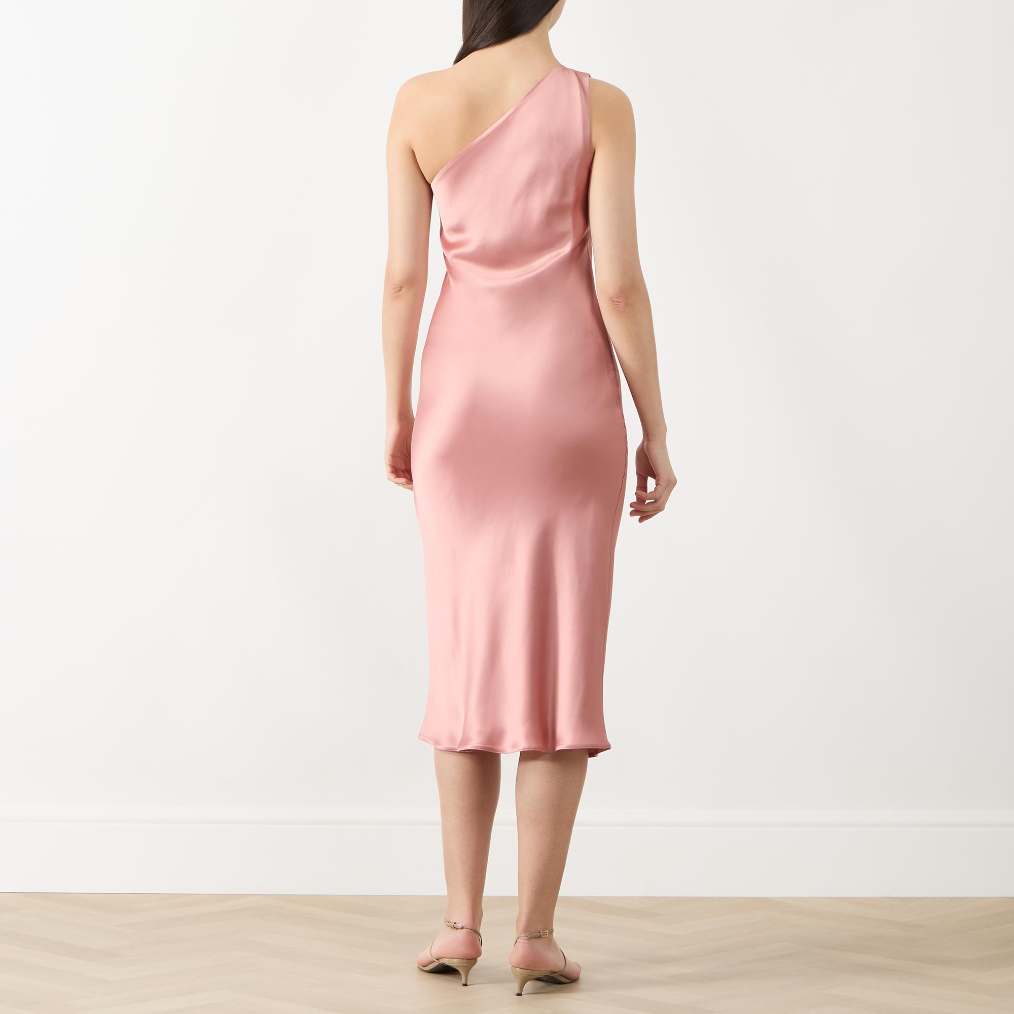 • Asymmetric neckline, one-shoulder style, midi length, fluid fabric