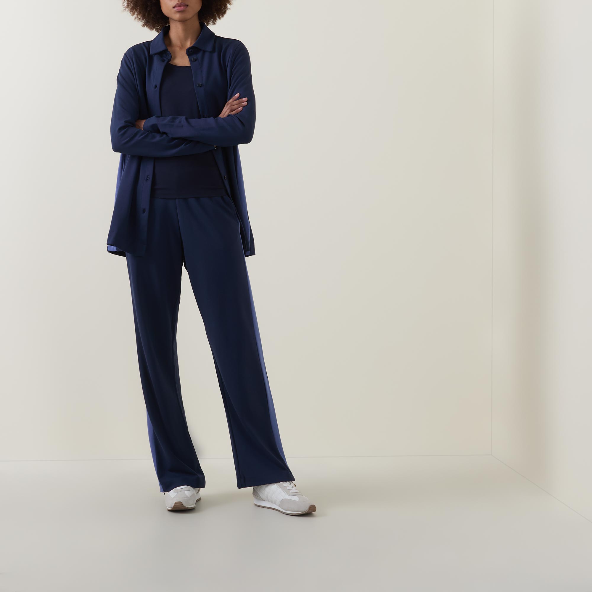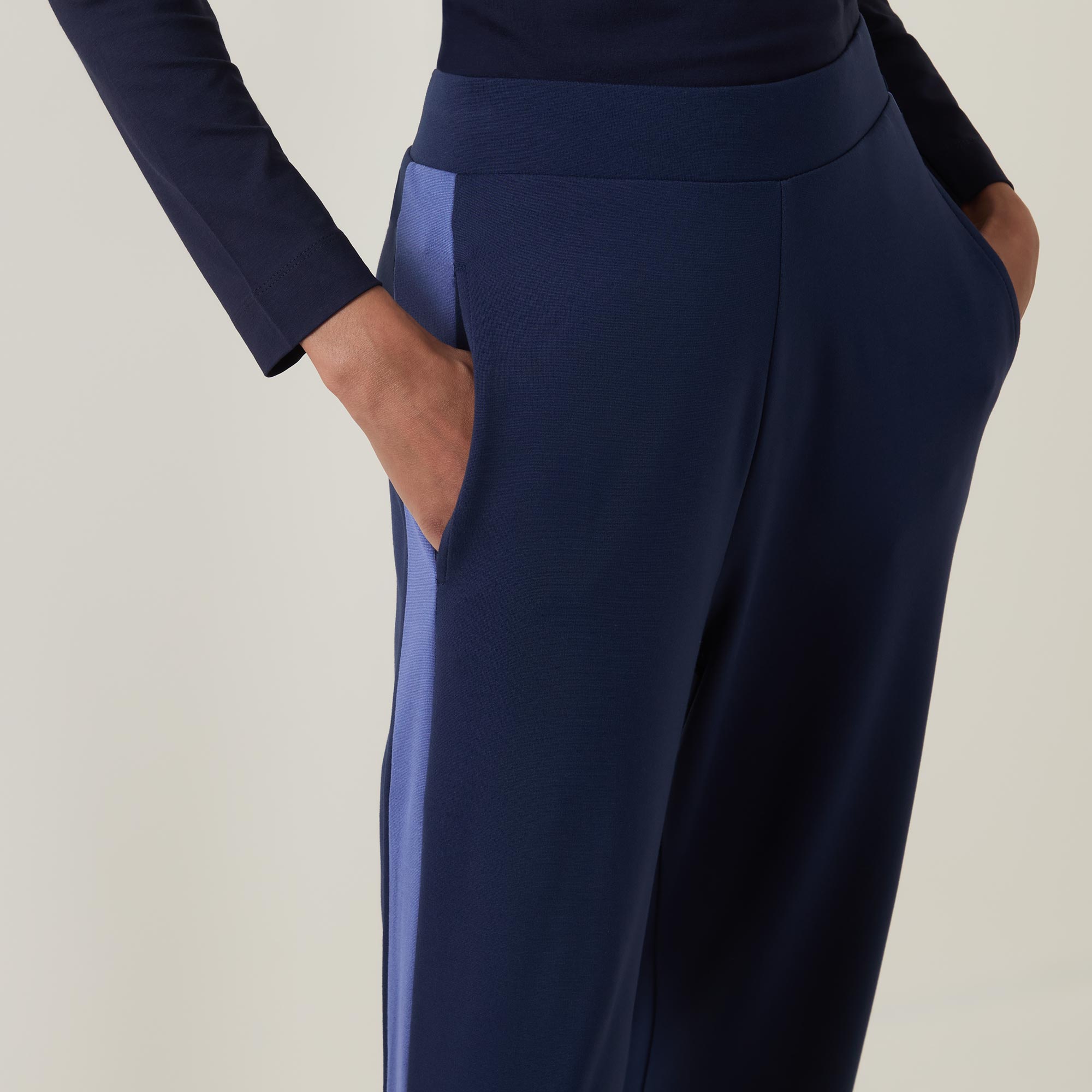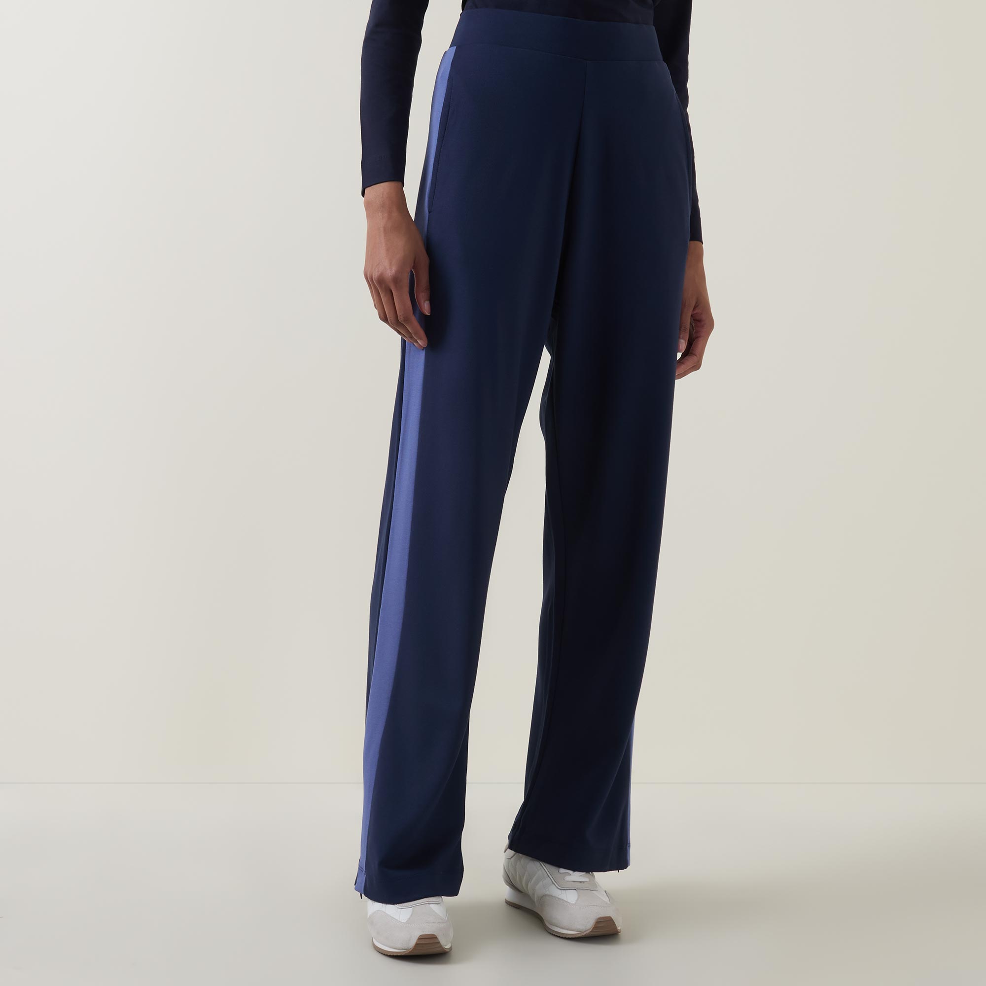 - Wide waistband, two side in-seam pockets, side stripe detailing, straight-cut leg, smooth fabric