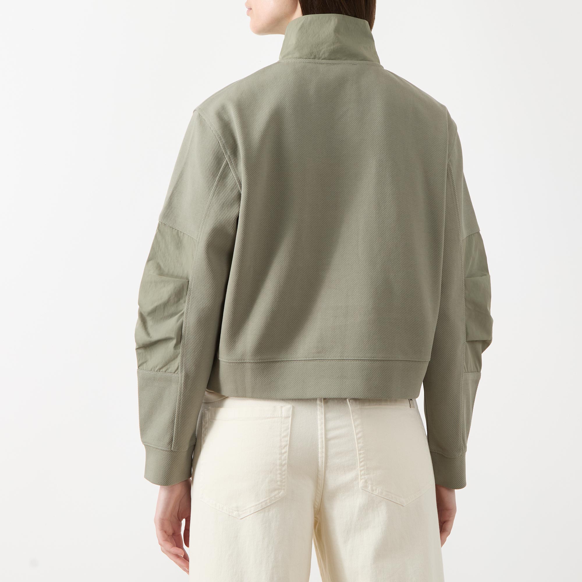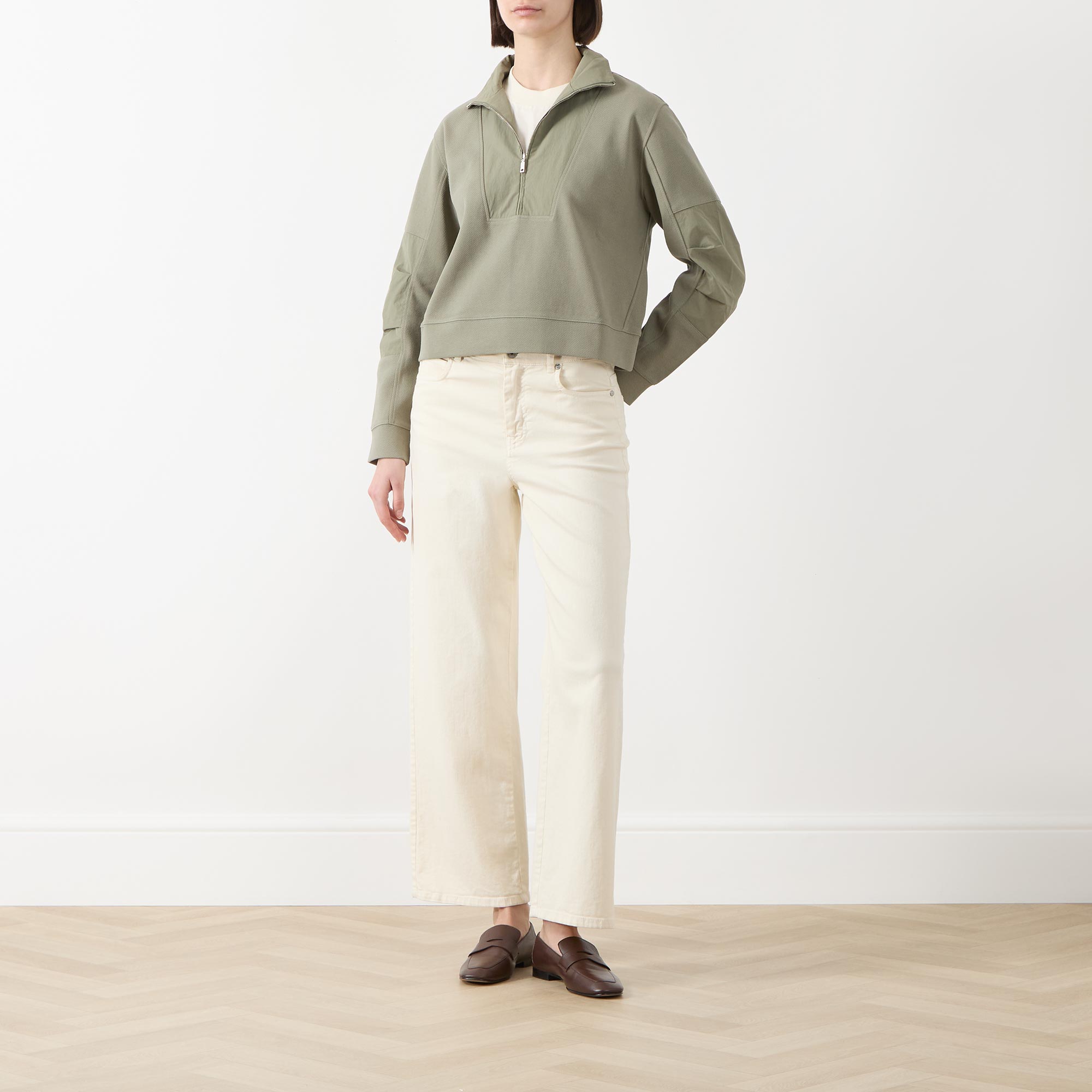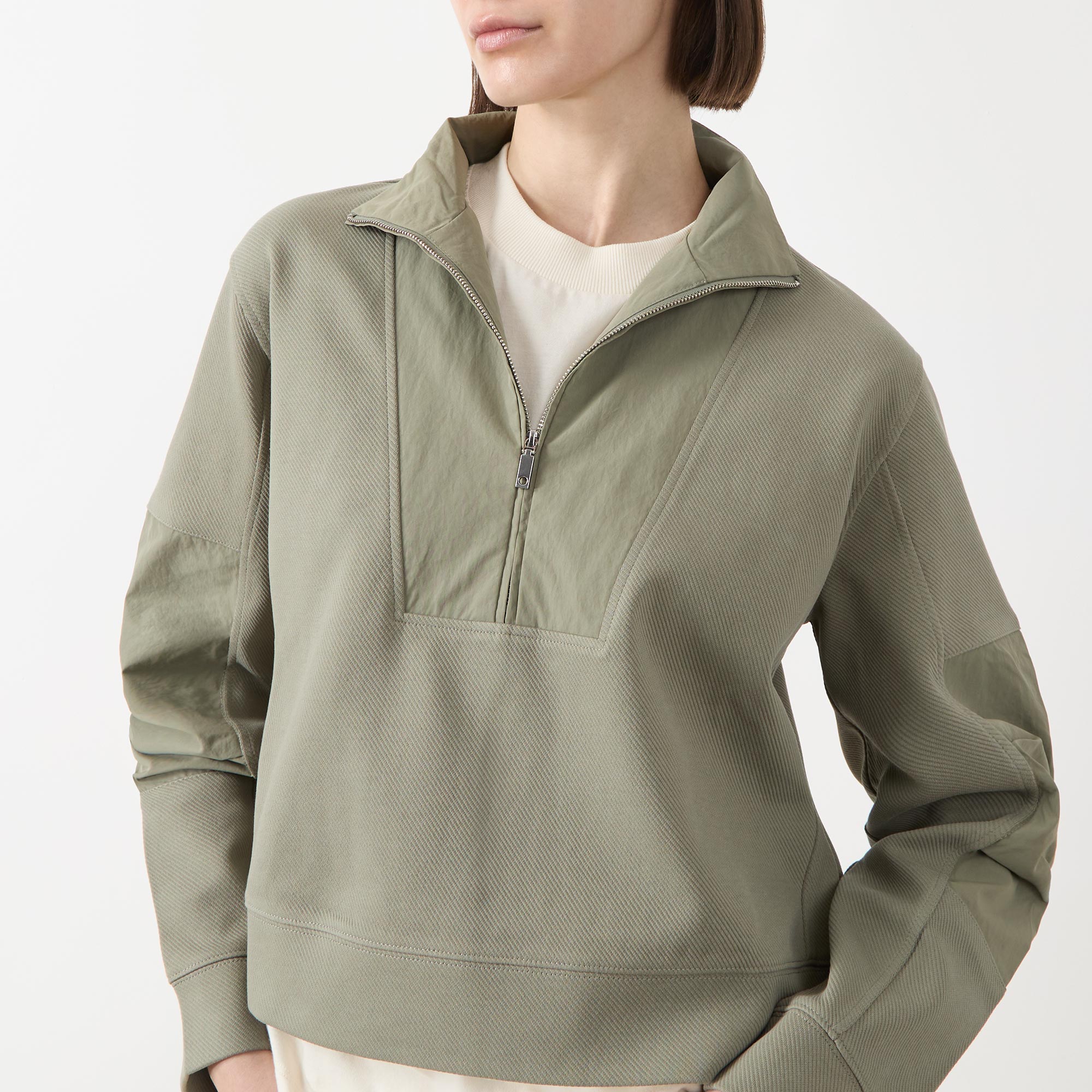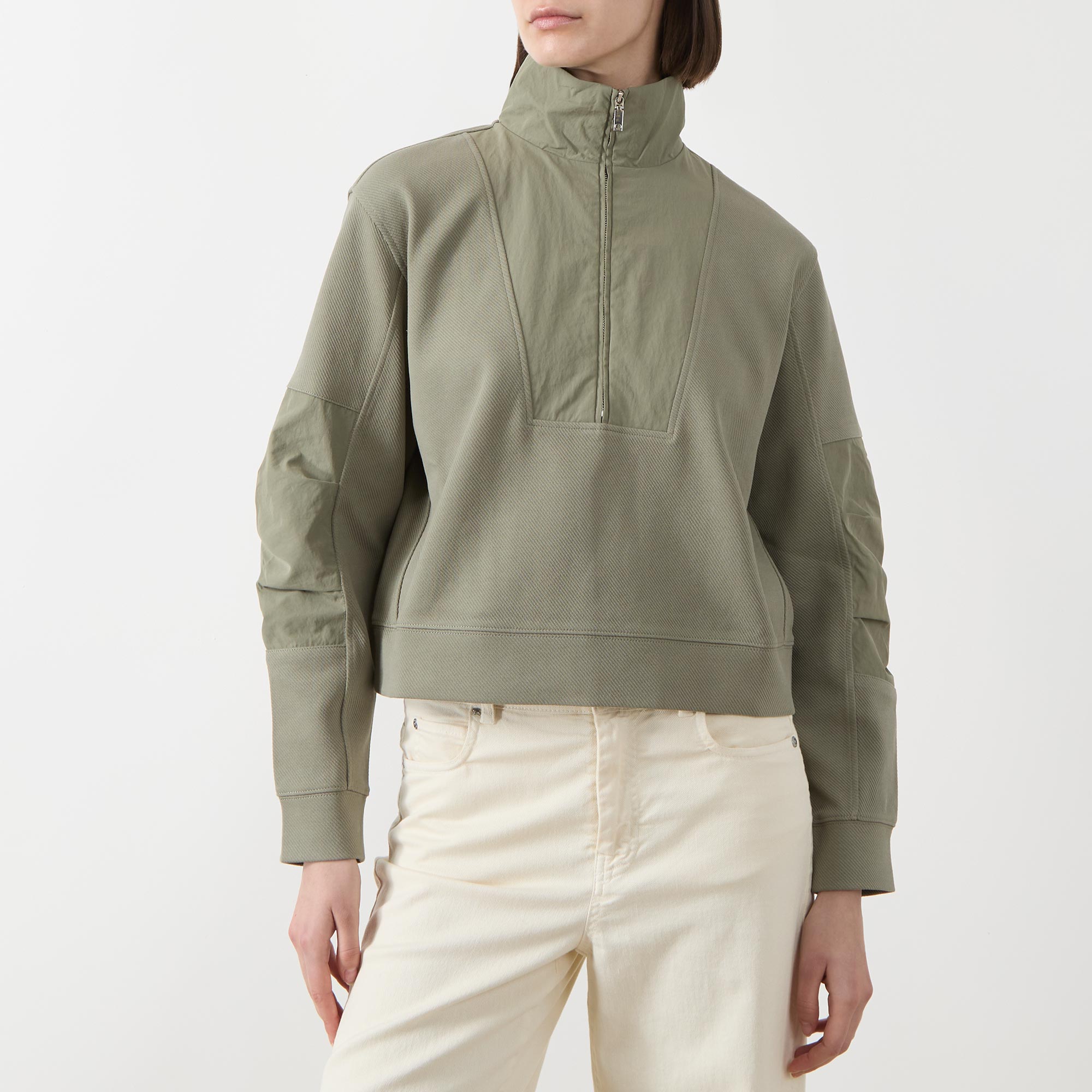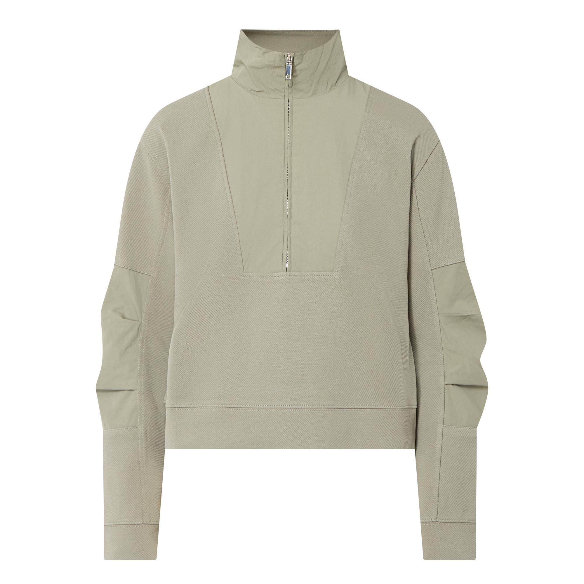 • Funnel neckline, long sleeves, half-zip fastening, ribbed trims, straight hemline