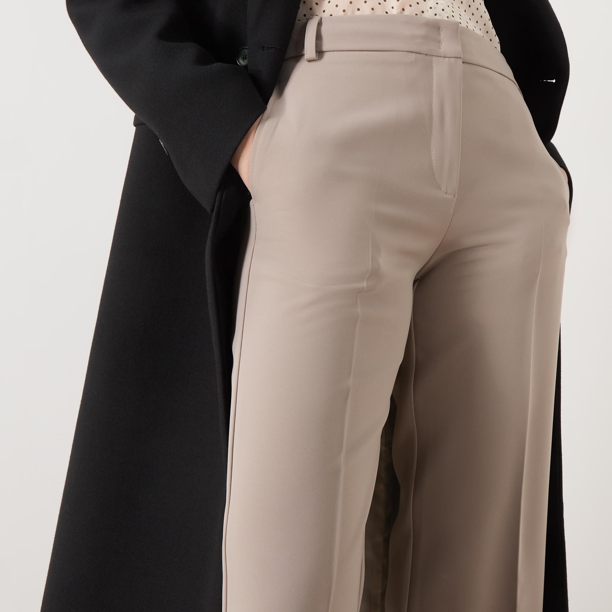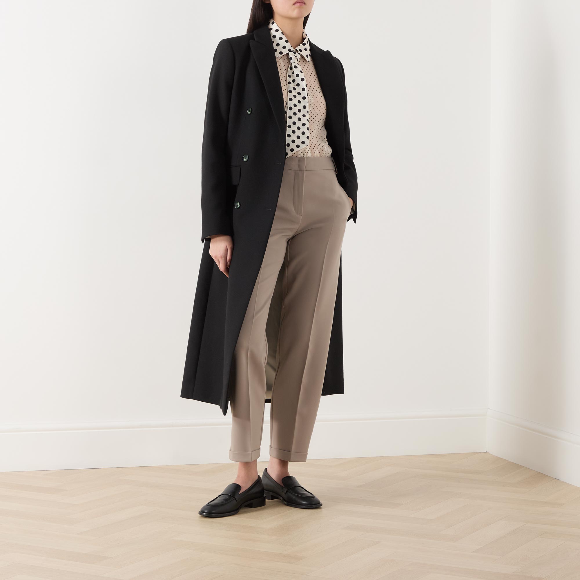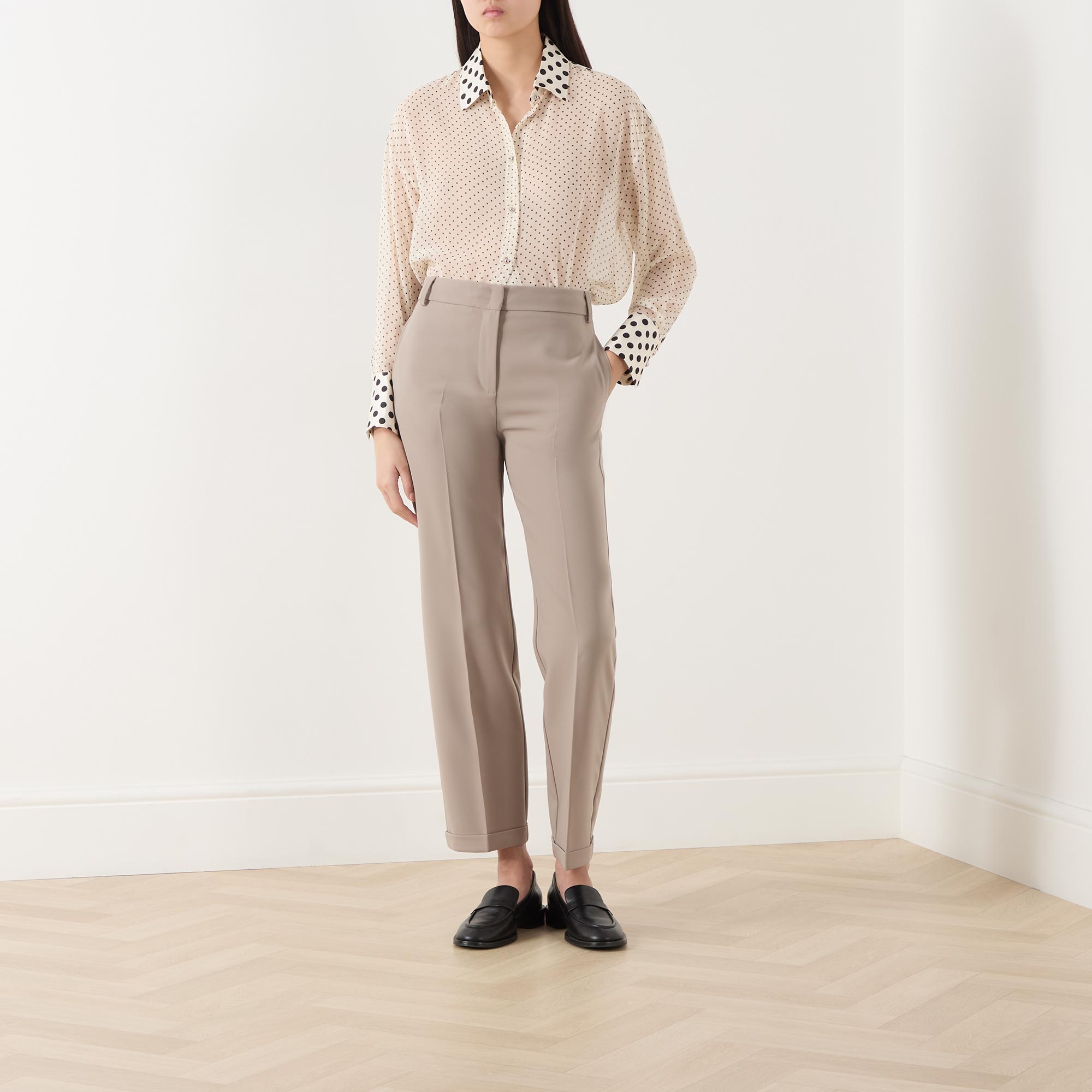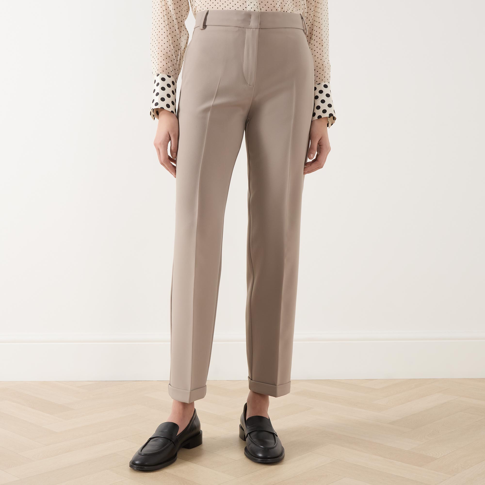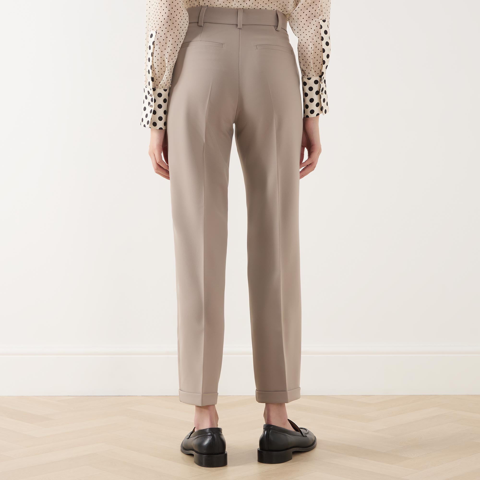 • Concealed zip-fly and hook-and-bar fastening, belt loops, four-pocket design, pressed creases, turned-up cuff, smooth fabric
