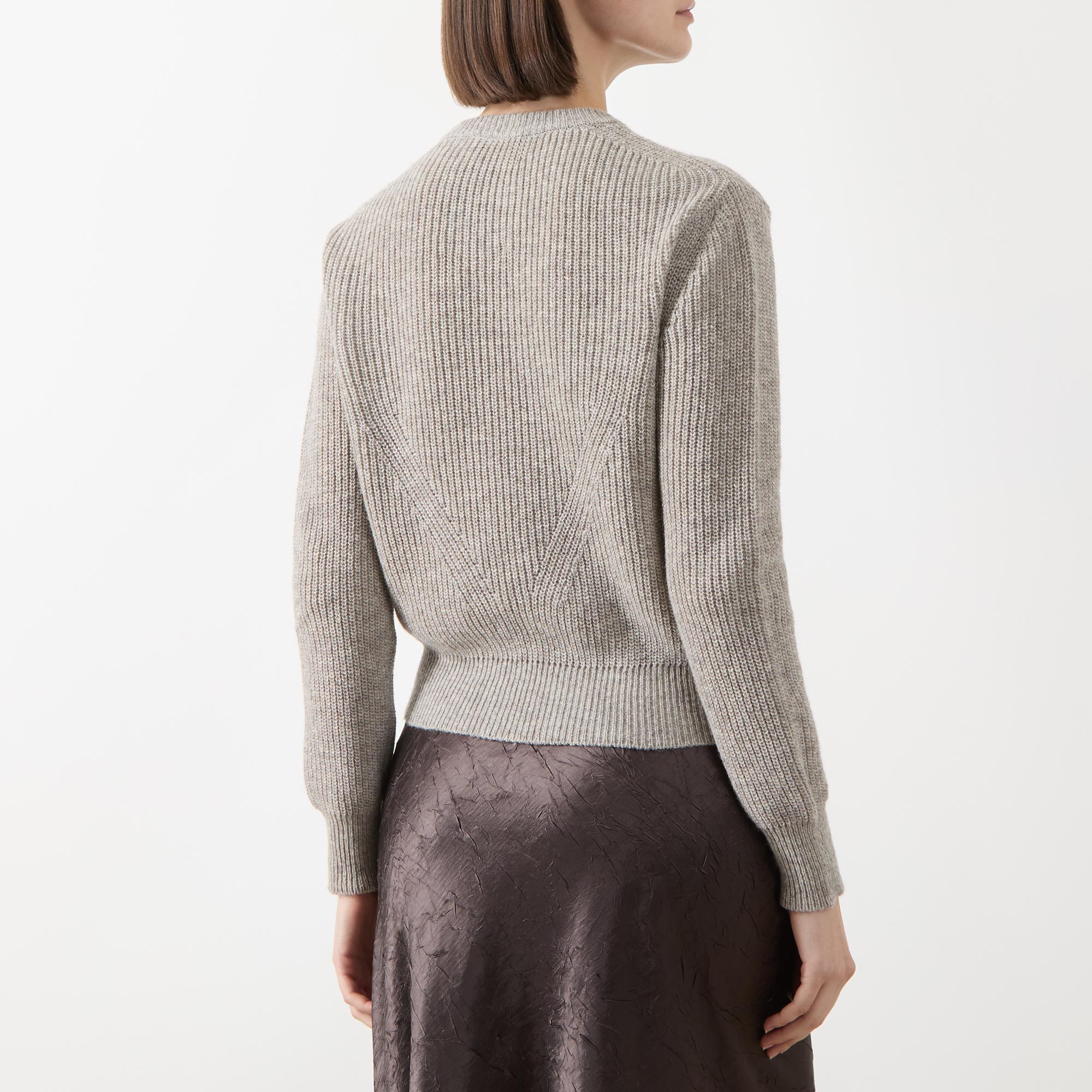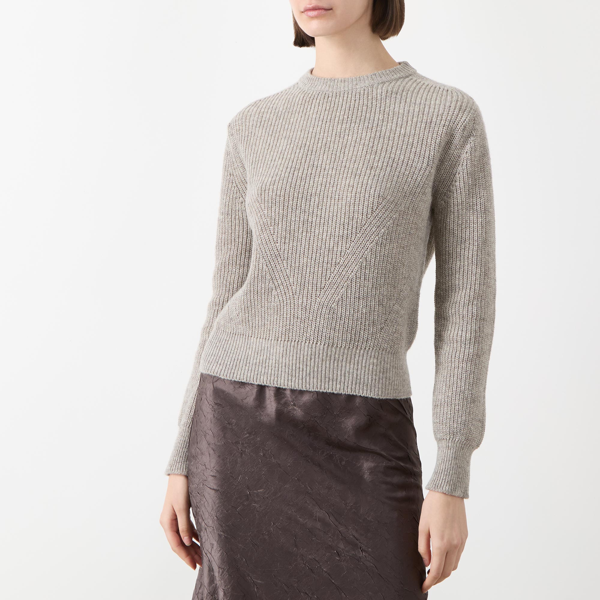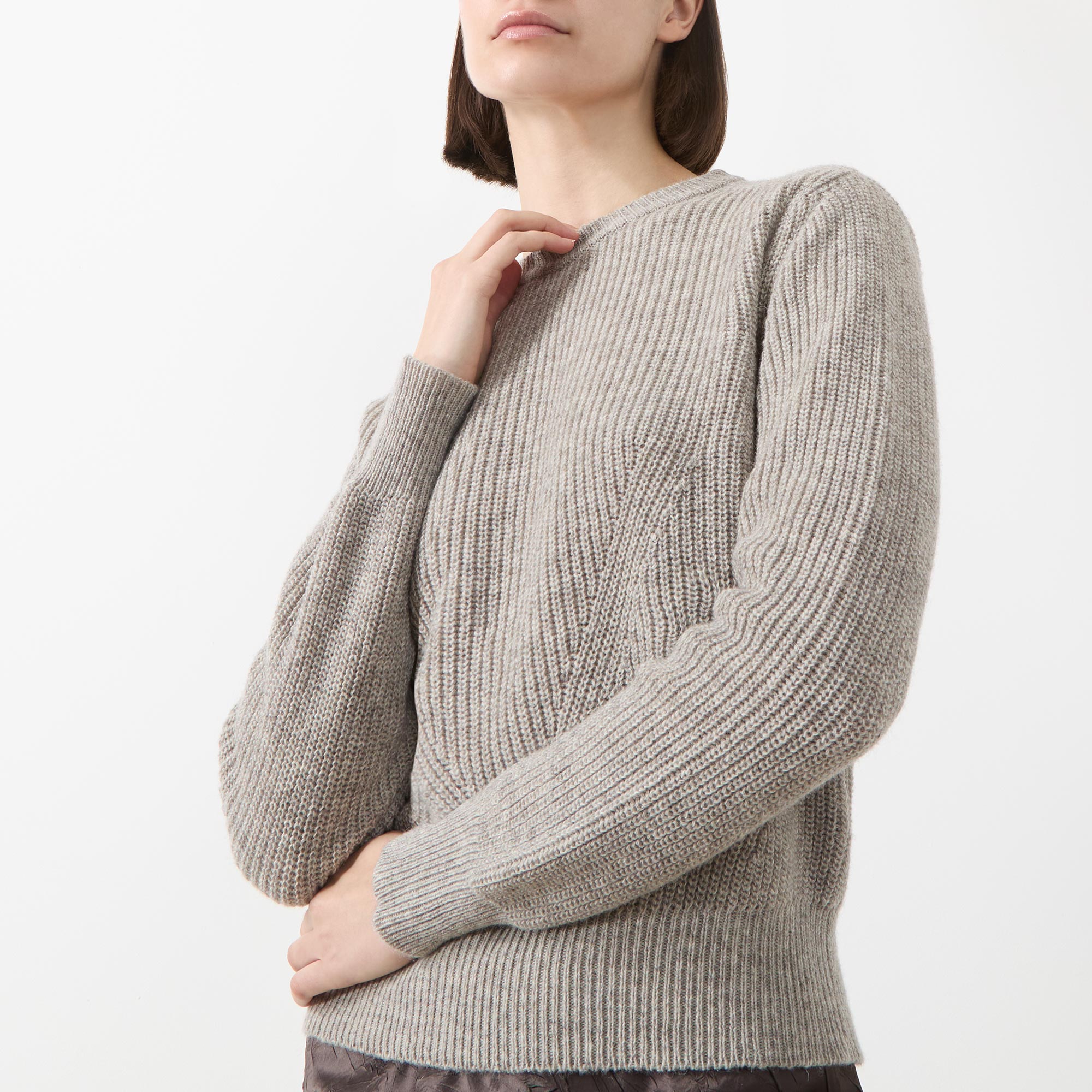 - Crew neckline, fisherman knit, long sleeves, ribbed trims