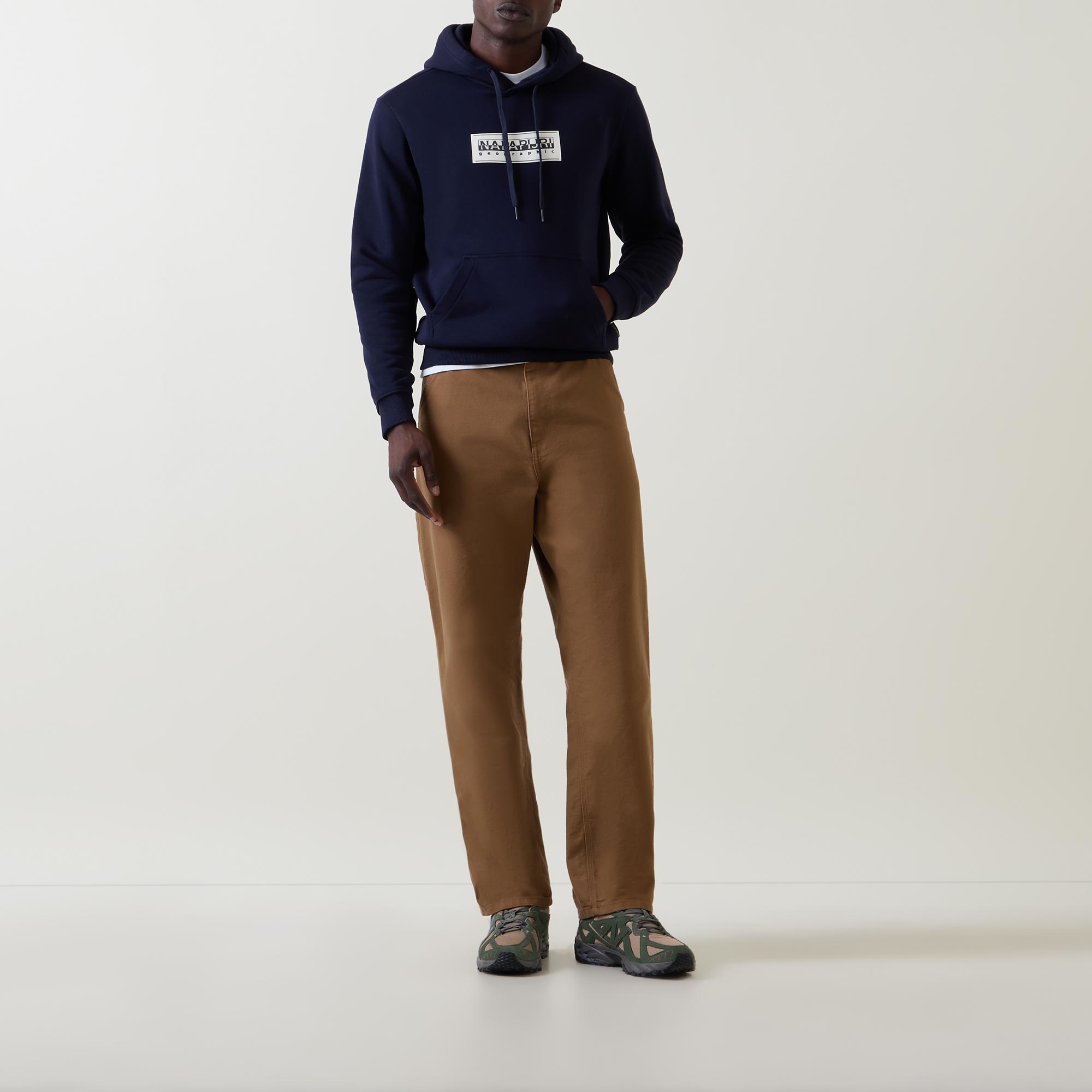 - Hood with adjustable drawstring fastening, dropped shoulders, long sleeves, kangaroo pocket, straight hem, ribbed trims, box logo detail across the chest