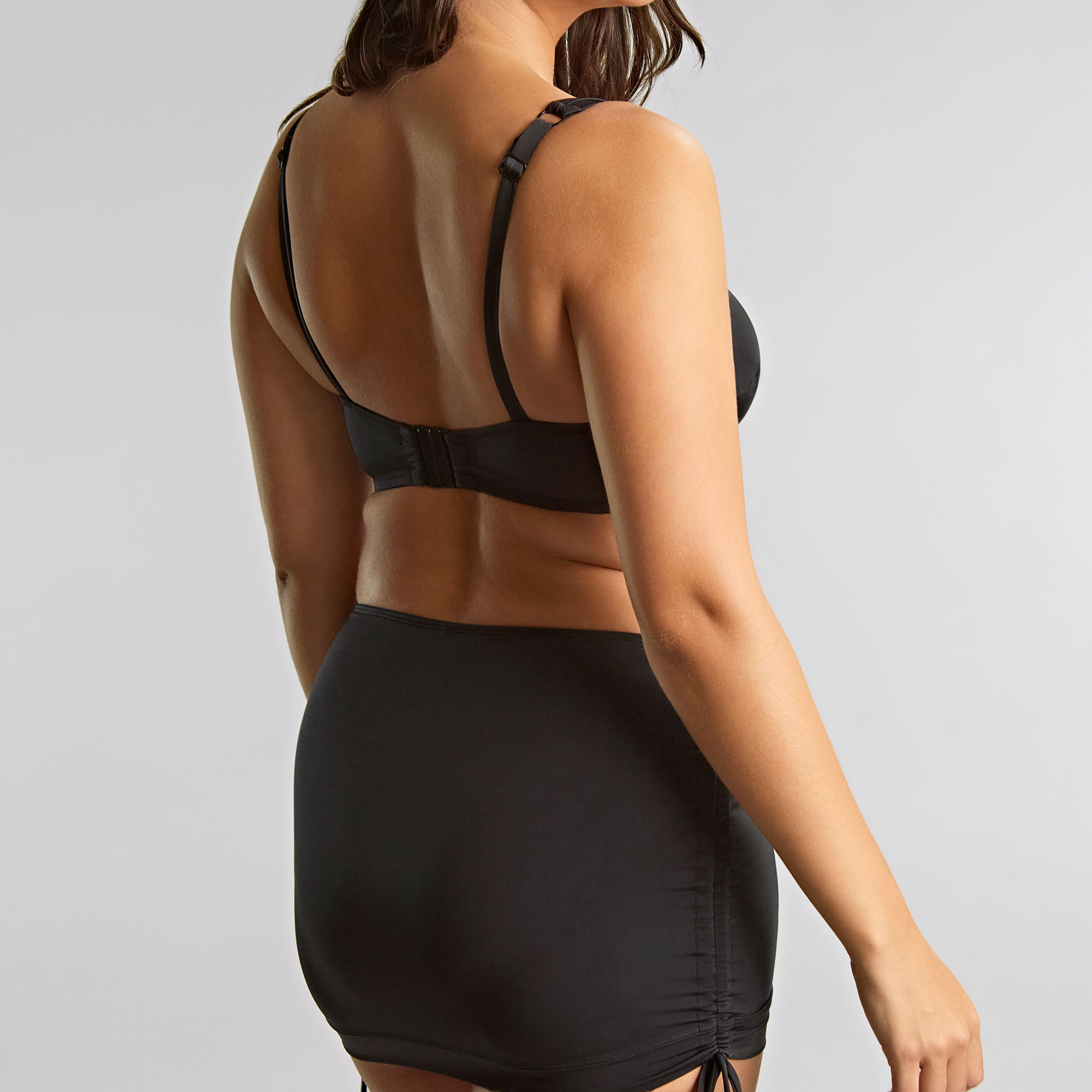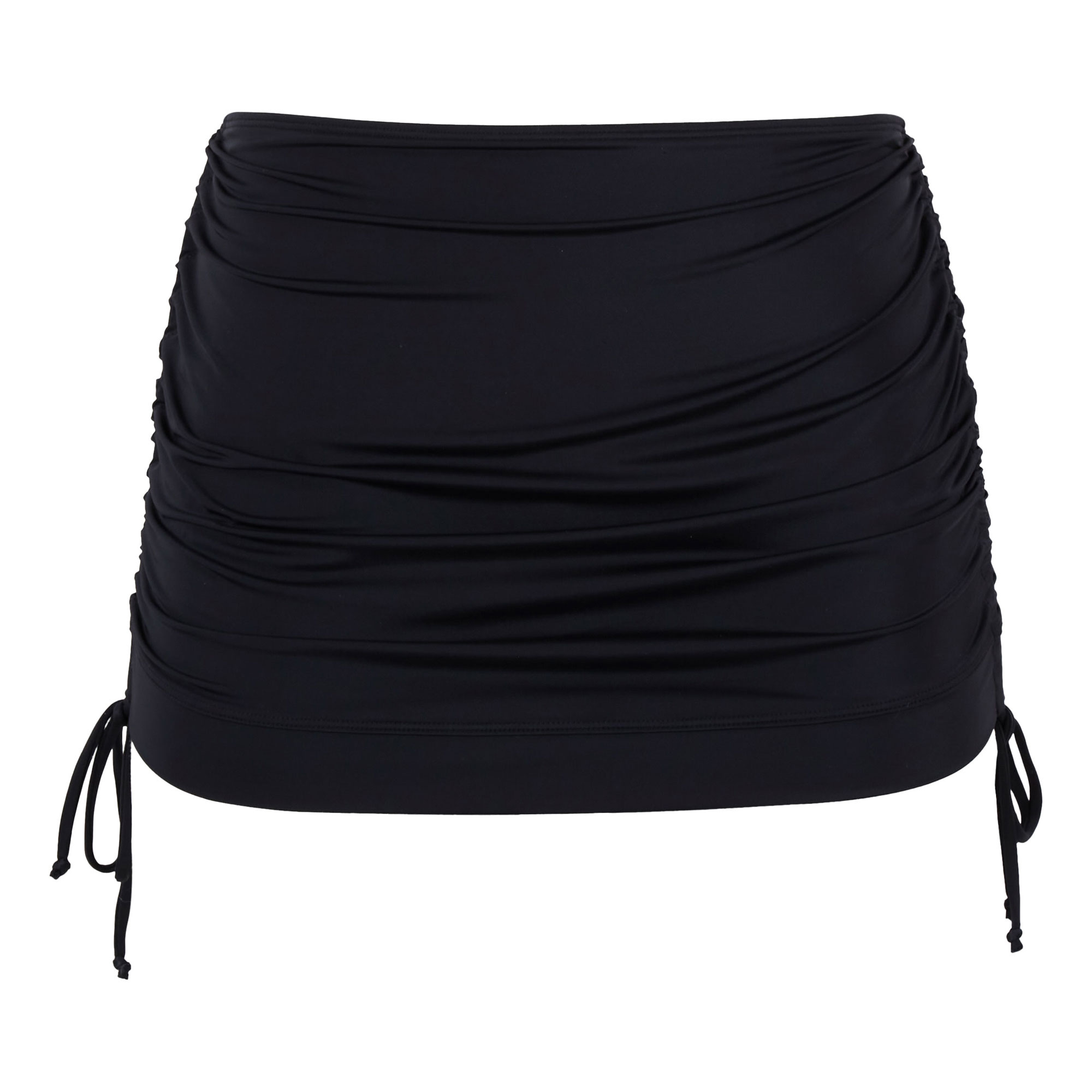 - Adjustable drawstring side ties, inner bikini briefs, skirt silhouette