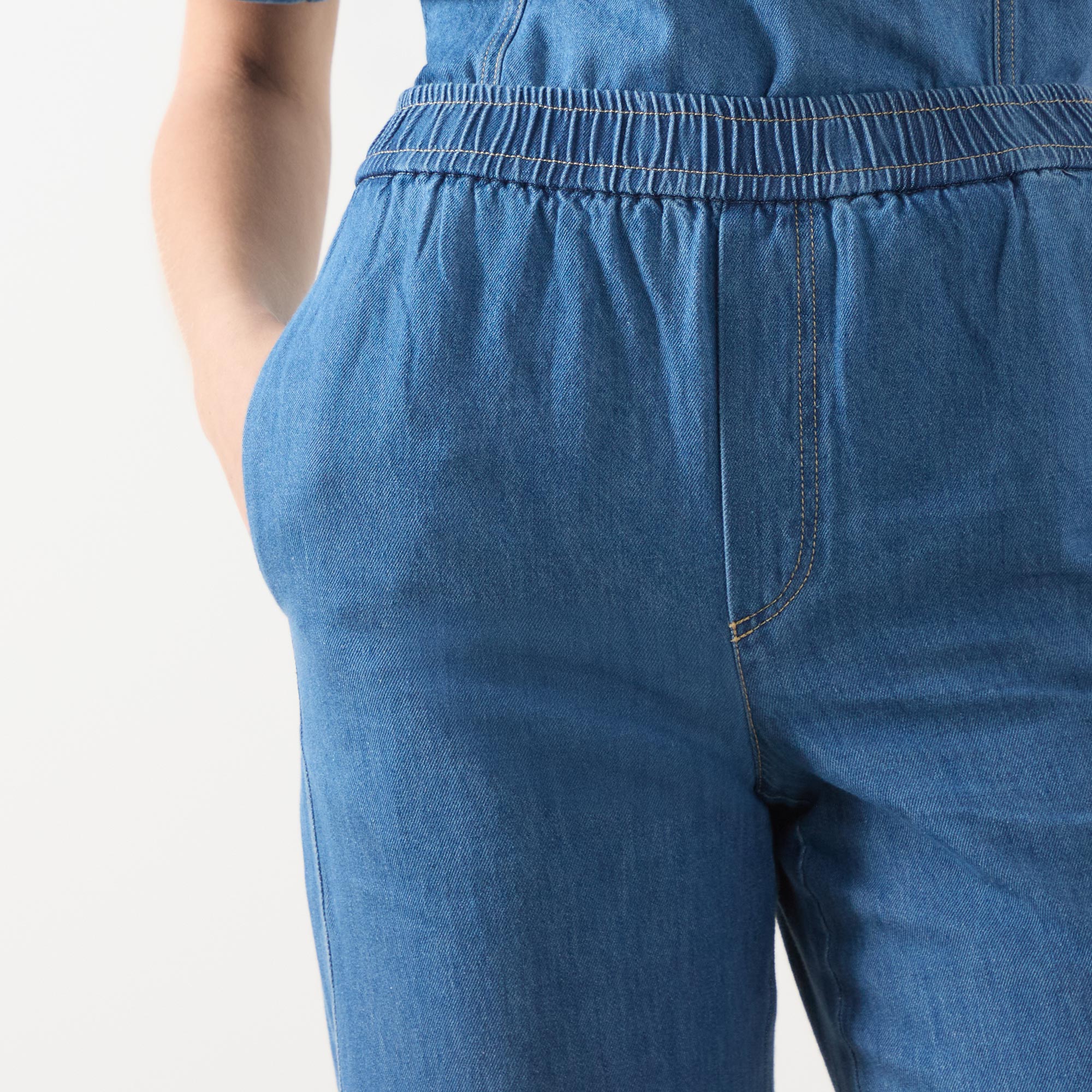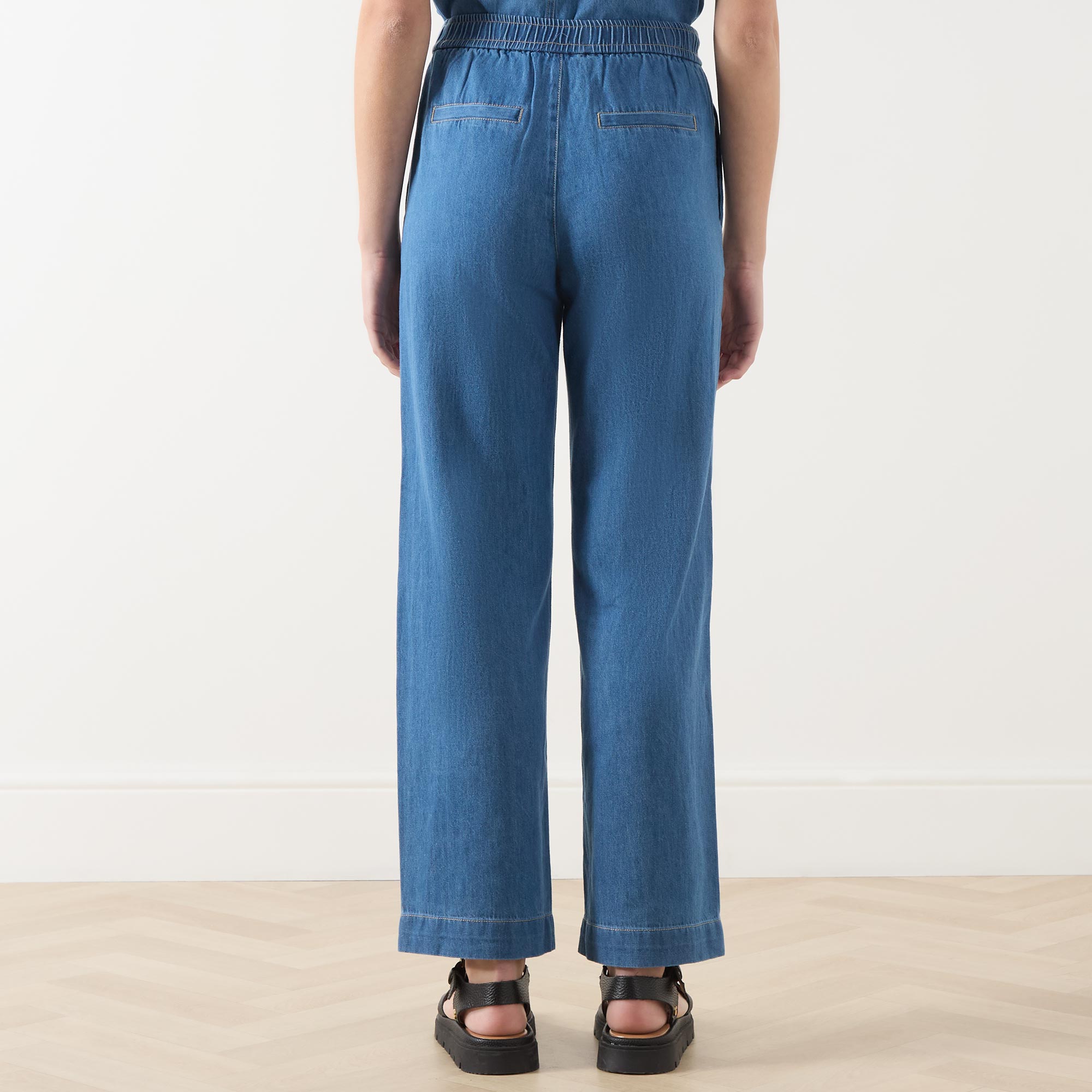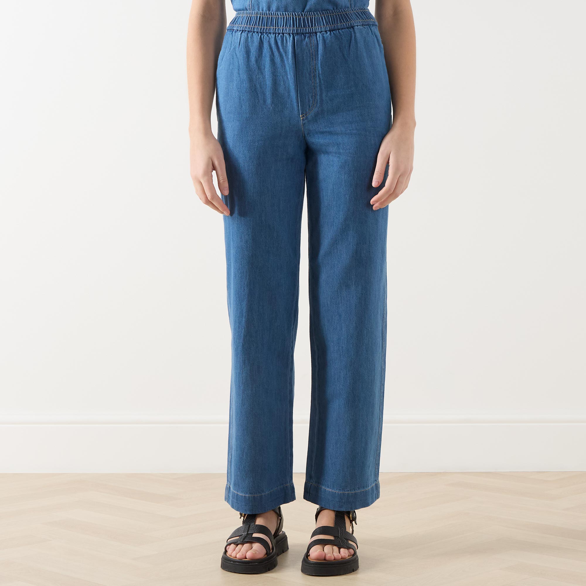 - Pull-on style, elasticated waistband, wide-cut legs, side entry pockets, rear jet pockets