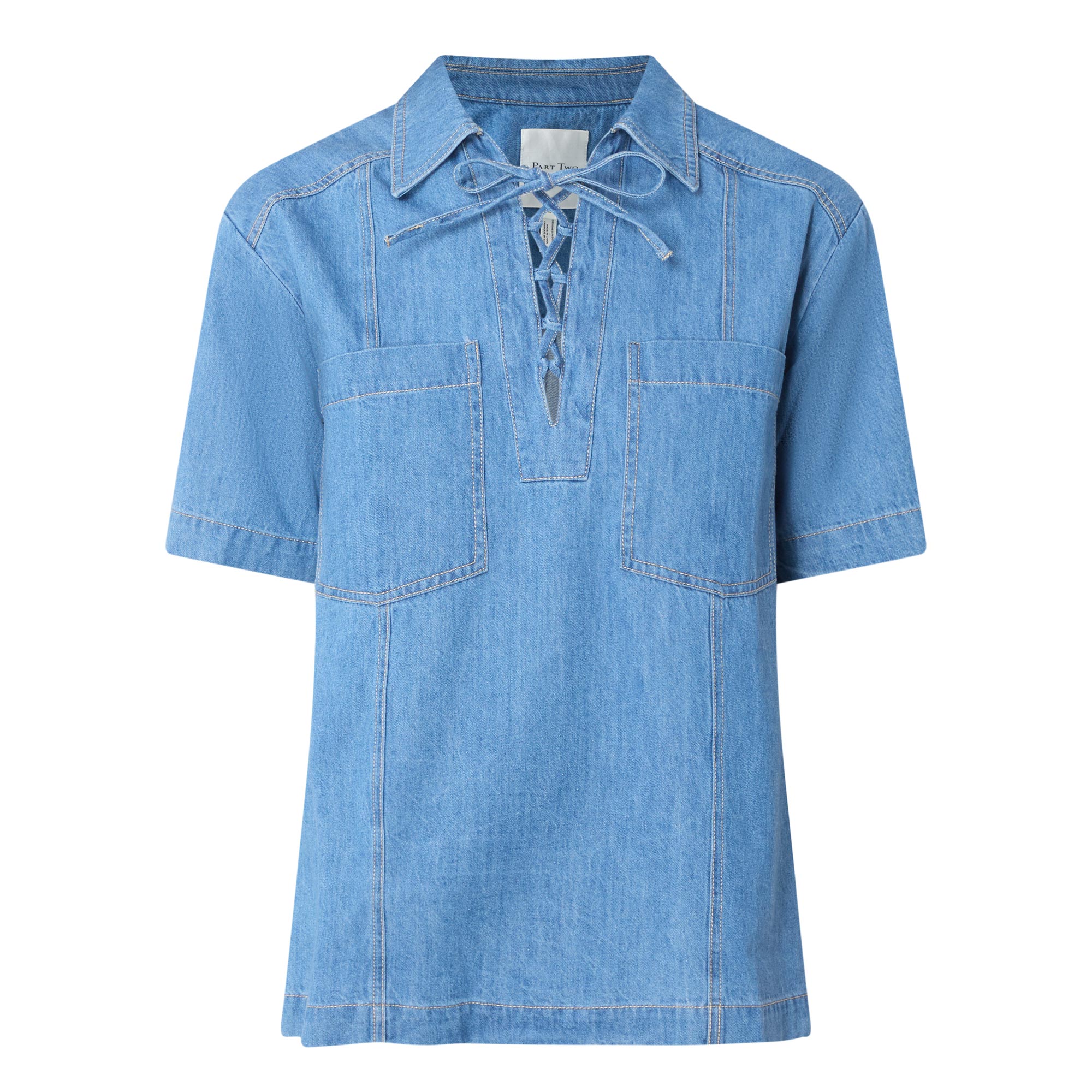 PART TWO Amela Lace Up Denim Top