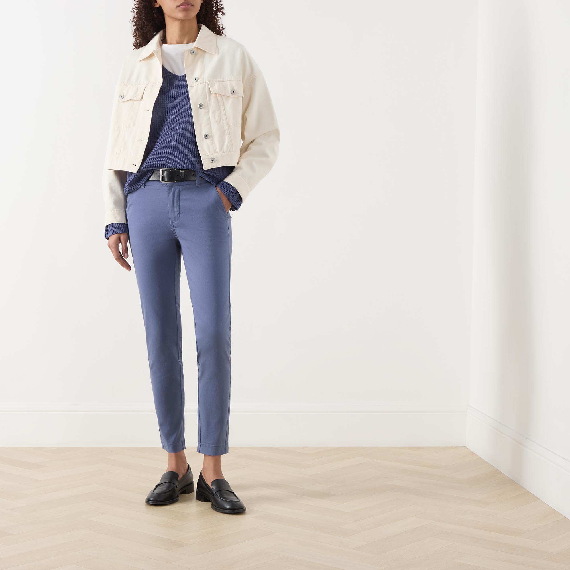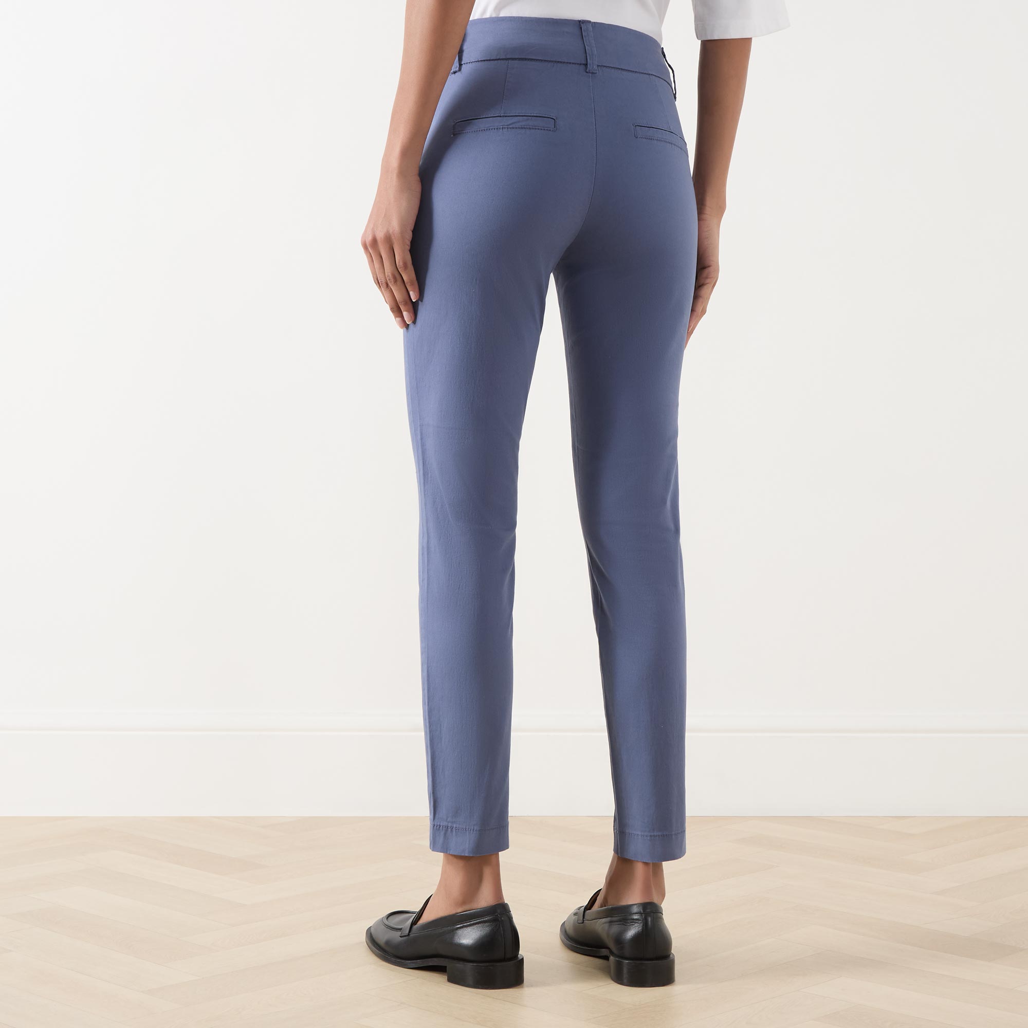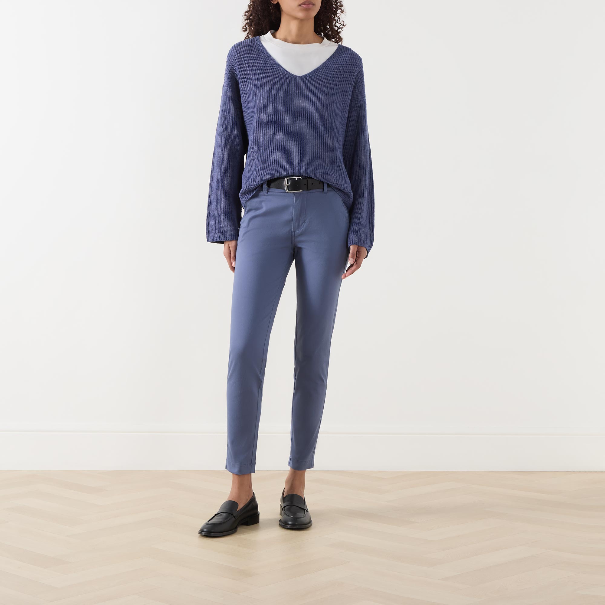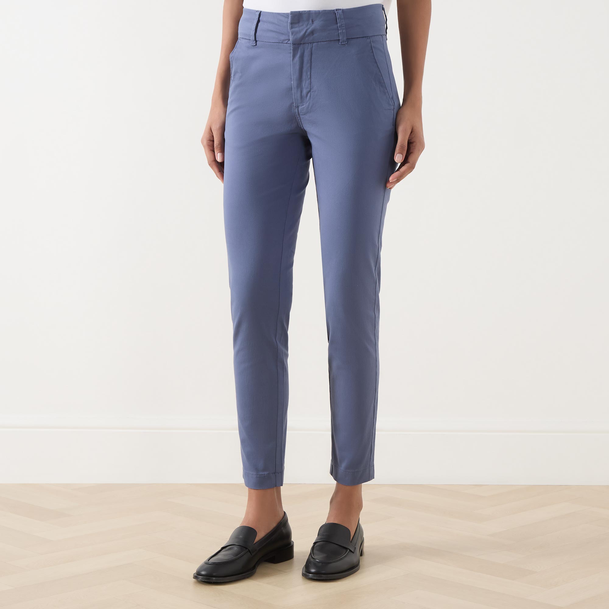 - High-rise, slim leg, belt loops, concealed zip fly with button fastening, two side entry pockets, two rear welt pockets, clean hems