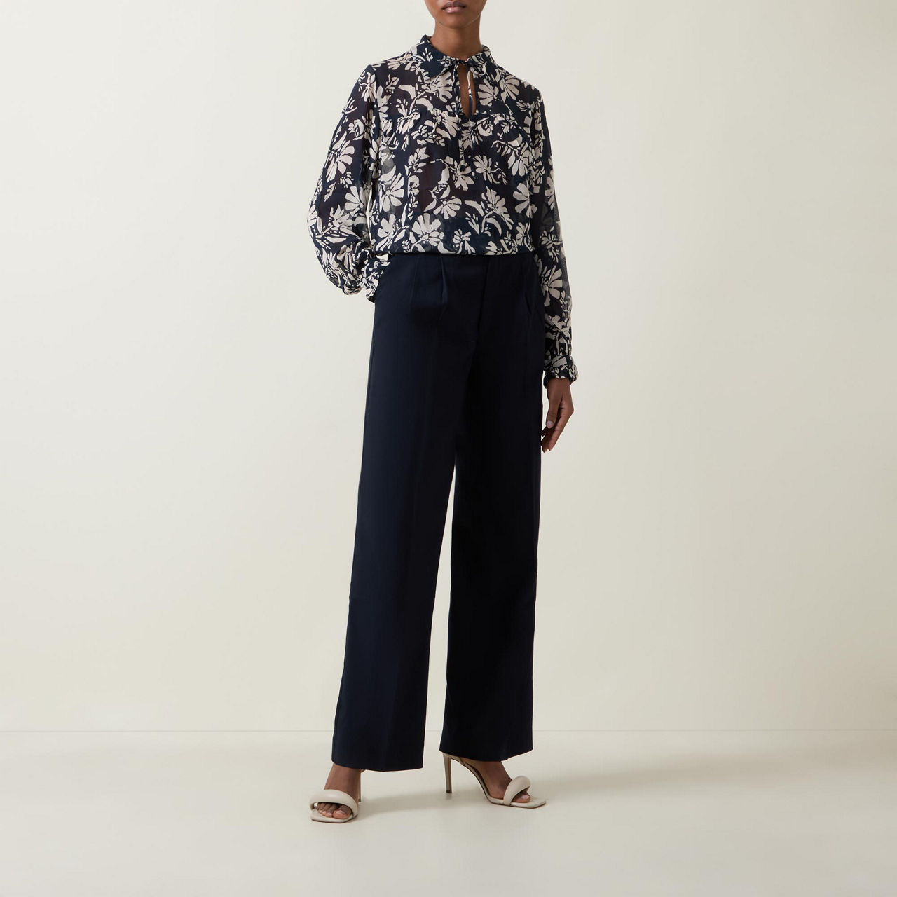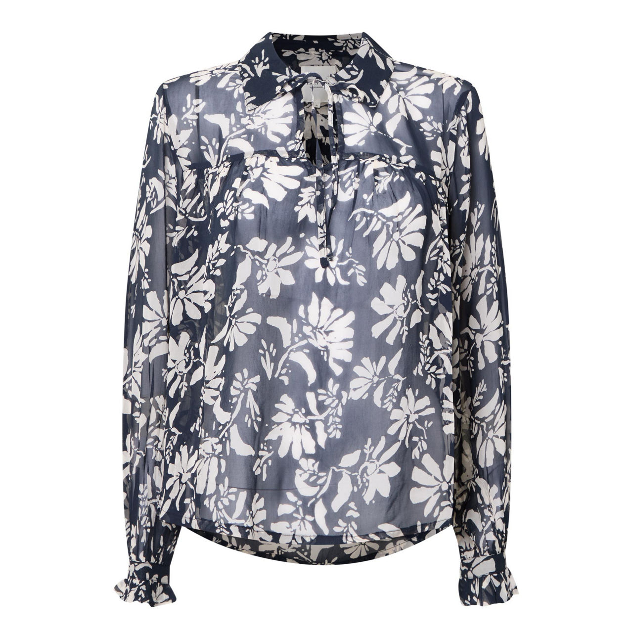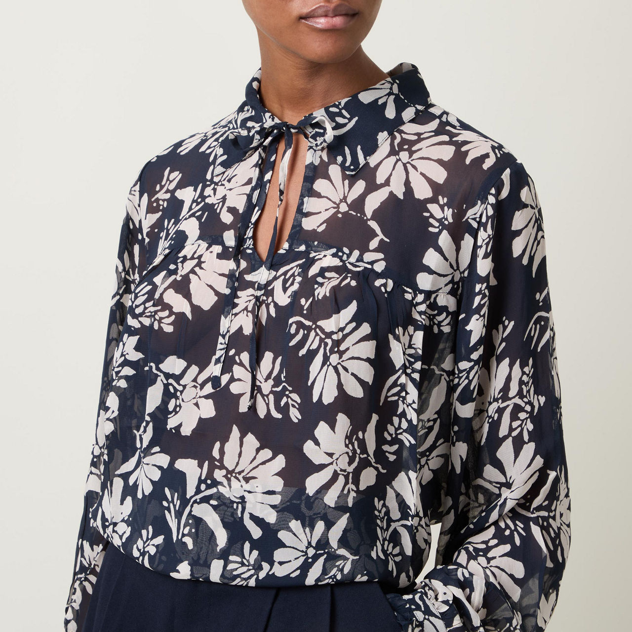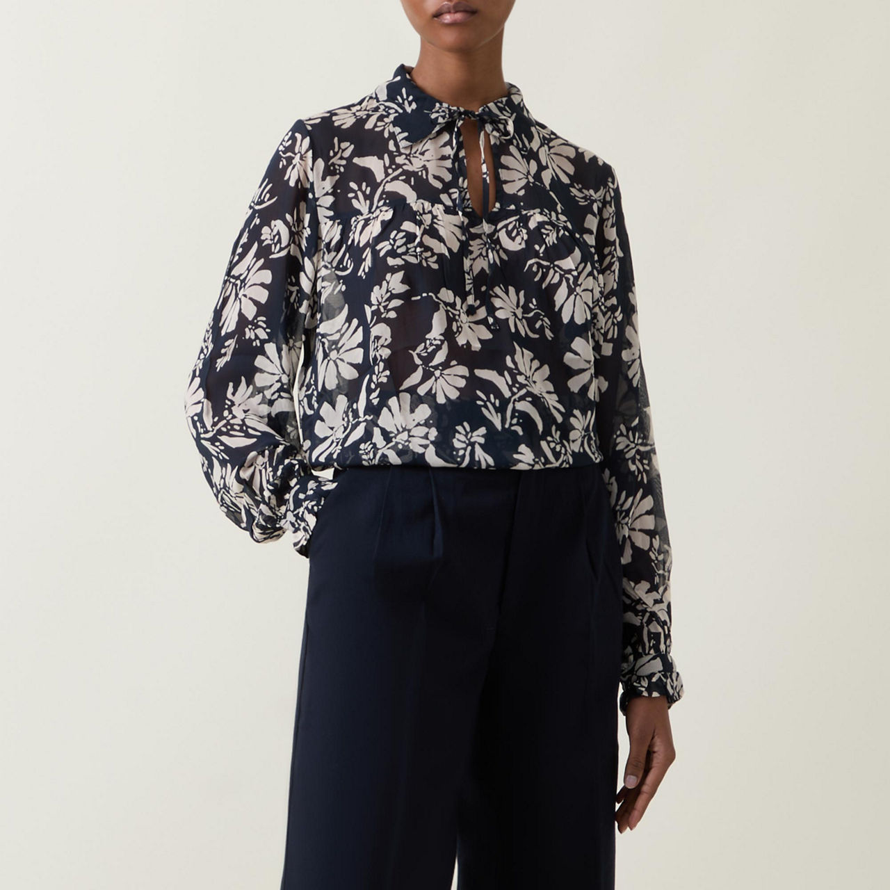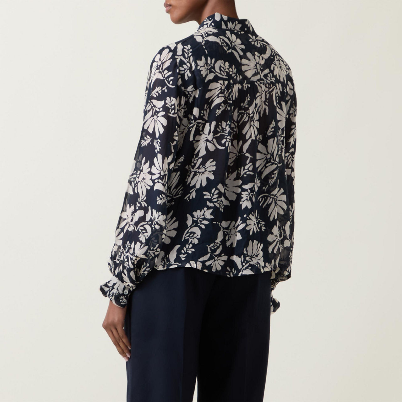 • Long bishop sleeves, collared neckline with tie fastening, keyhole detail, gathered detail at back, floral print