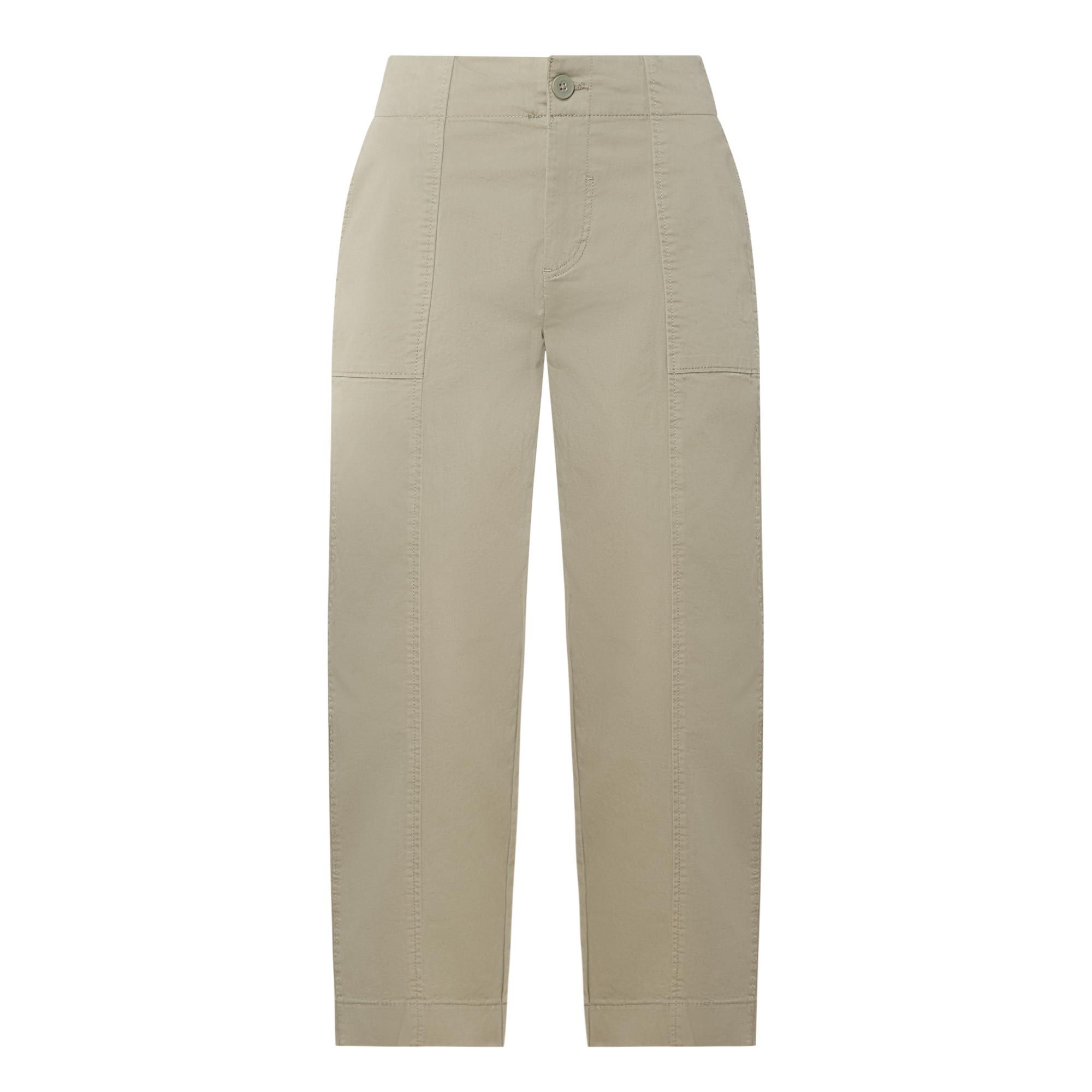 • Cropped, side pocket, button fastening, back pockets