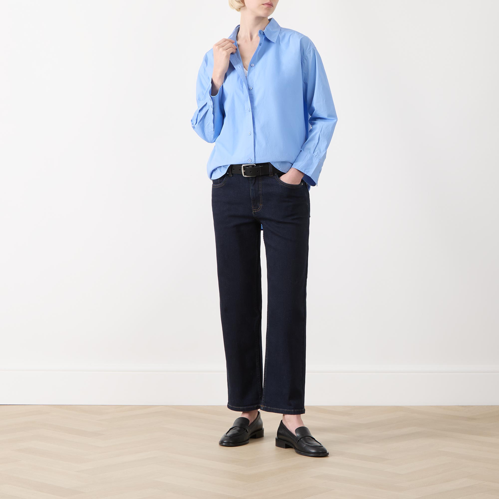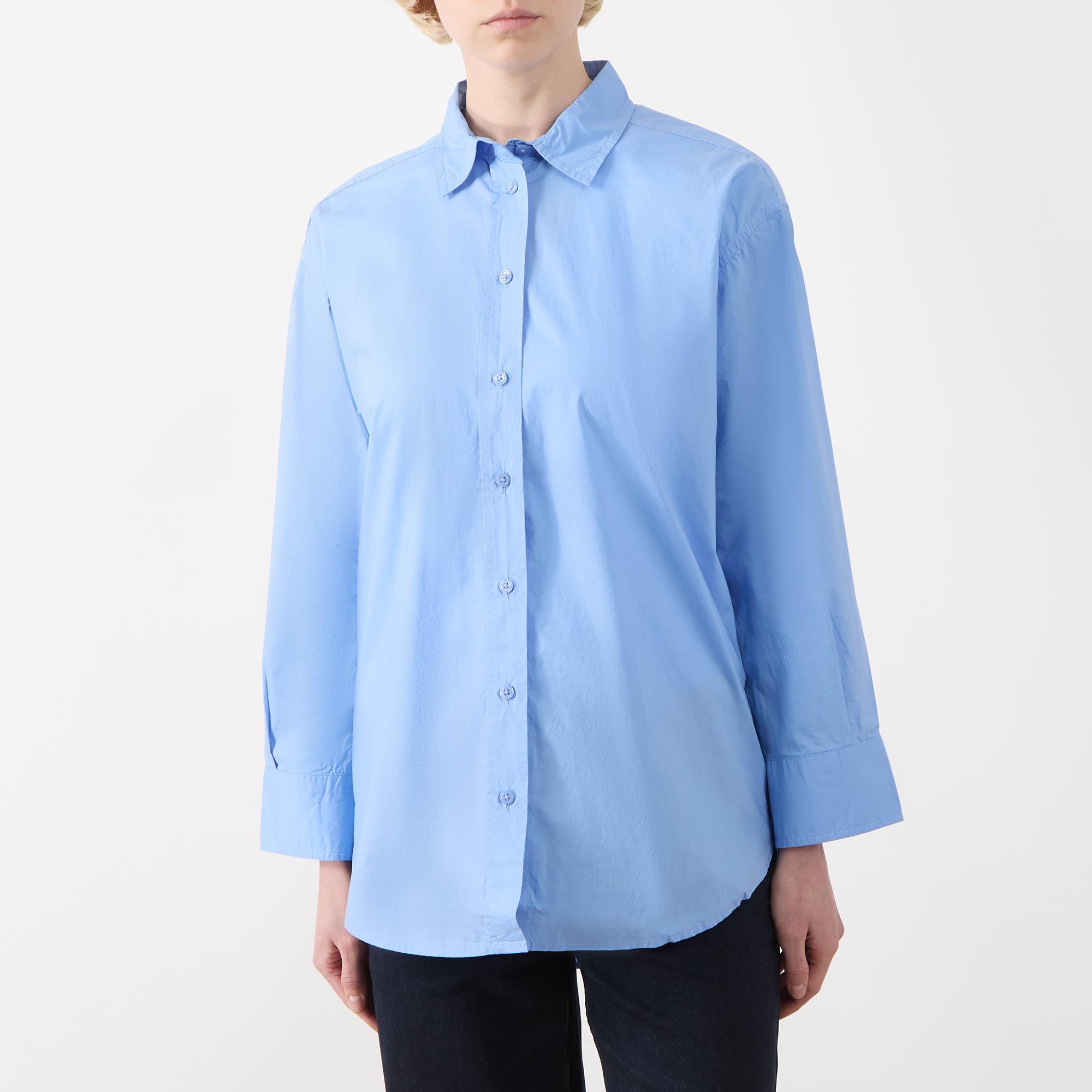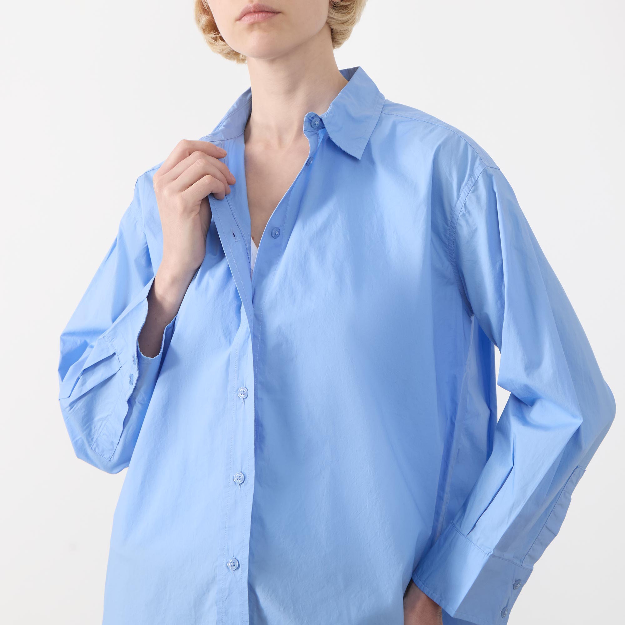 - Lightweight, classic collar, button-down front, long sleeves, buttoned cuffs, rounded hem