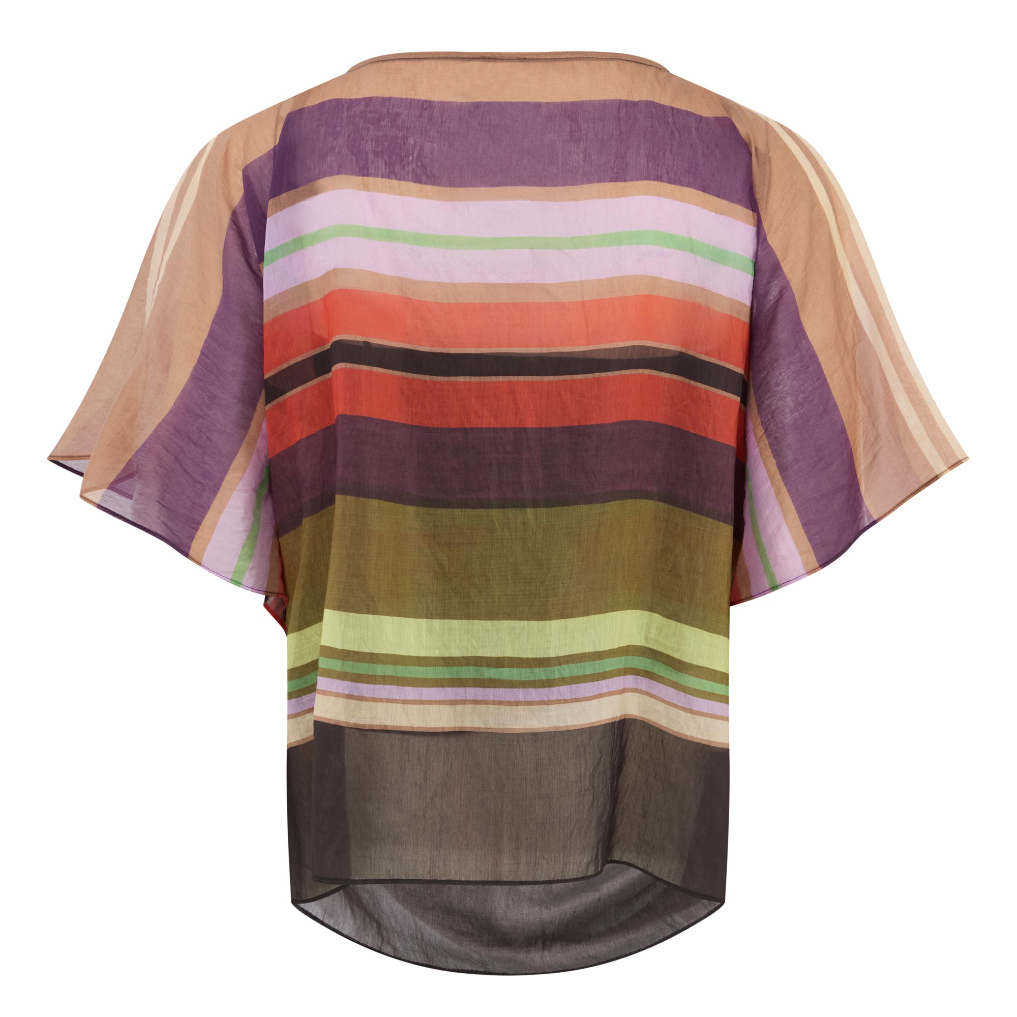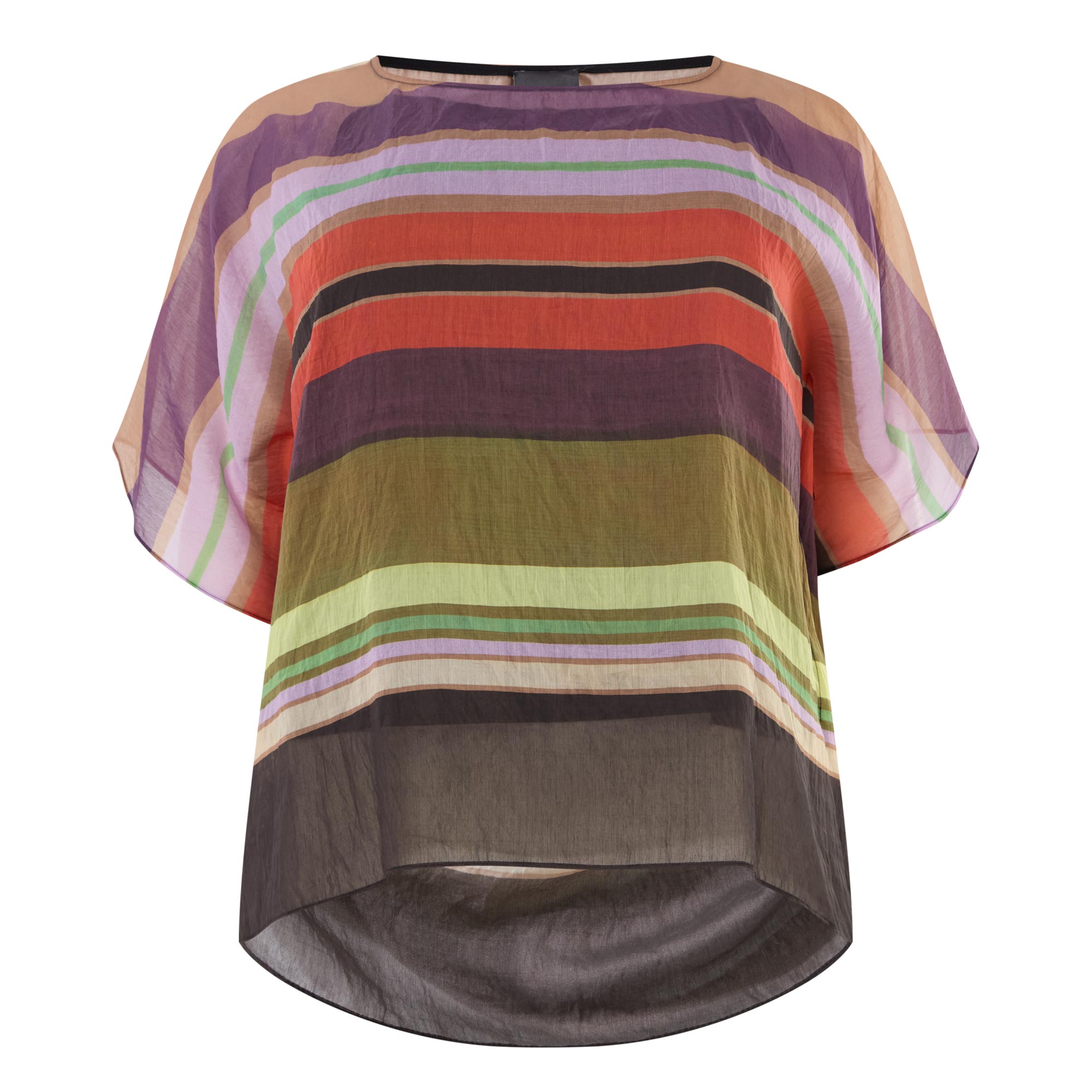 - Round neckline, short sleeves, stripe pattern, cami-style base layer, poncho-inspired silhouette