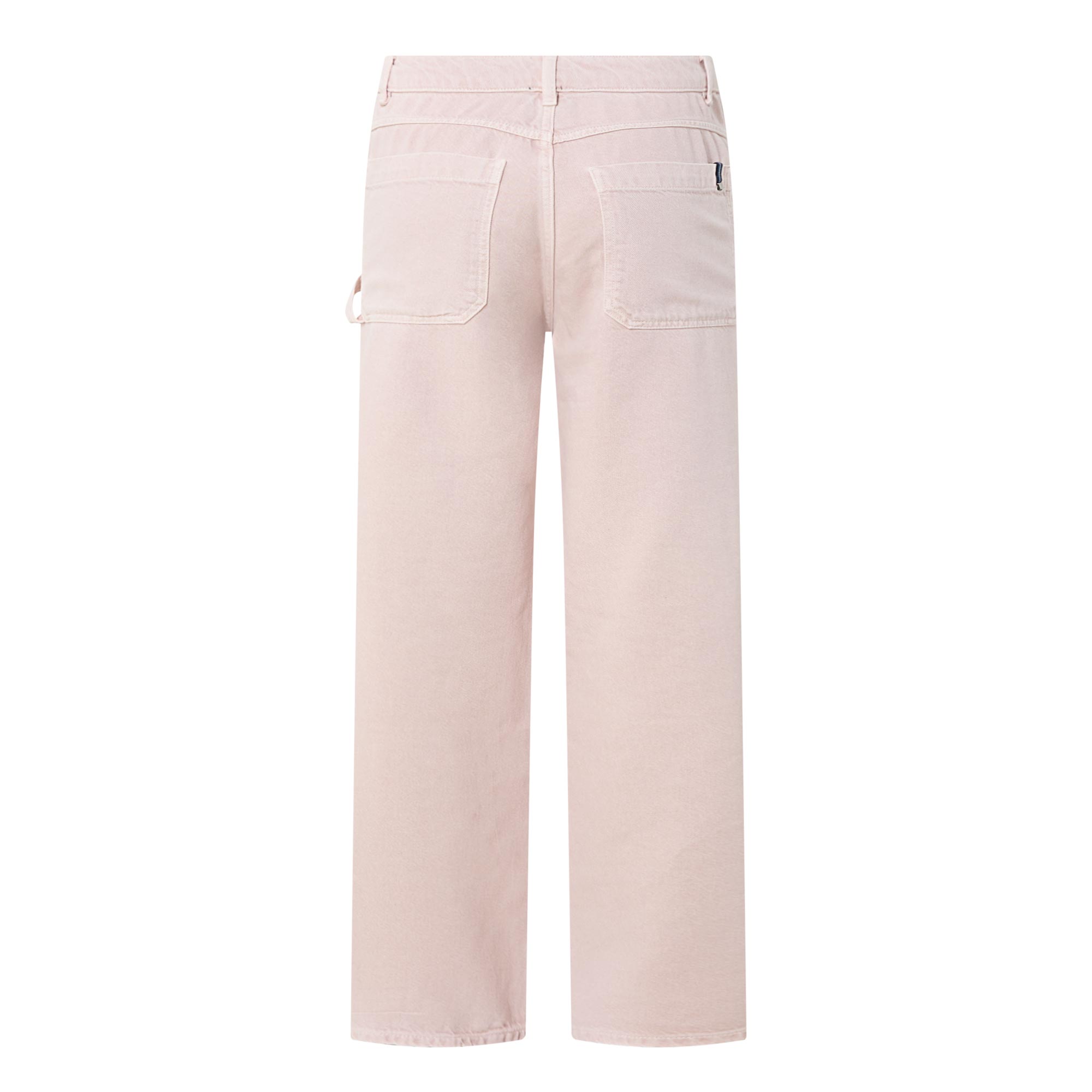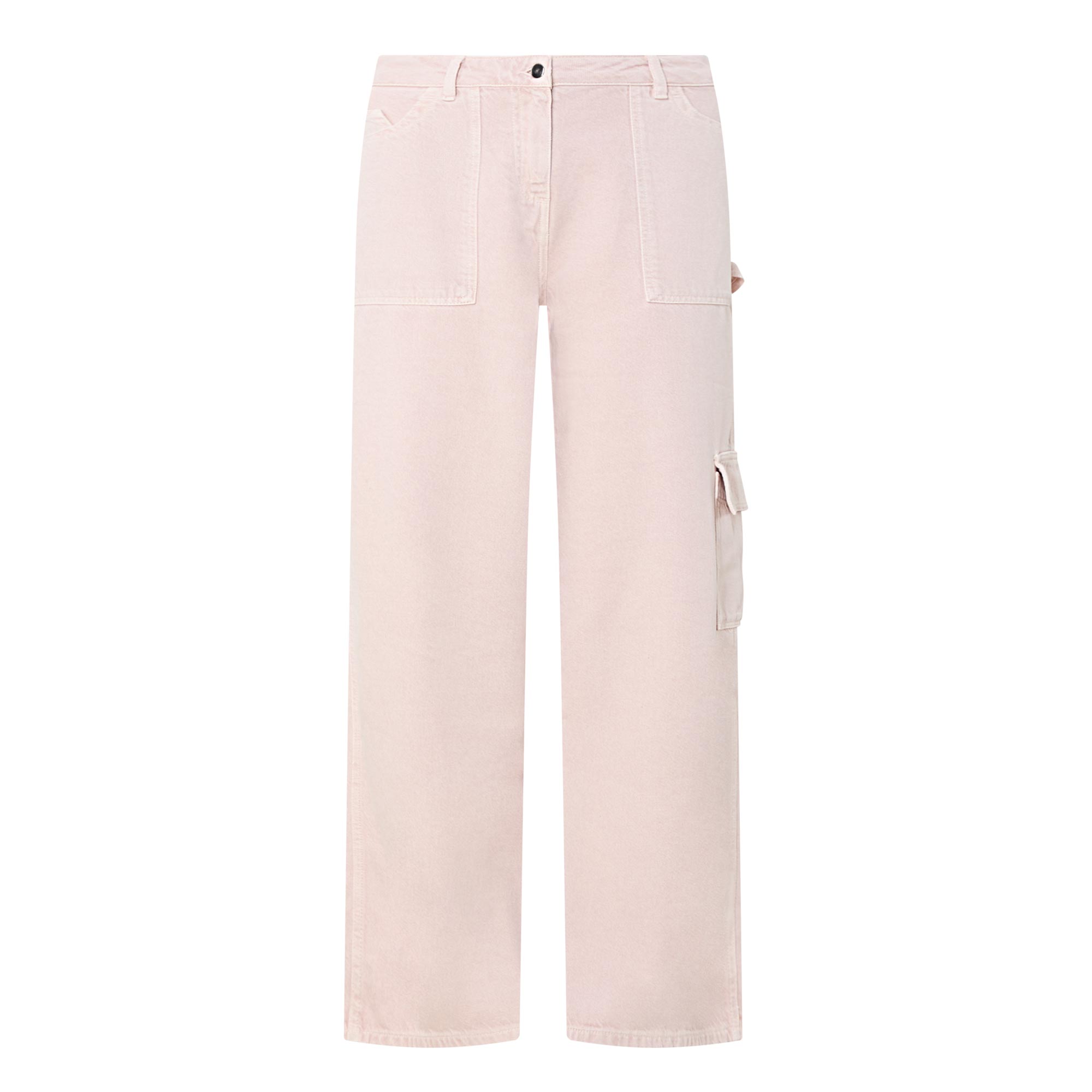 - Zip-fly and button fastening, belt loops, five-pocket design, tonal stitching, rear logo patch, cargo flap pocket on left leg, wide-cut leg, smooth fabric