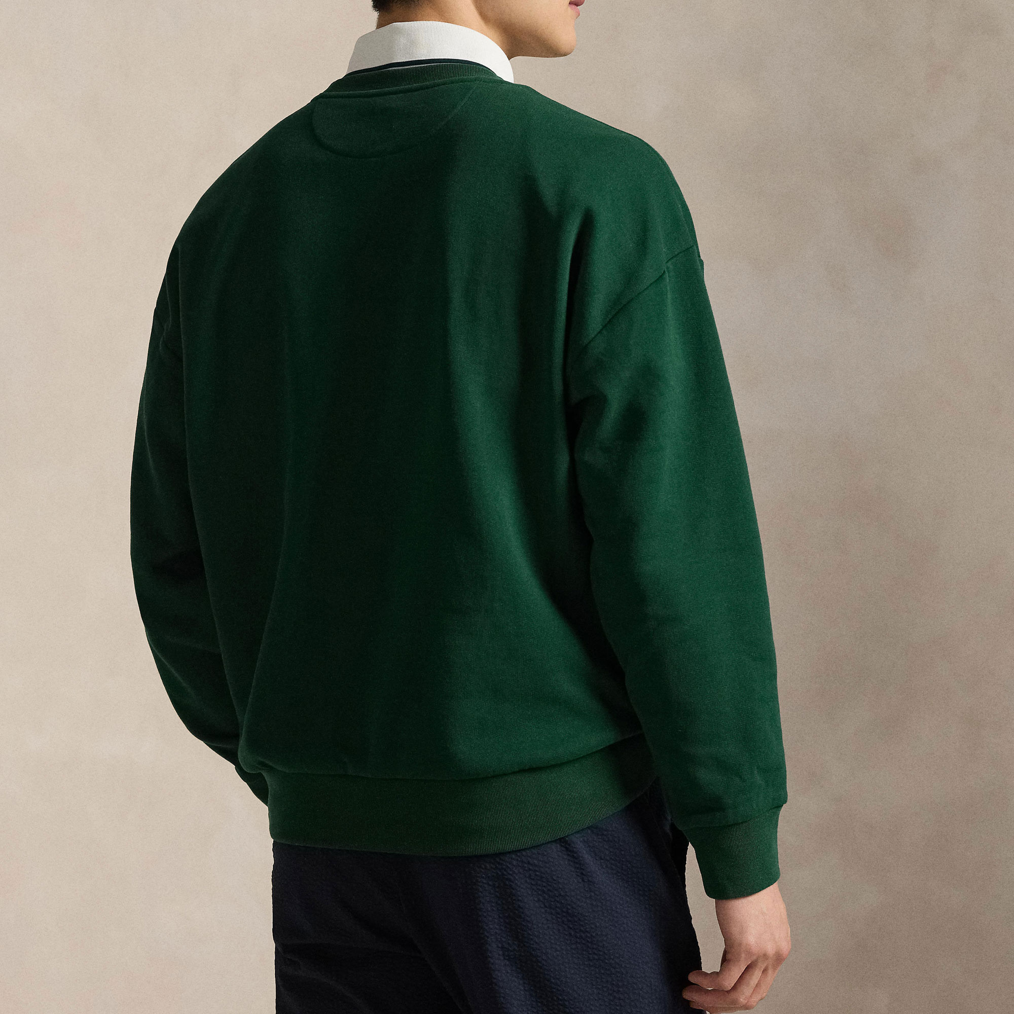 - Crew neckline, long sleeves, ribbed cuffs, Polo Bear print, embroidered details, silicone logo tab, ribbed hem