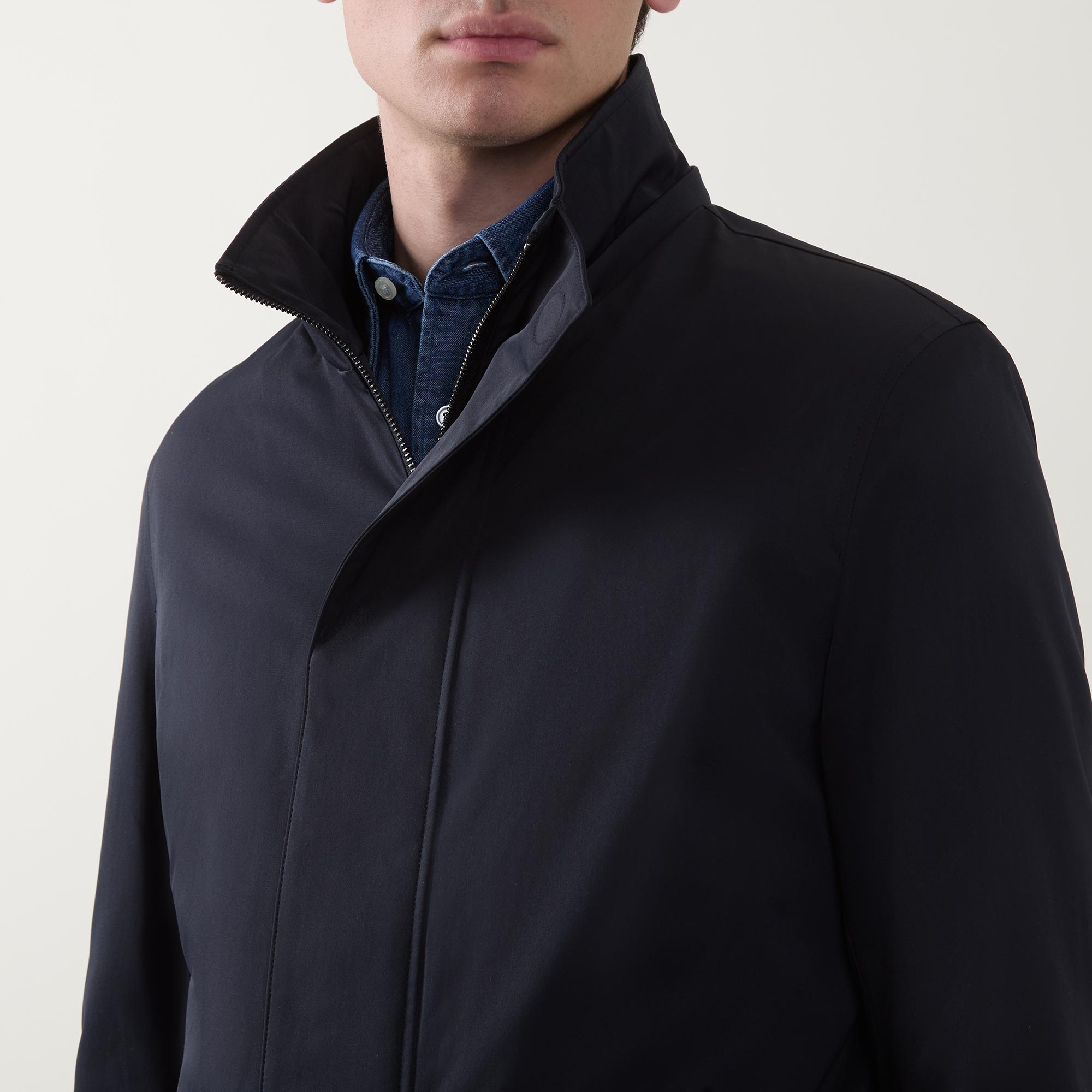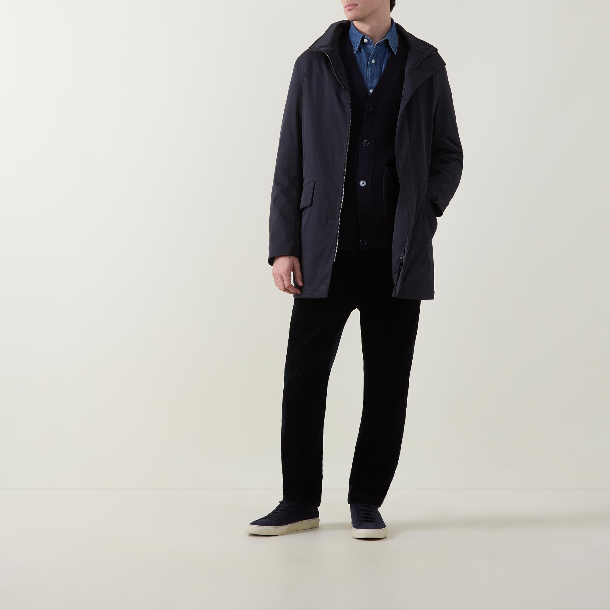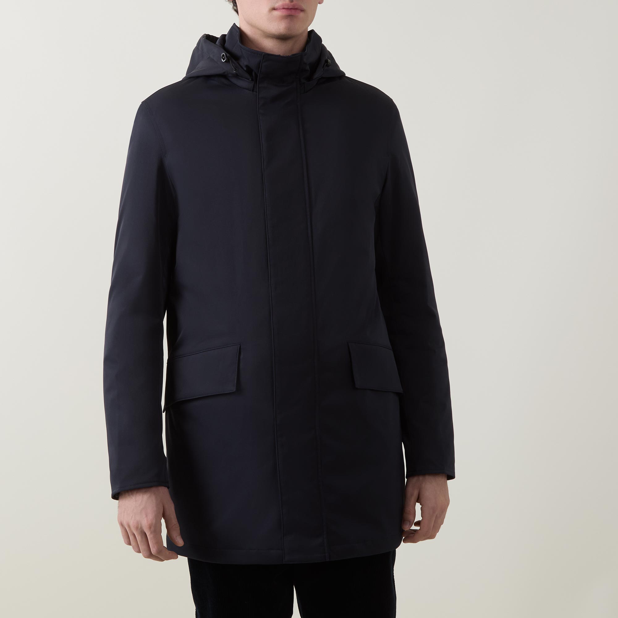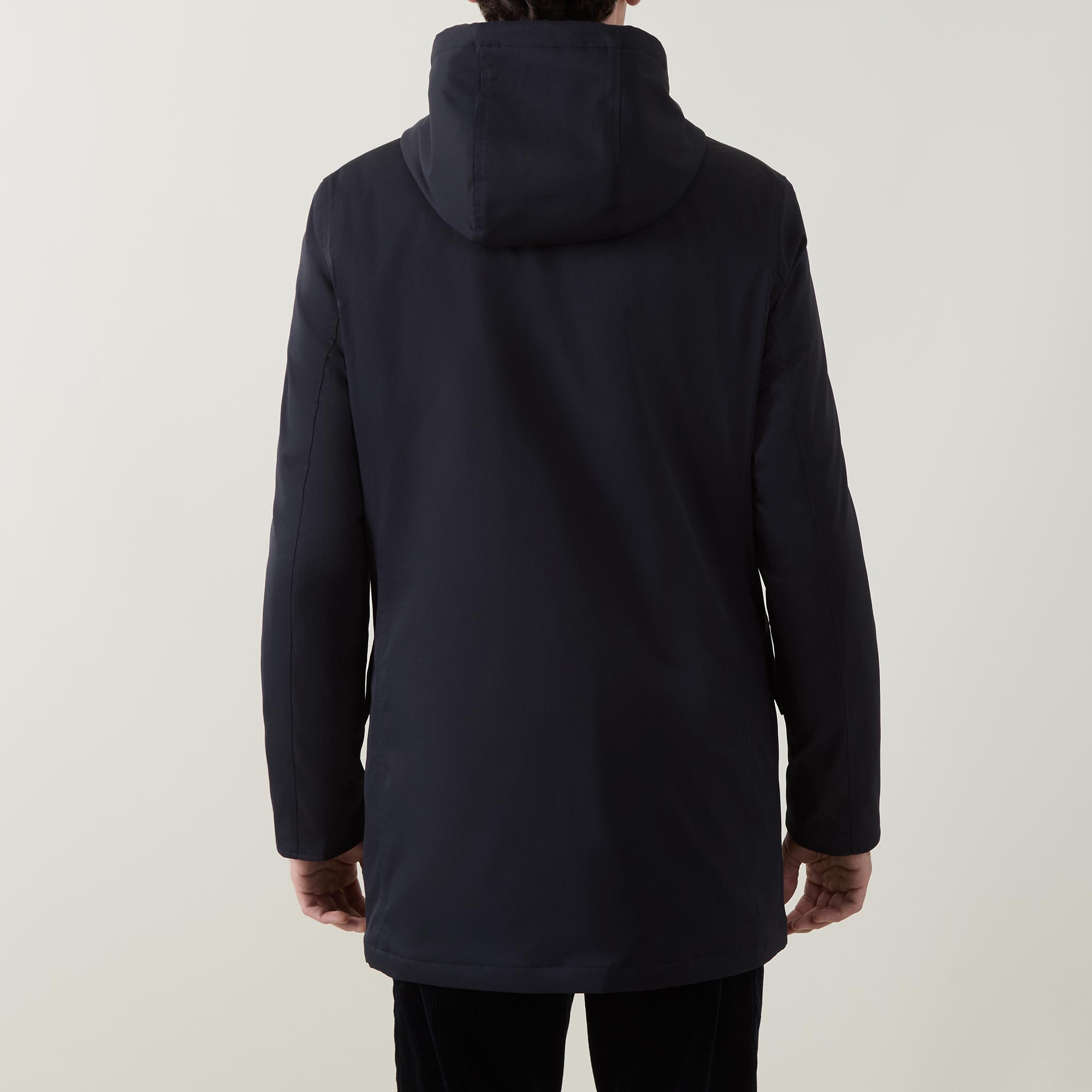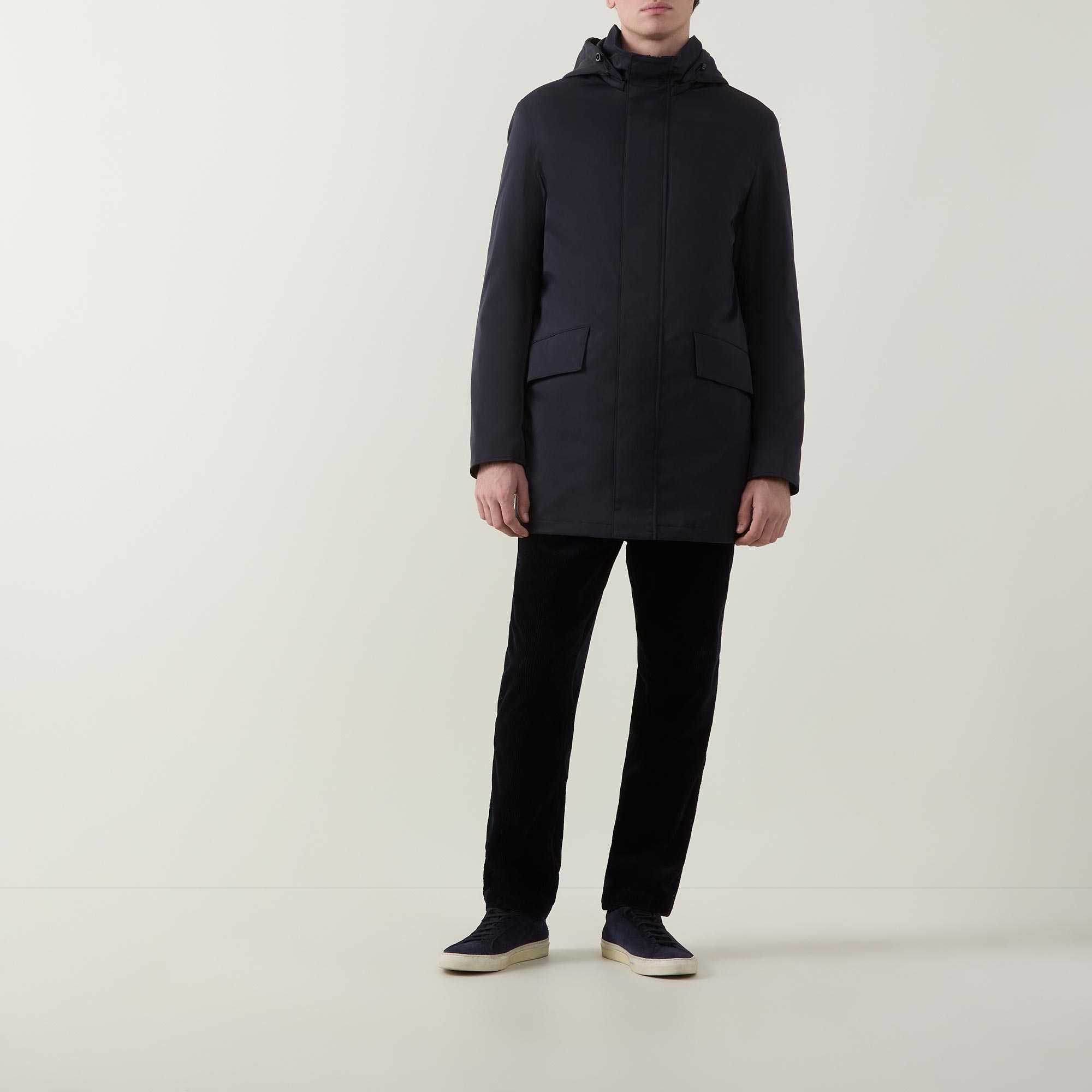 - Detachable hood with toggle adjustable fit and two-way zip fastening, magnet closure at placket and buttons, long sleeves